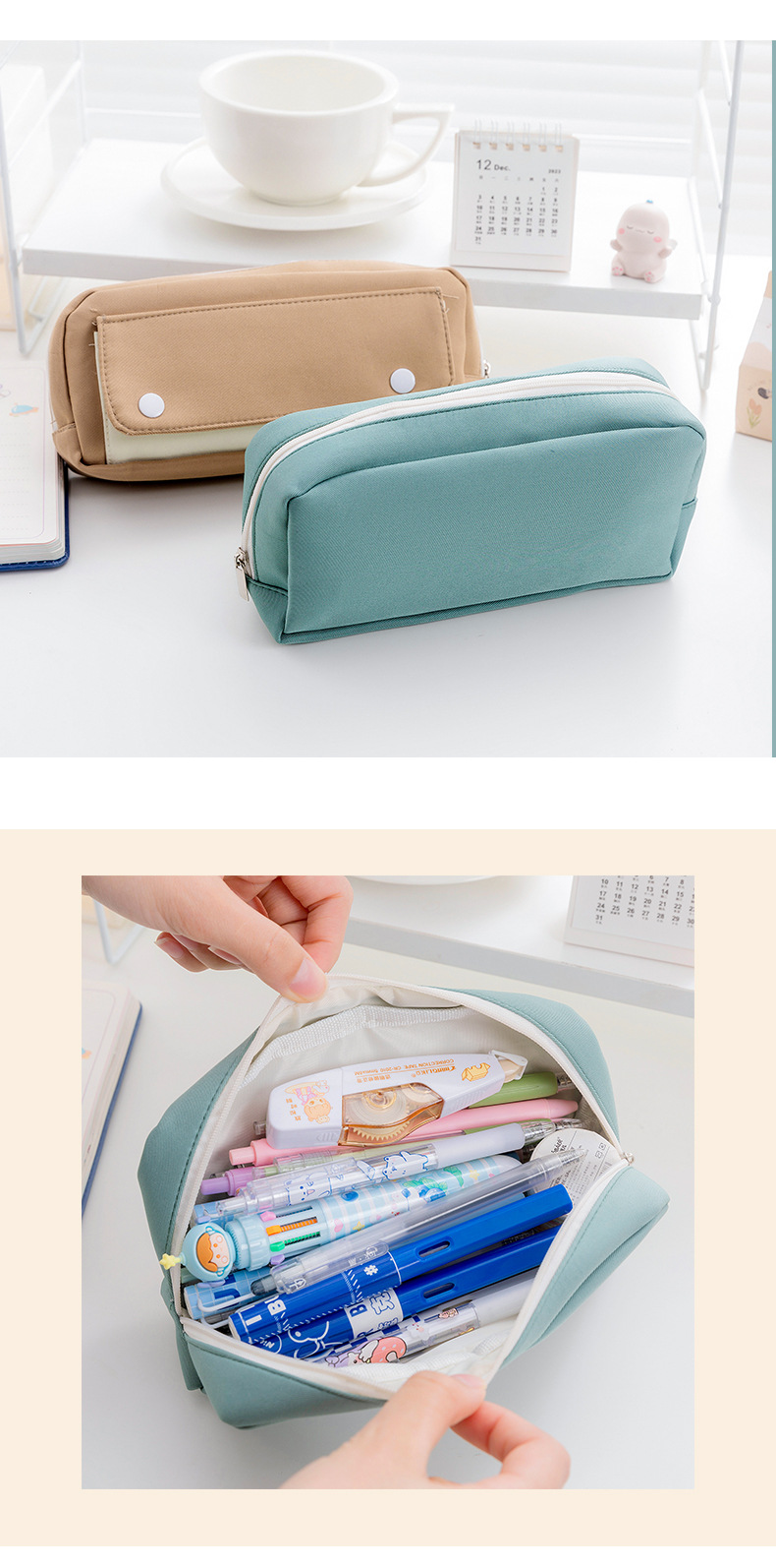새로운 심플 솔리드 컬러 대용량 필통 학생 플립 스냅 버클 문구 가방 고가 Instagram 크로스 보더 문구 가방스토어 가기