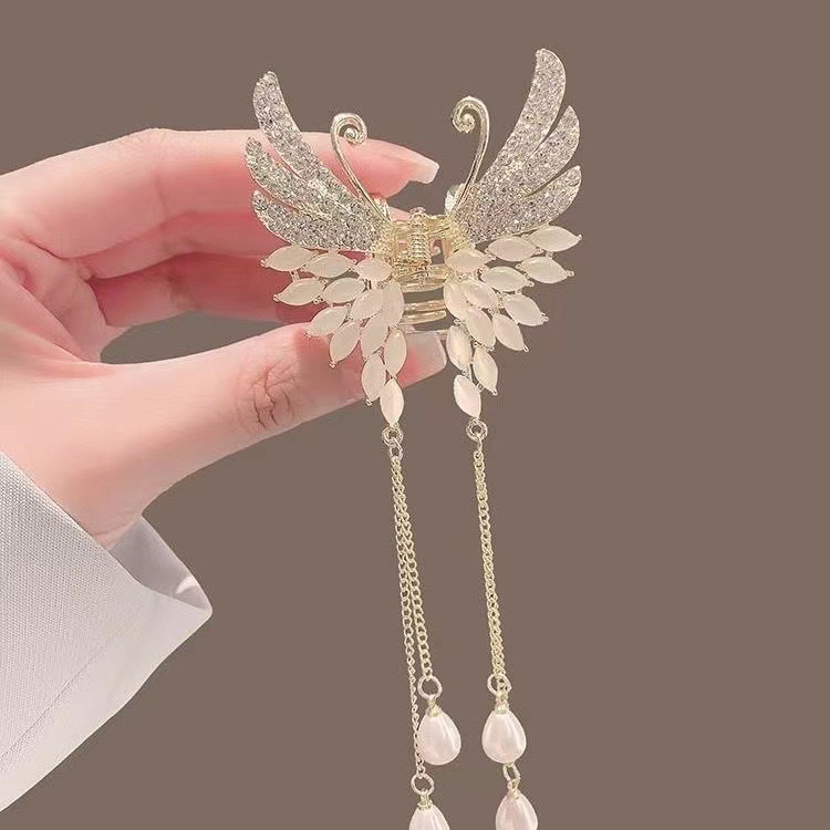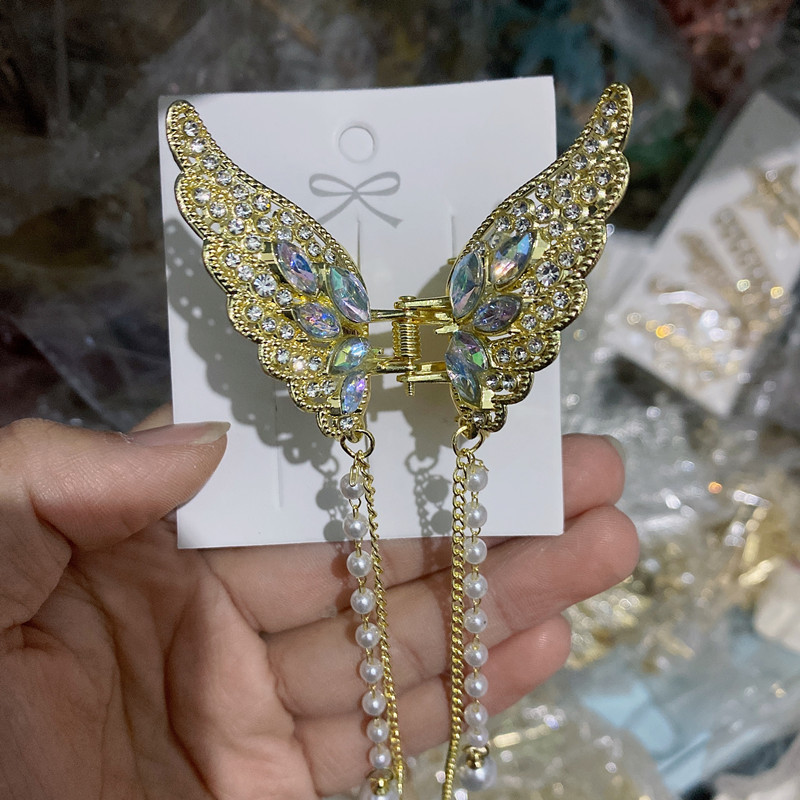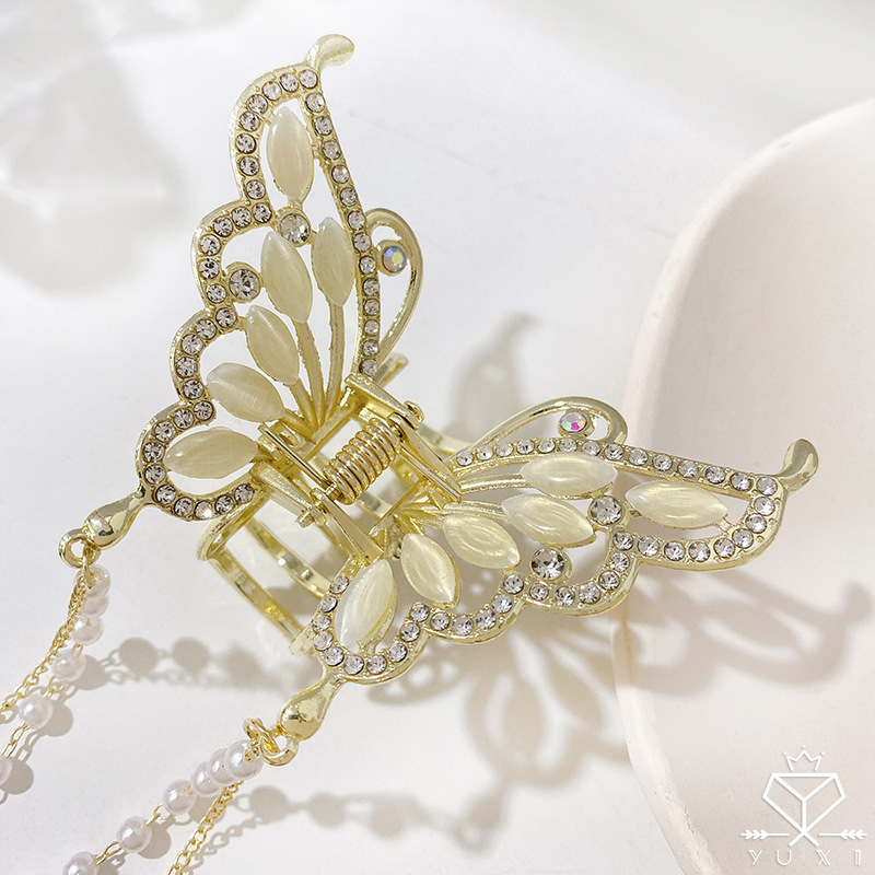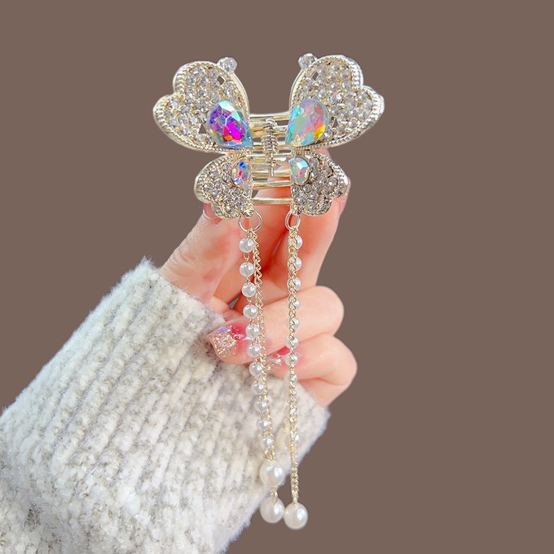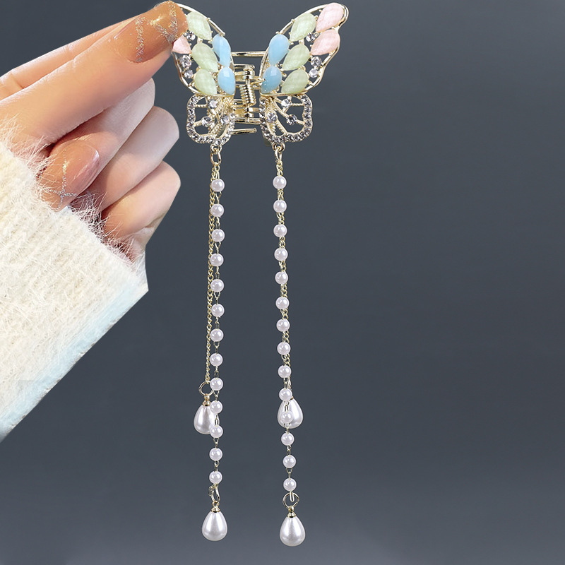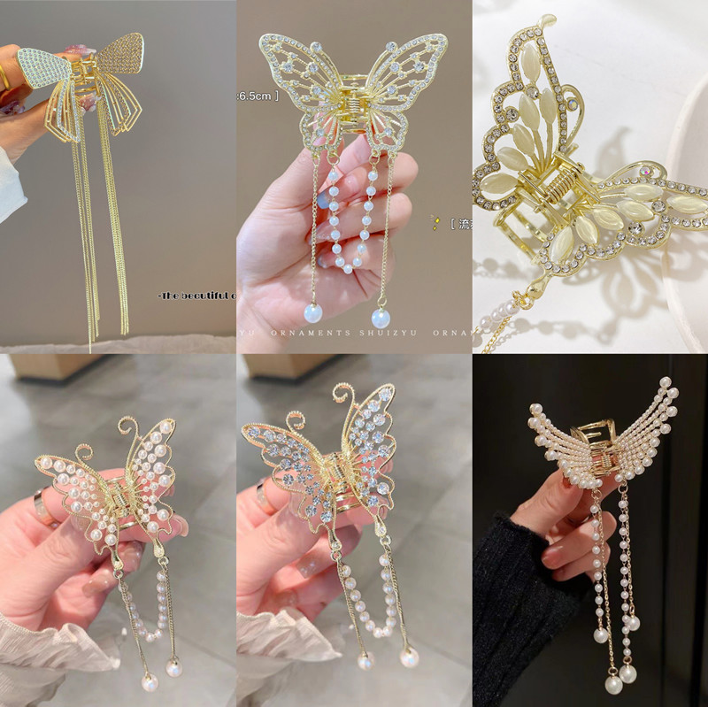 나비 술 진주 그립 클립 고급 여성 기질 뒤 머리 반 머리 클립 머리 장식 금속 중간 머리 그립스토어 가기