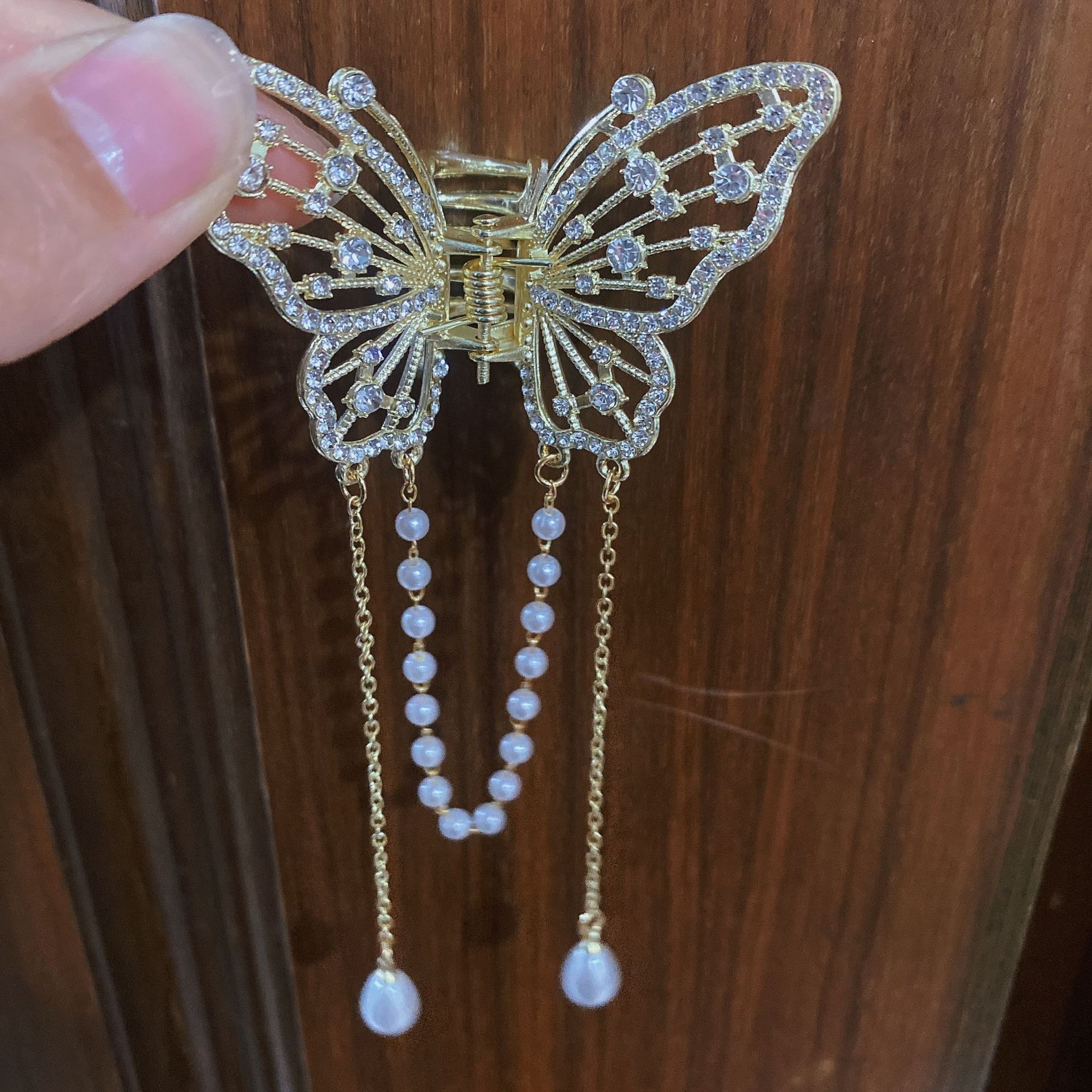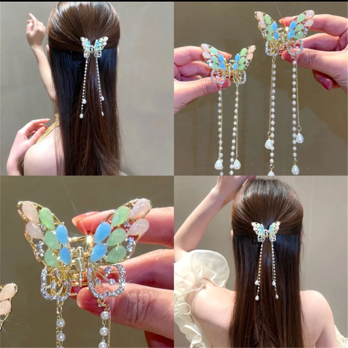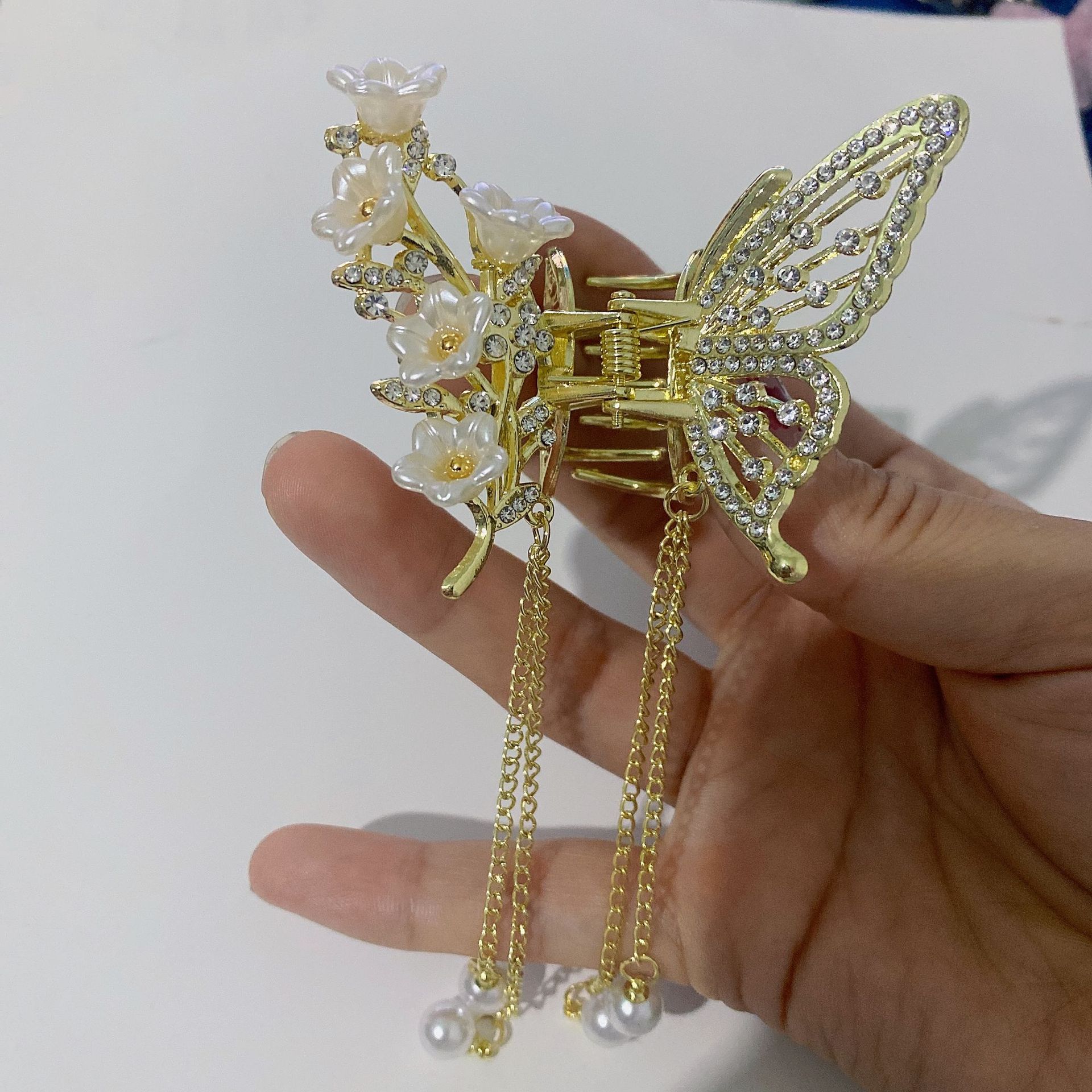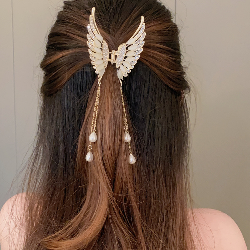 나비 술 진주 그립 클립 고급 여성 기질 뒤 머리 반 머리 클립 머리 장식 금속 중간 머리 그립스토어 가기