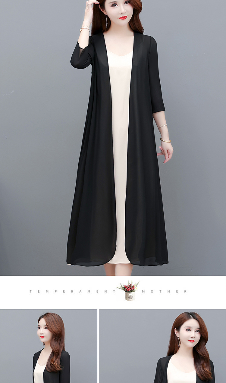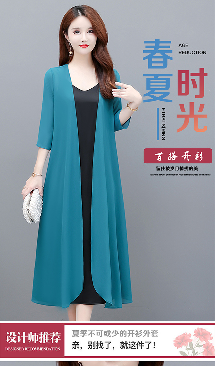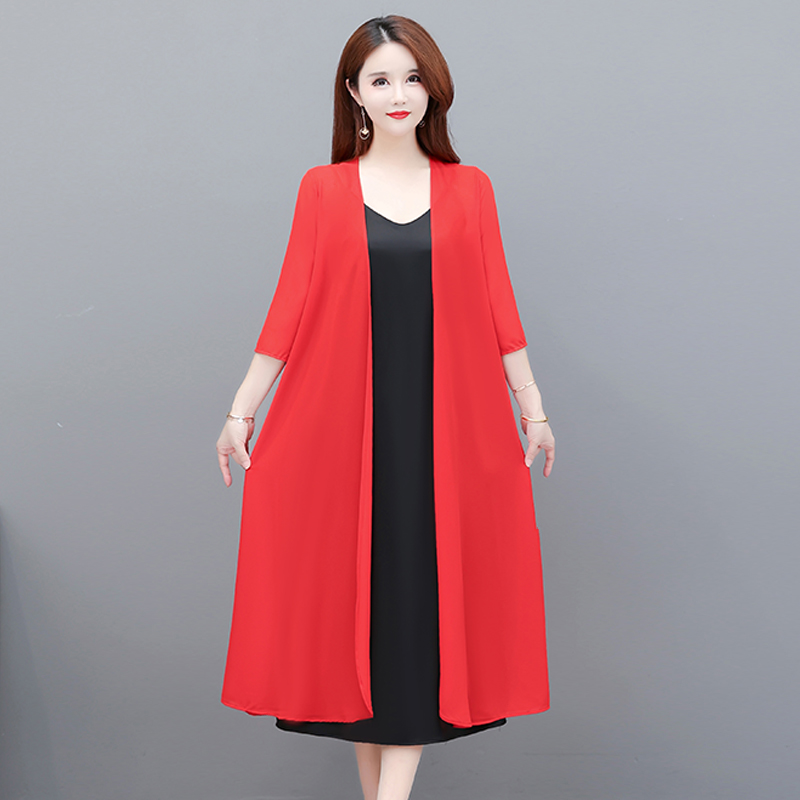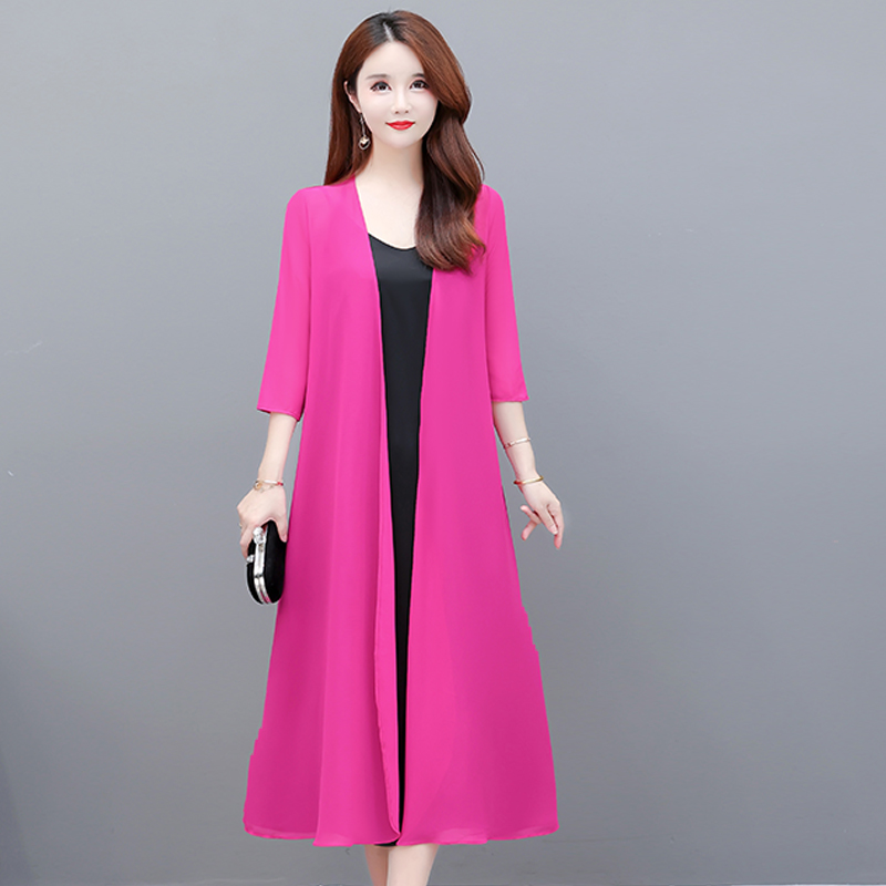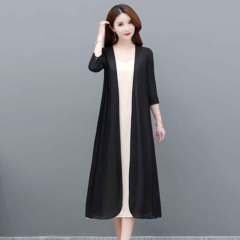2022 신상품 아이스 실크 모든 매치 롱 숄 여름 스커트 탑 중간 길이 외부 자외선 차단제 쉬폰 얇은 가디건스토어 가기