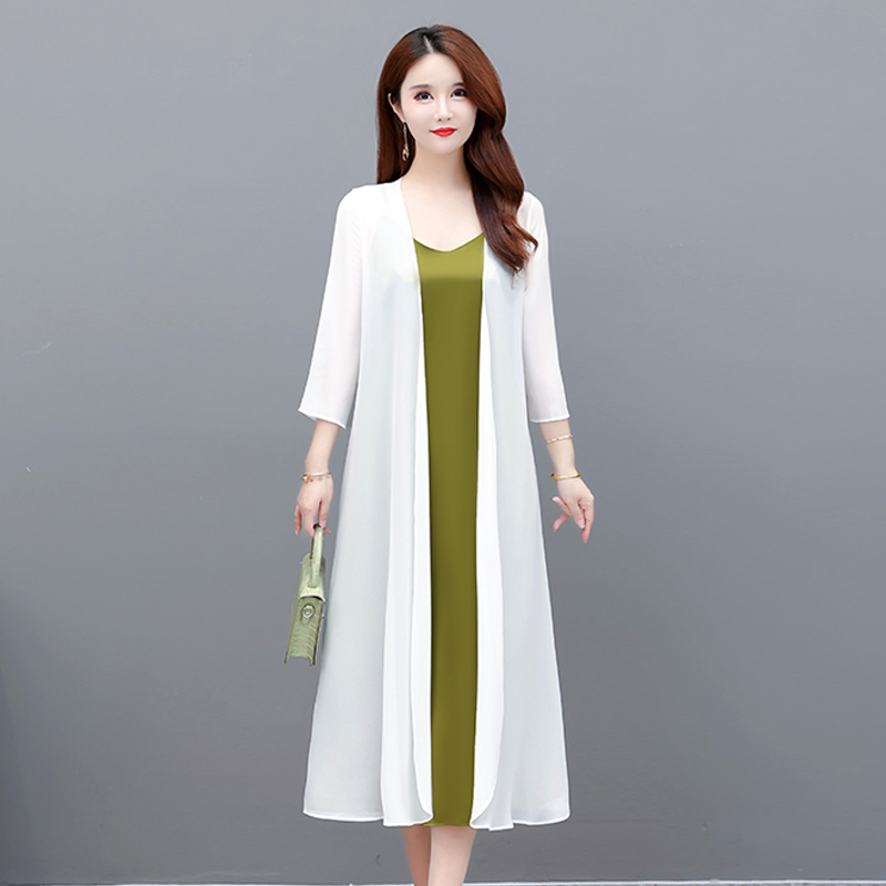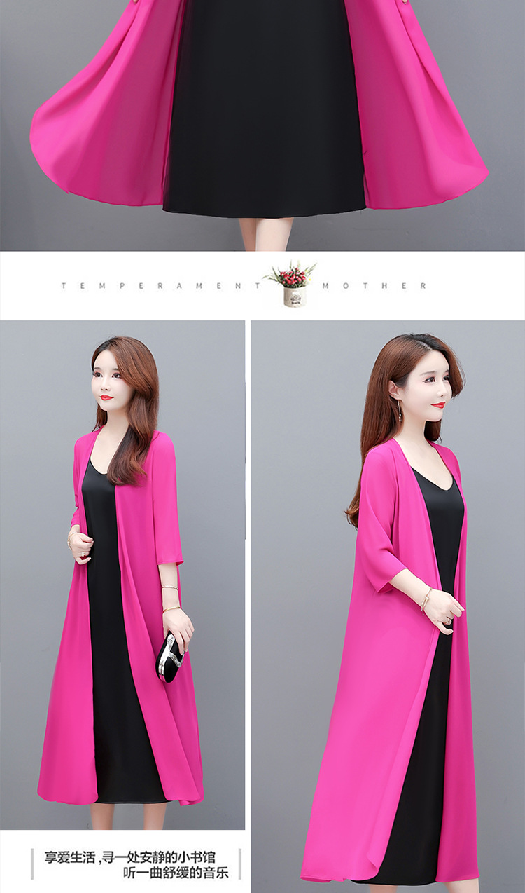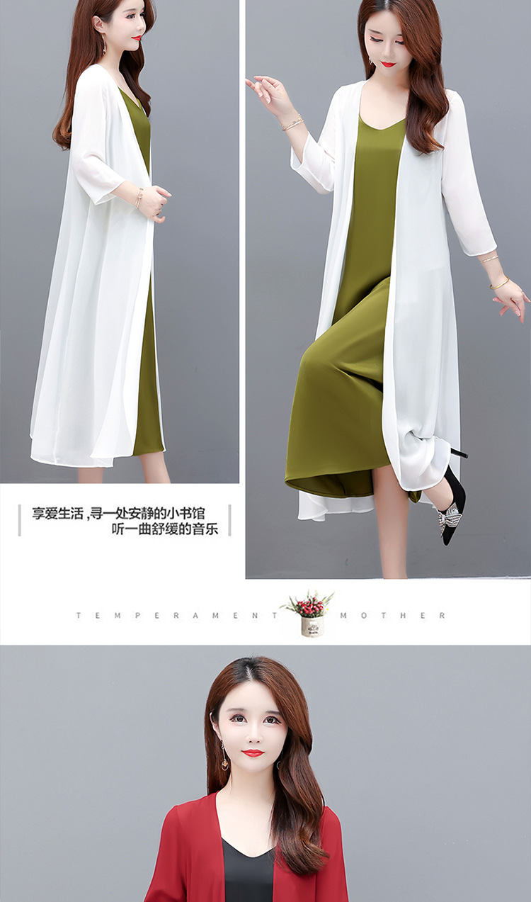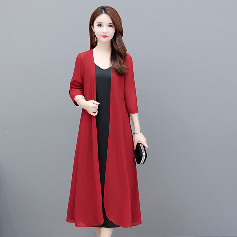 2022 신상품 아이스 실크 모든 매치 롱 숄 여름 스커트 탑 중간 길이 외부 자외선 차단제 쉬폰 얇은 가디건스토어 가기