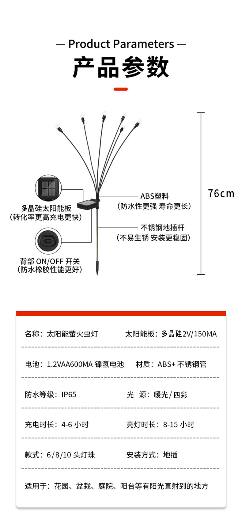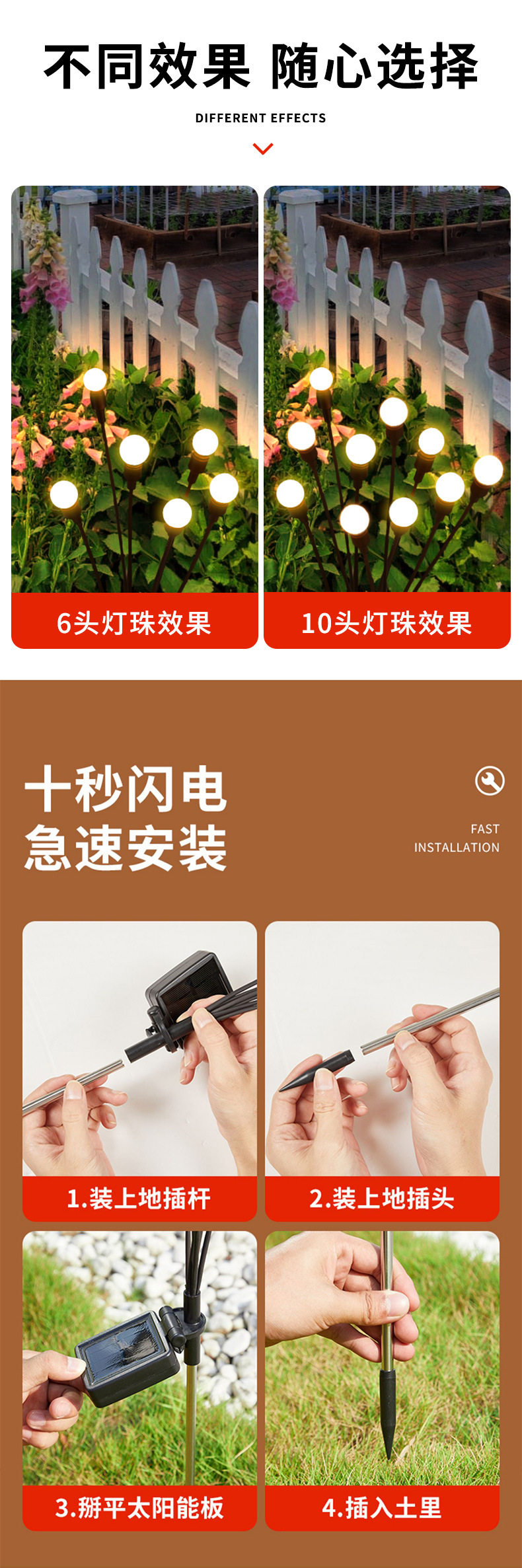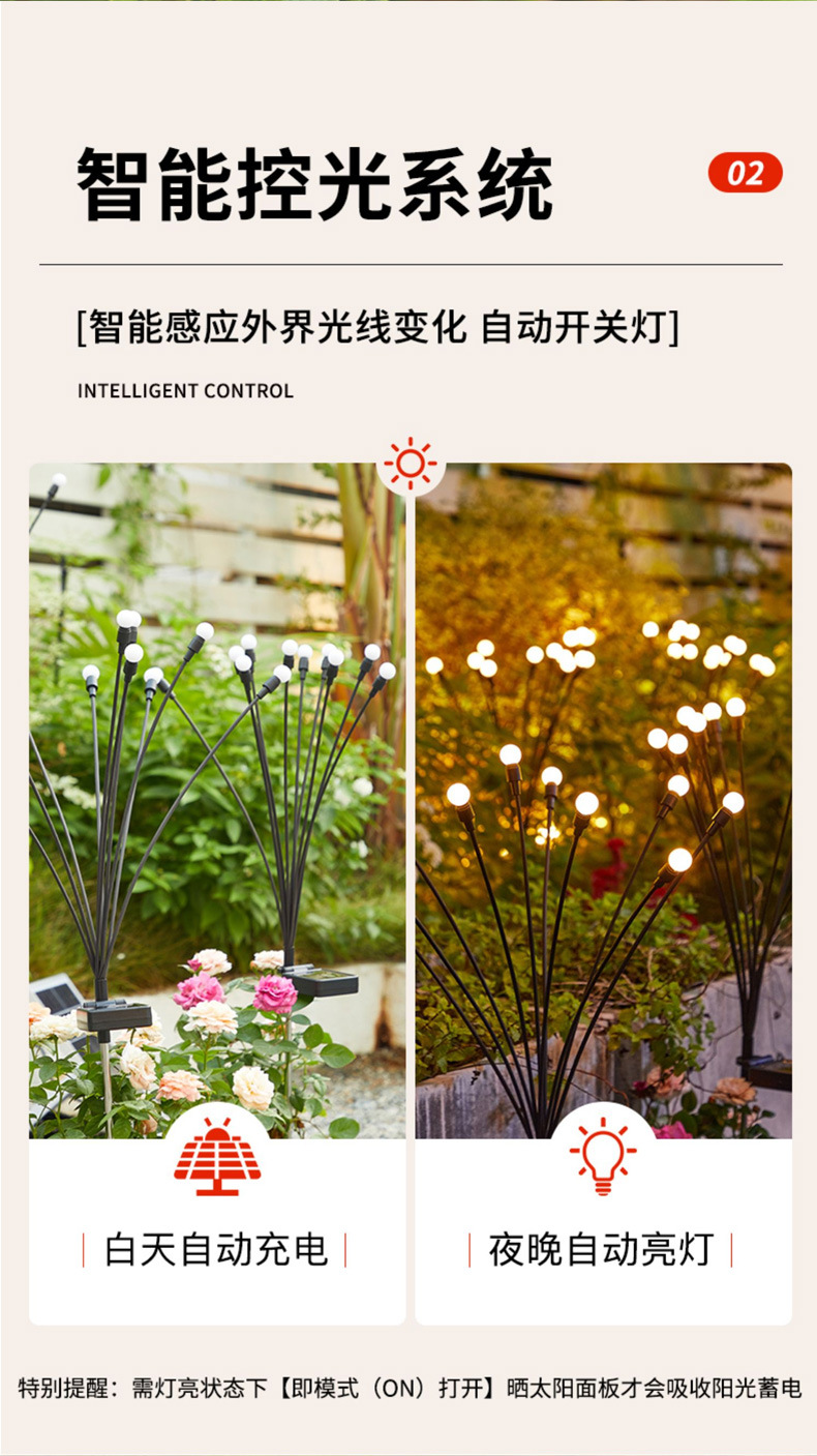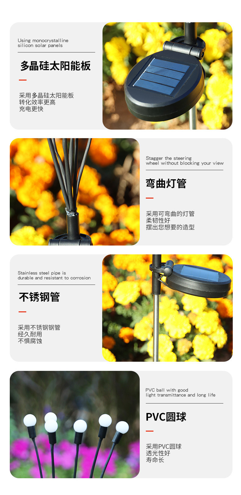 LED 태양 반딧불 램프 그라운드 플러그 정원 레이아웃 장식 램프 문자열 야외 방비 정원 램프 잔디 바닥 램프