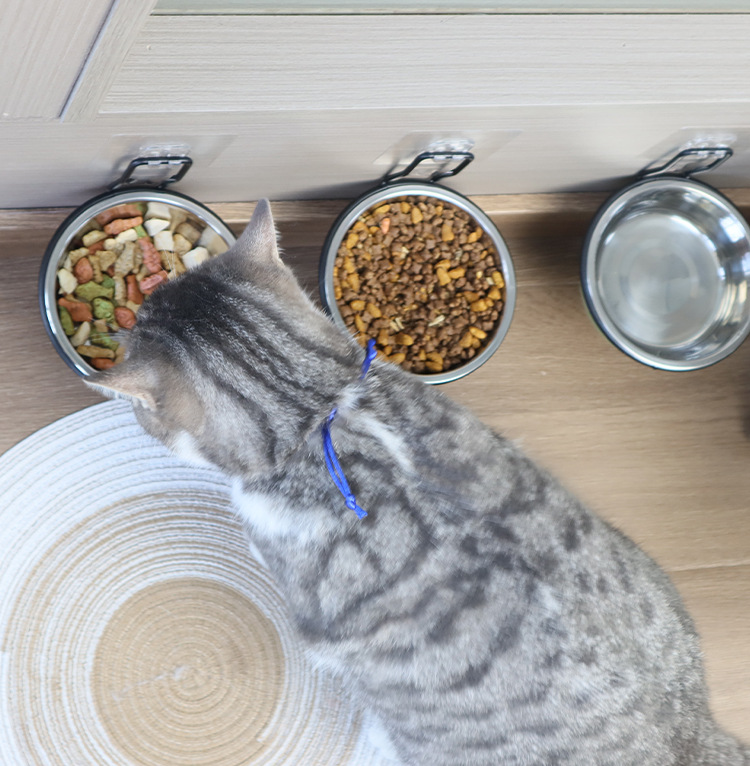 애완 동물 스테인레스 스틸 그릇 매달려 고양이 음식 분지 목 보호 고양이 그릇 전복 방지 새끼 고양이 강아지 음료 음식 그릇 재고