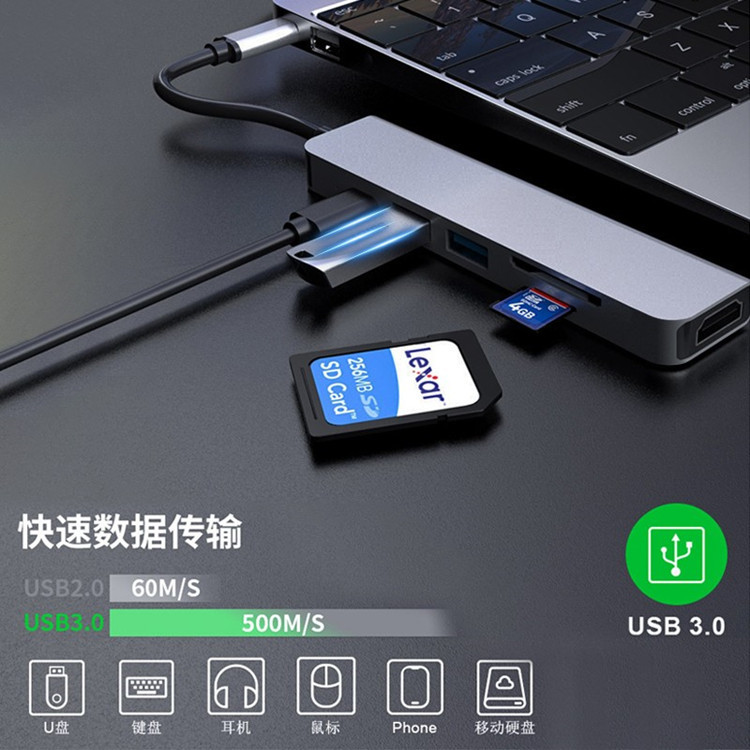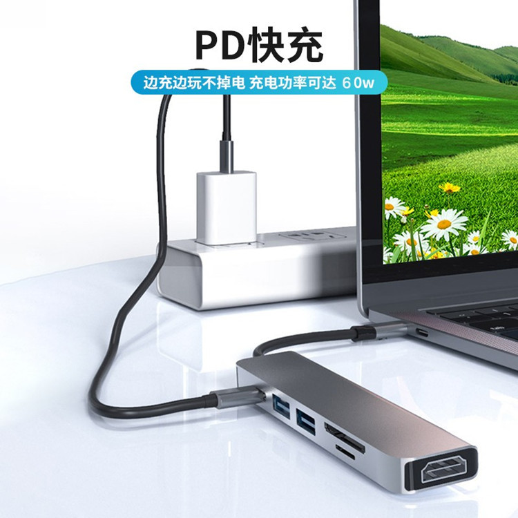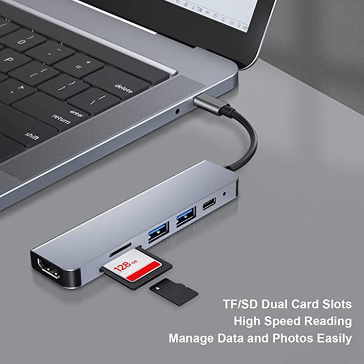 국경 간 Type-C-HDMI 6-in -1 허브 허브 허브 4K HD 컨버터 카드 판독기 도킹 스테이션