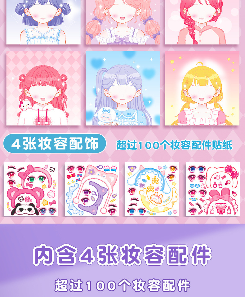 Kaba 곰 원피스 스티커 책 소녀의 장난감 아름다운 공주 메이크업 변경 스티커 만화 캐릭터 메이크업
