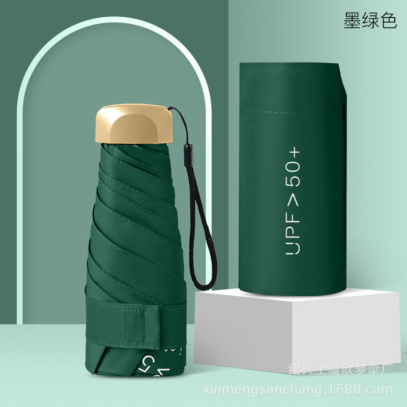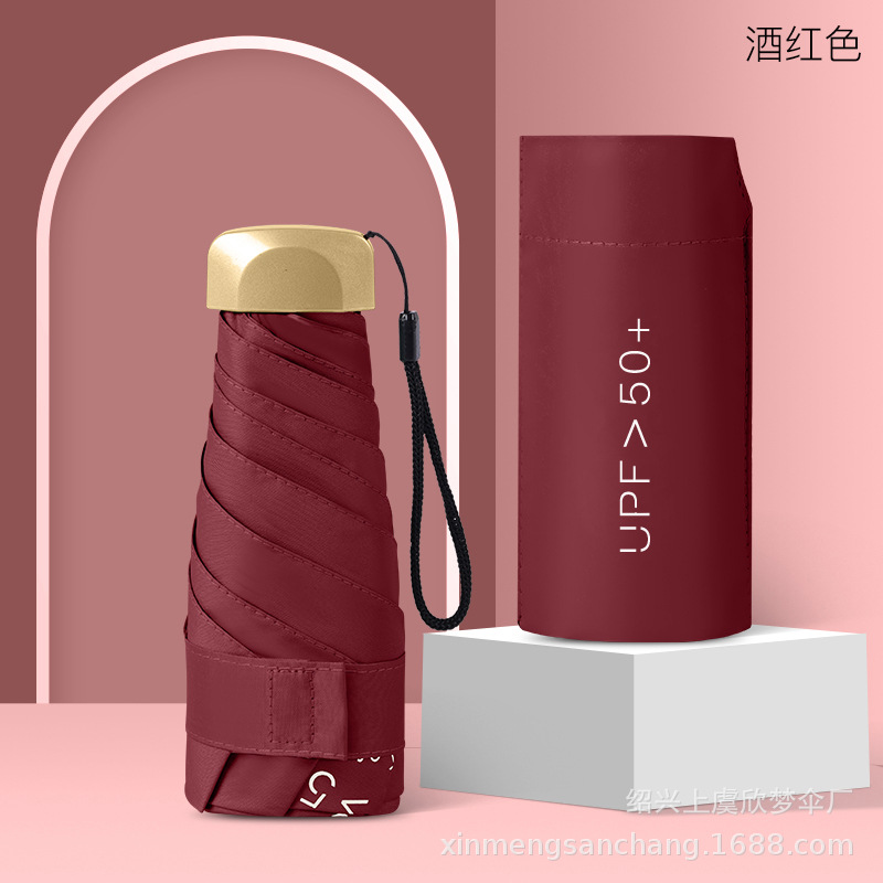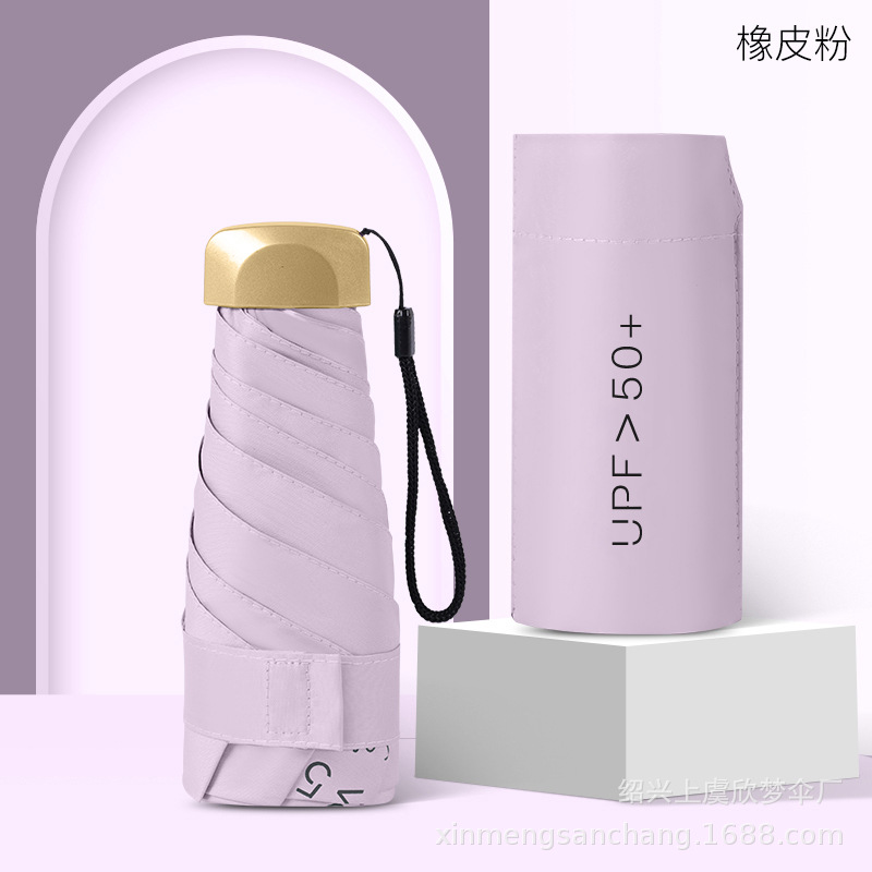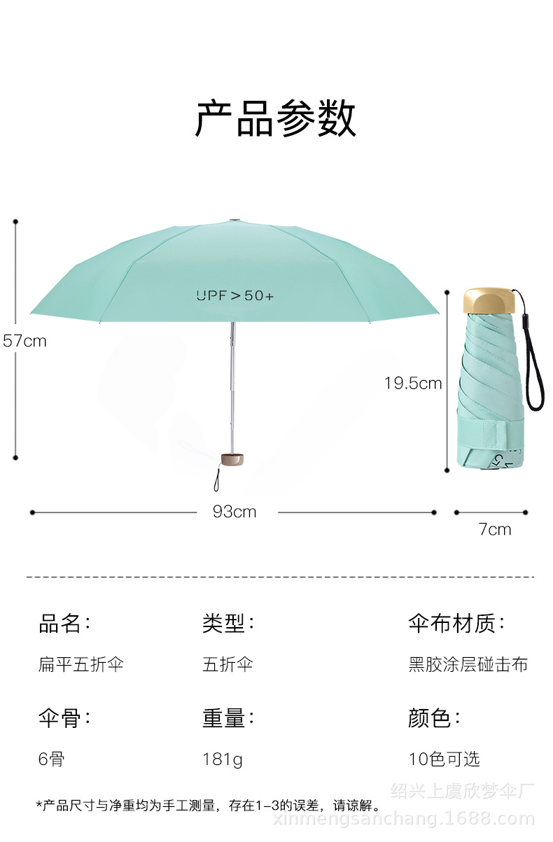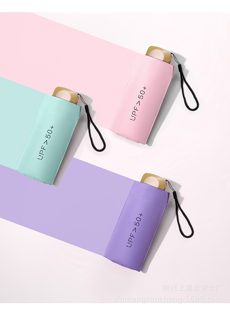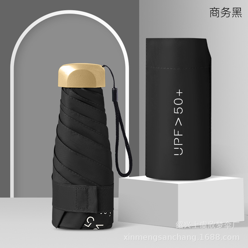 플랫 5 배 우산 블랙 고무 차양 UV 보호 태양 우산 울트라 라이트 여성 가방 우산 인쇄 로고