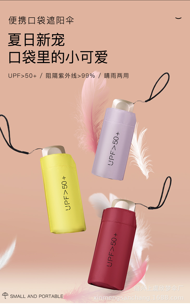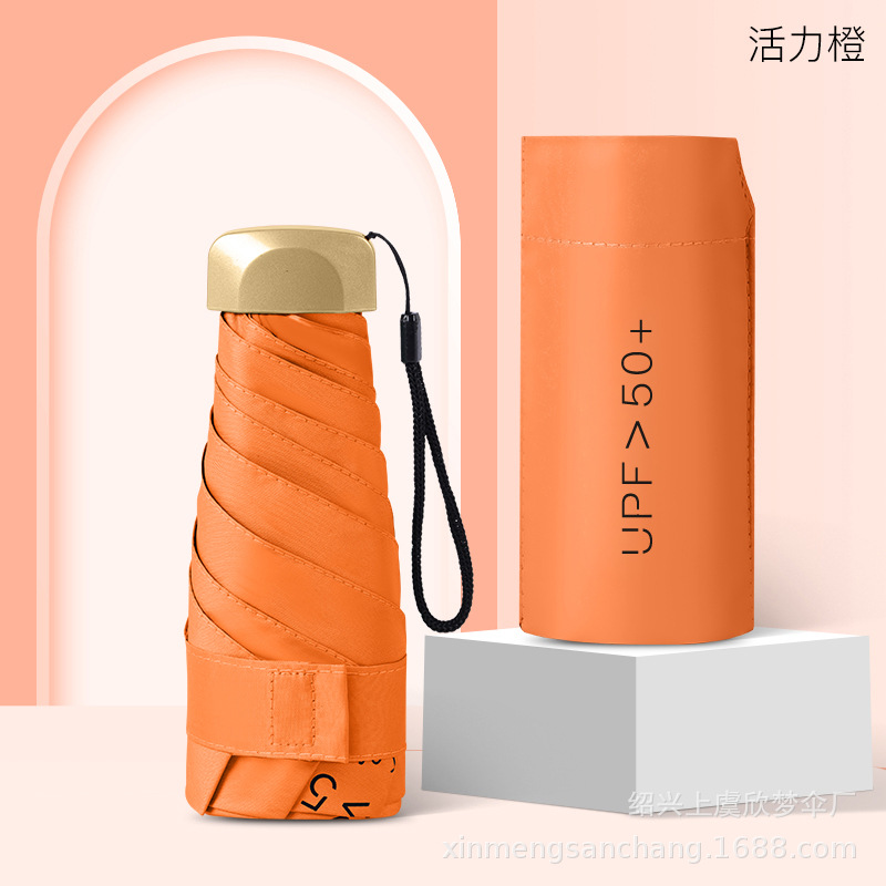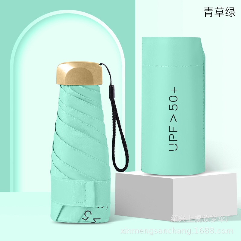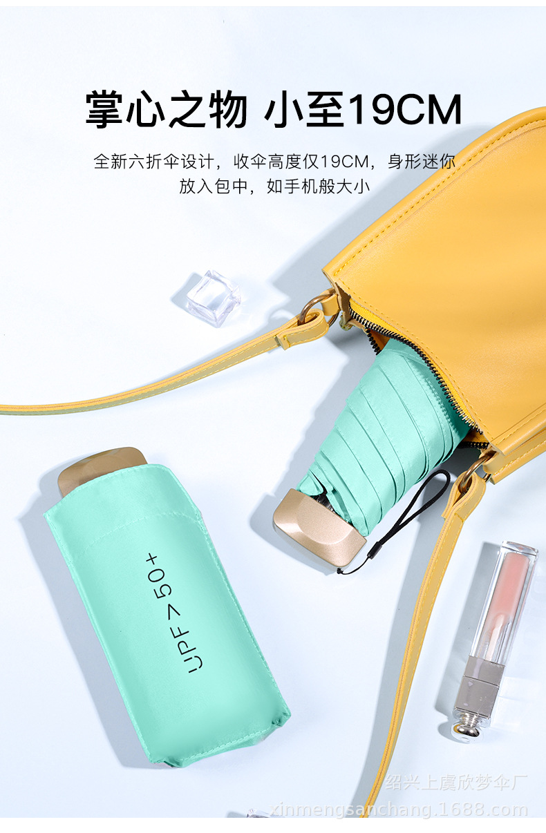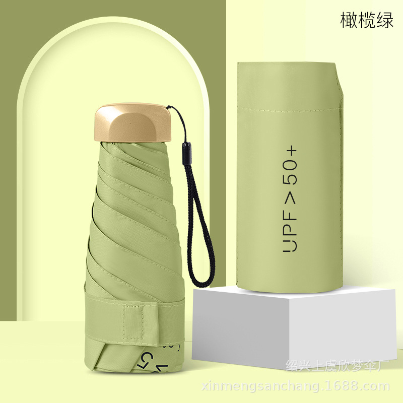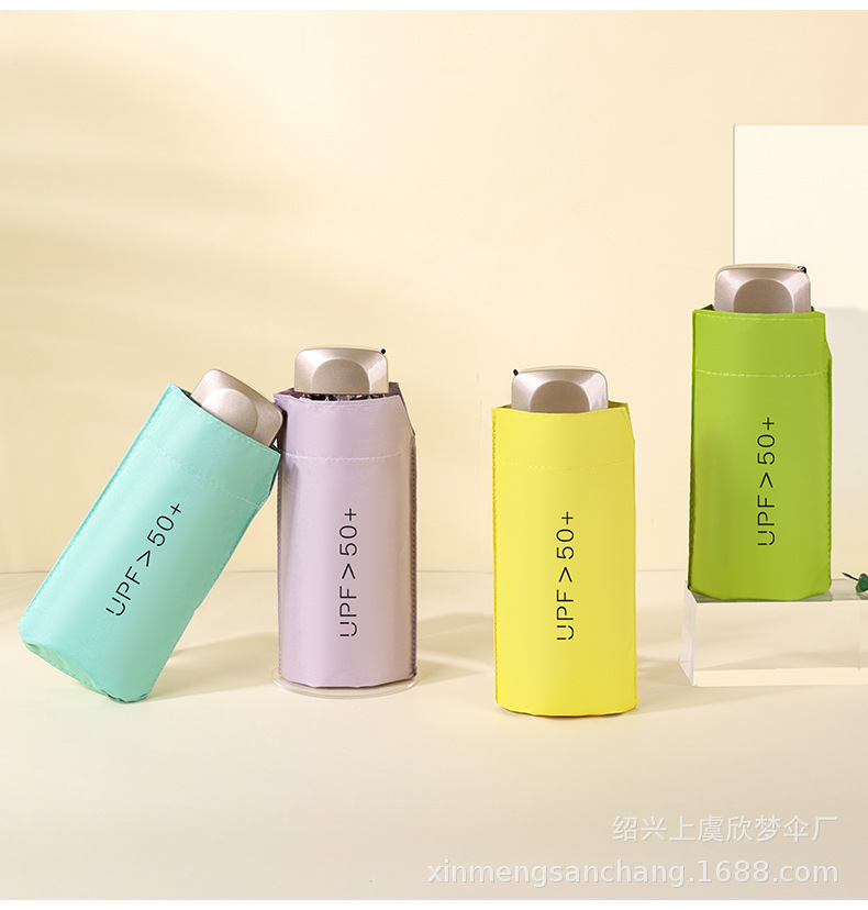 플랫 5 배 우산 블랙 고무 차양 UV 보호 태양 우산 울트라 라이트 여성 가방 우산 인쇄 로고