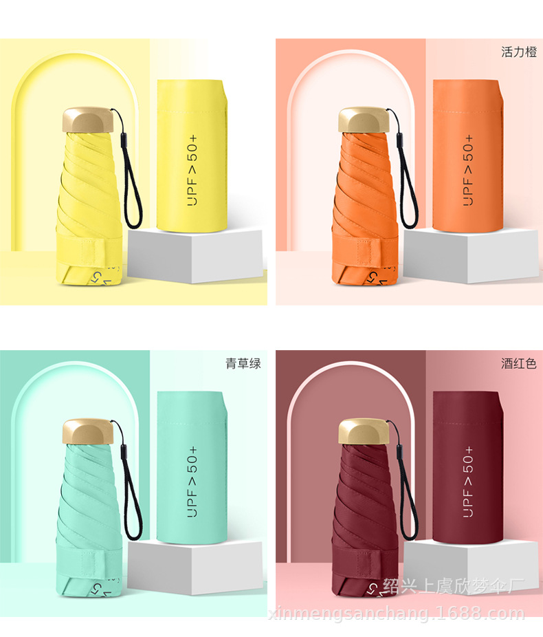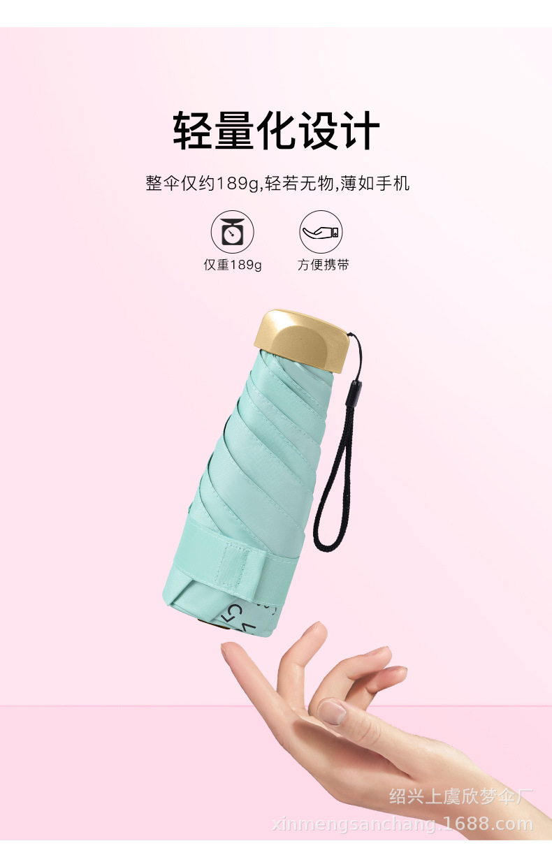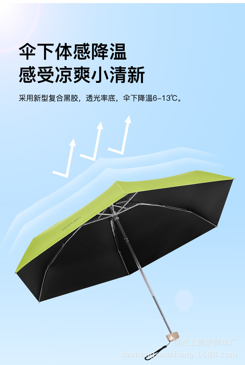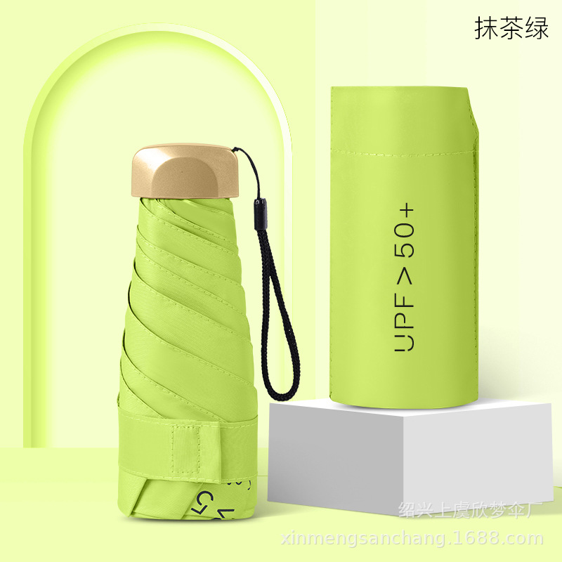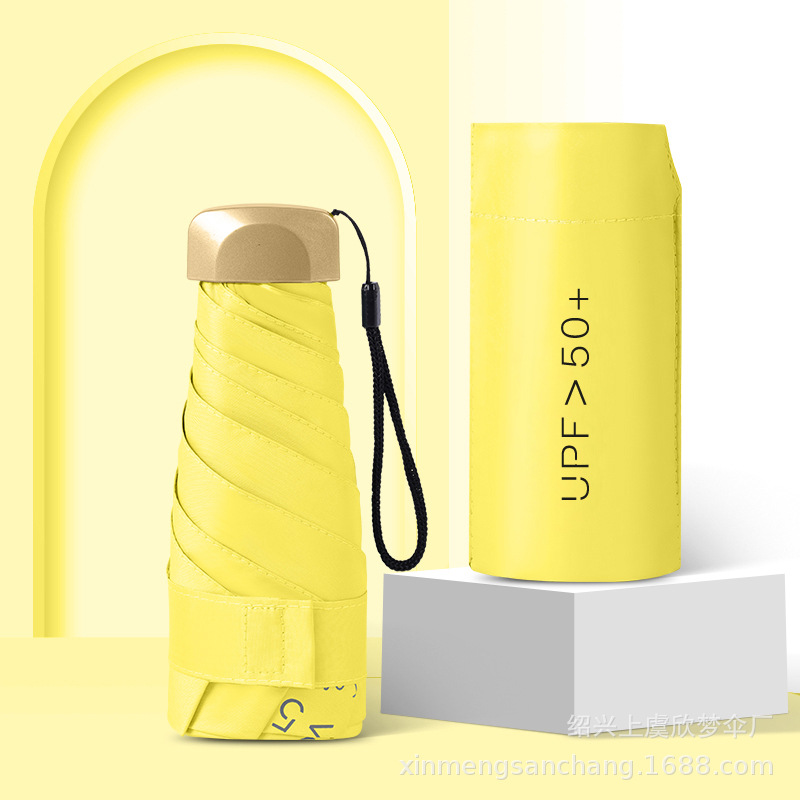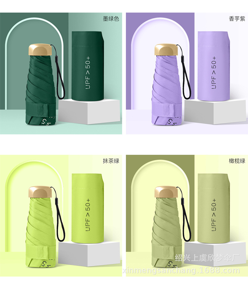 플랫 5 배 우산 블랙 고무 차양 UV 보호 태양 우산 울트라 라이트 여성 가방 우산 인쇄 로고