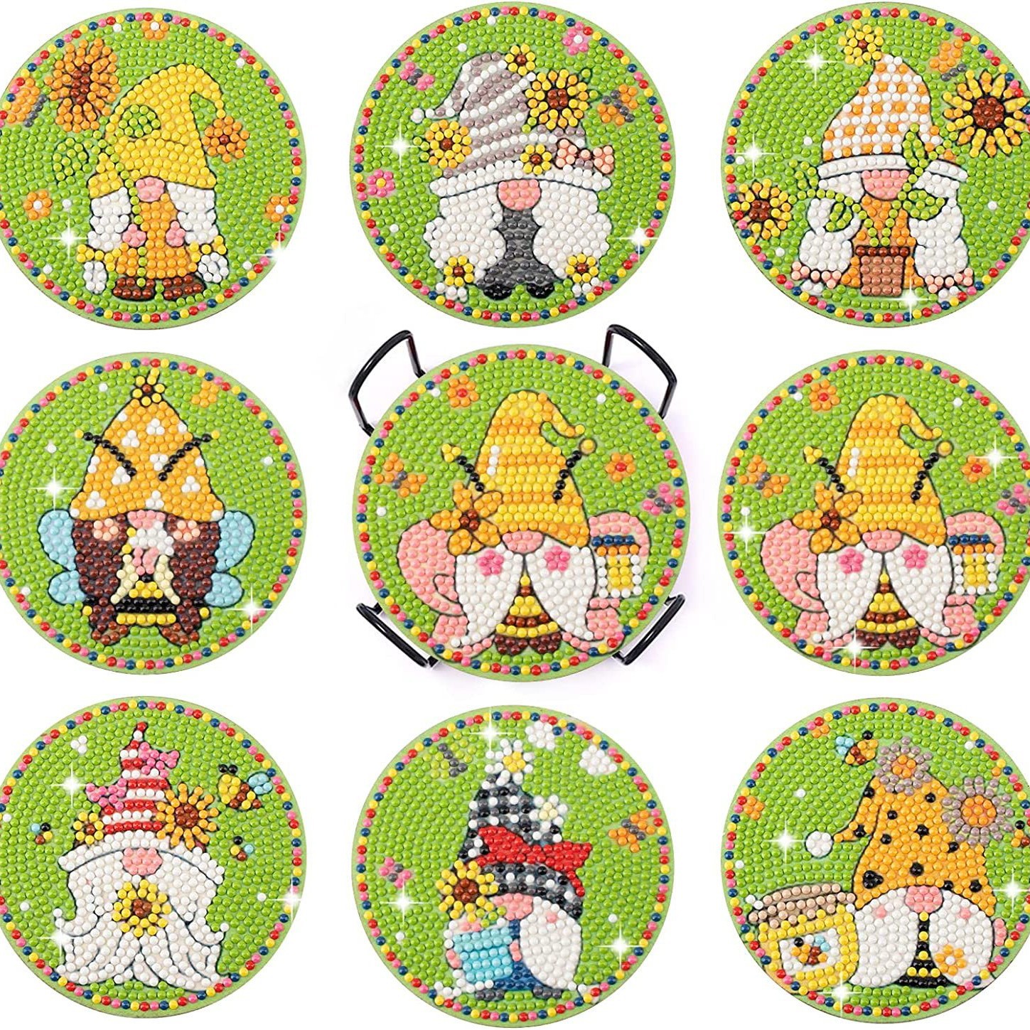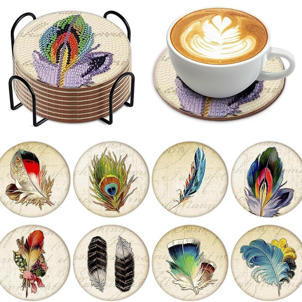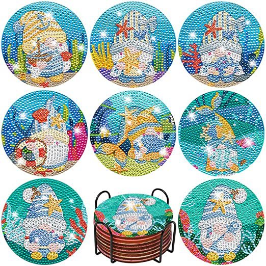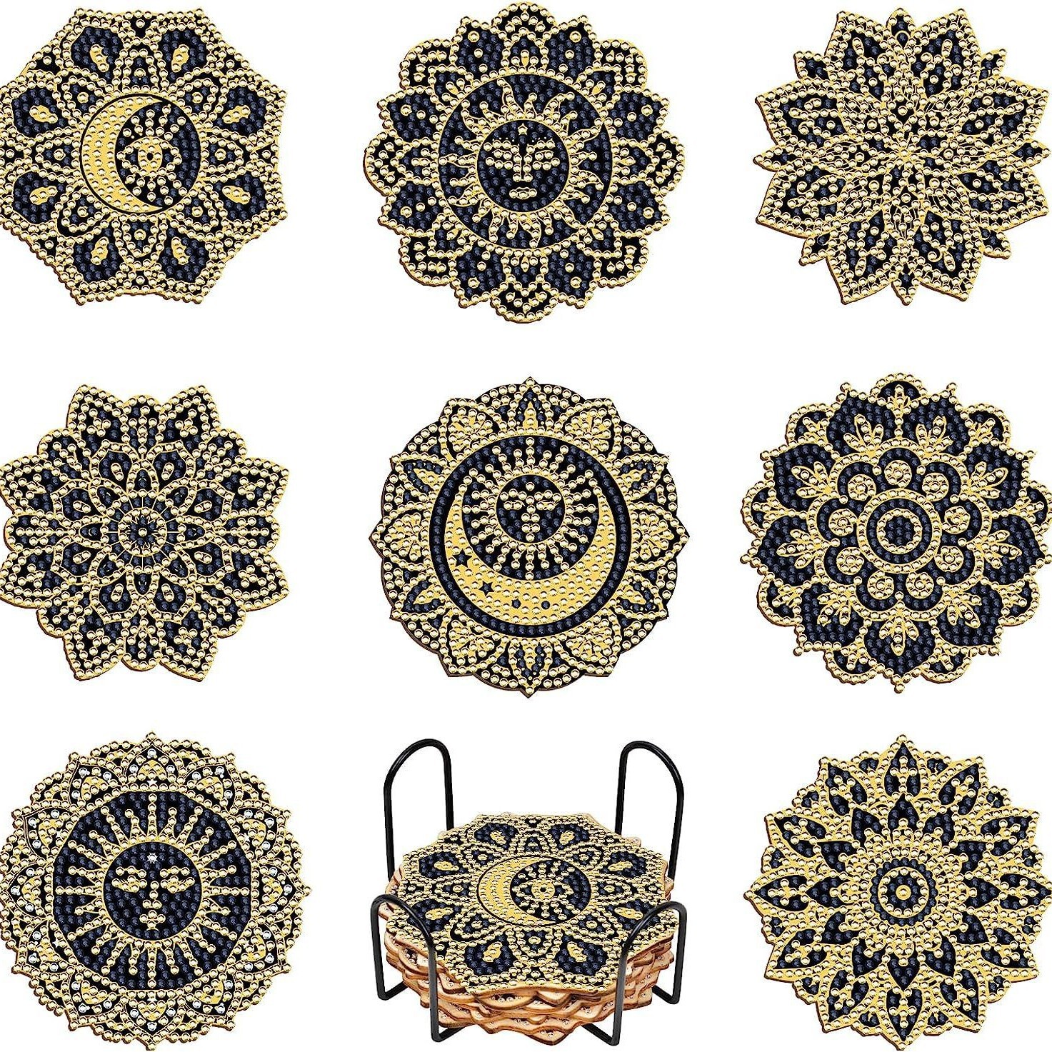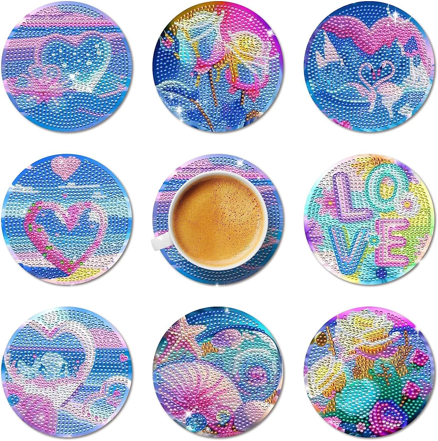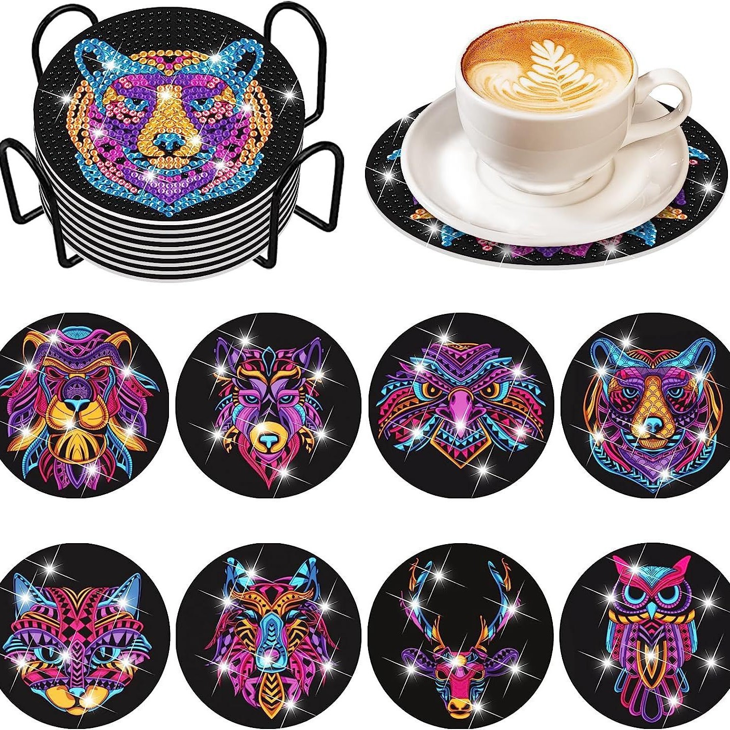 다이아몬드 페인팅 코스터 풀 다이아몬드 라운드 단열 식탁 코스터 아이언 컵 홀더 8 종 세트스토어 가기