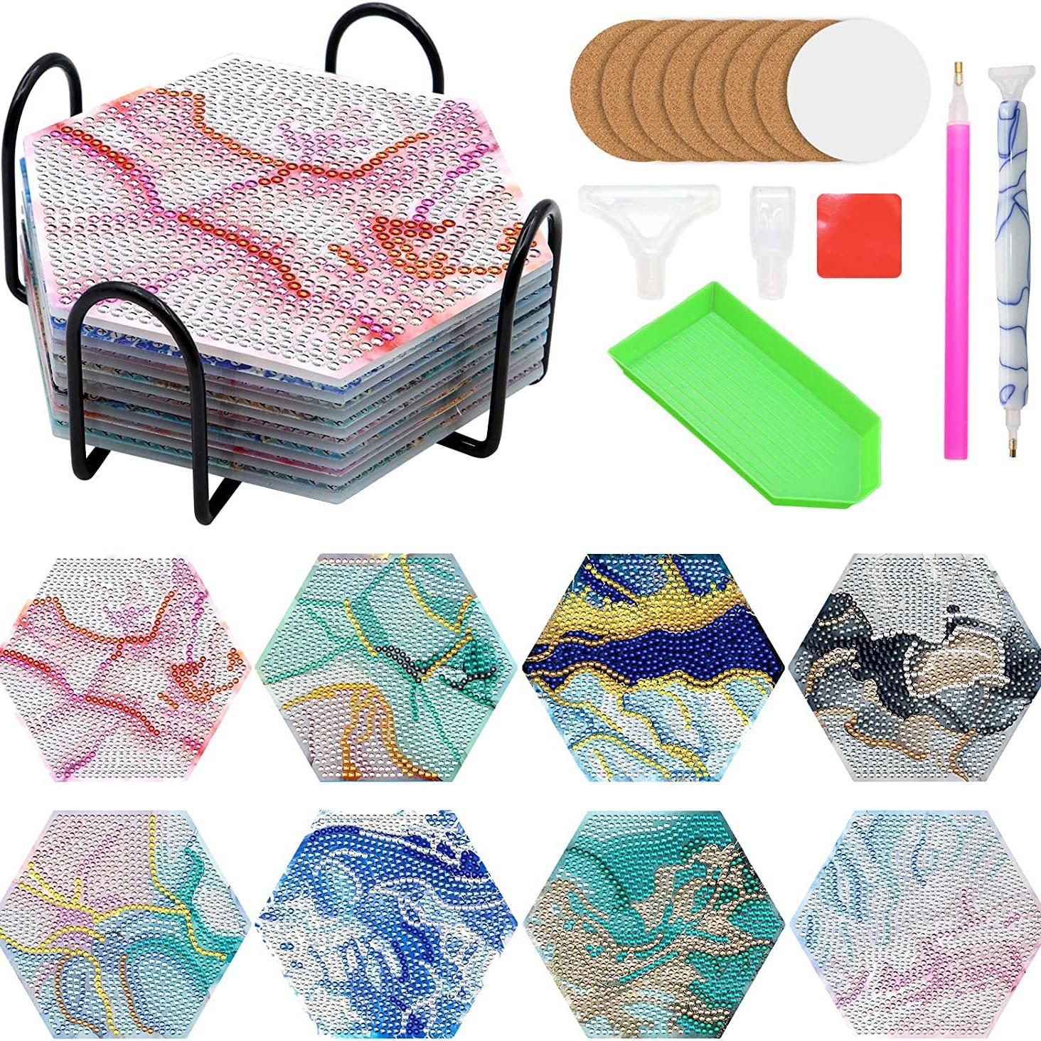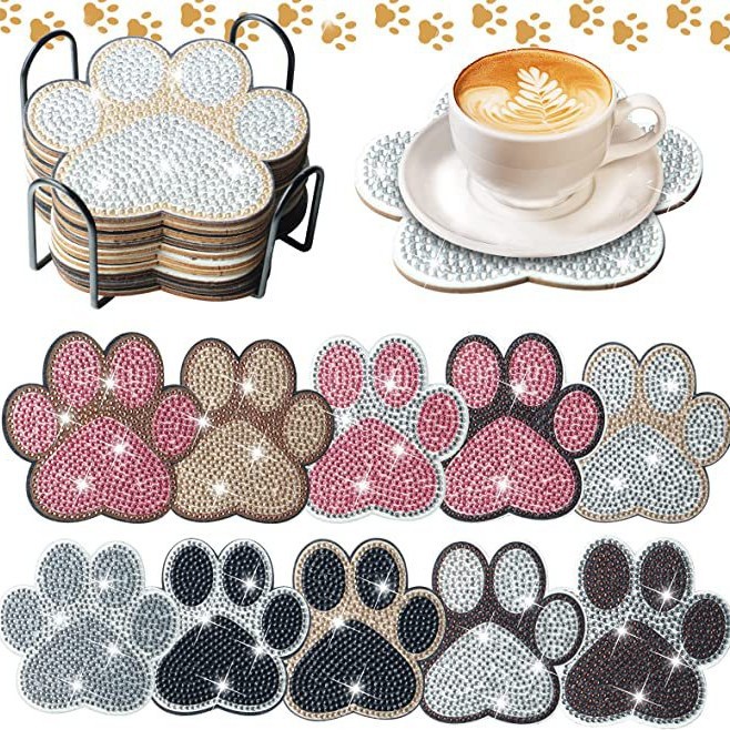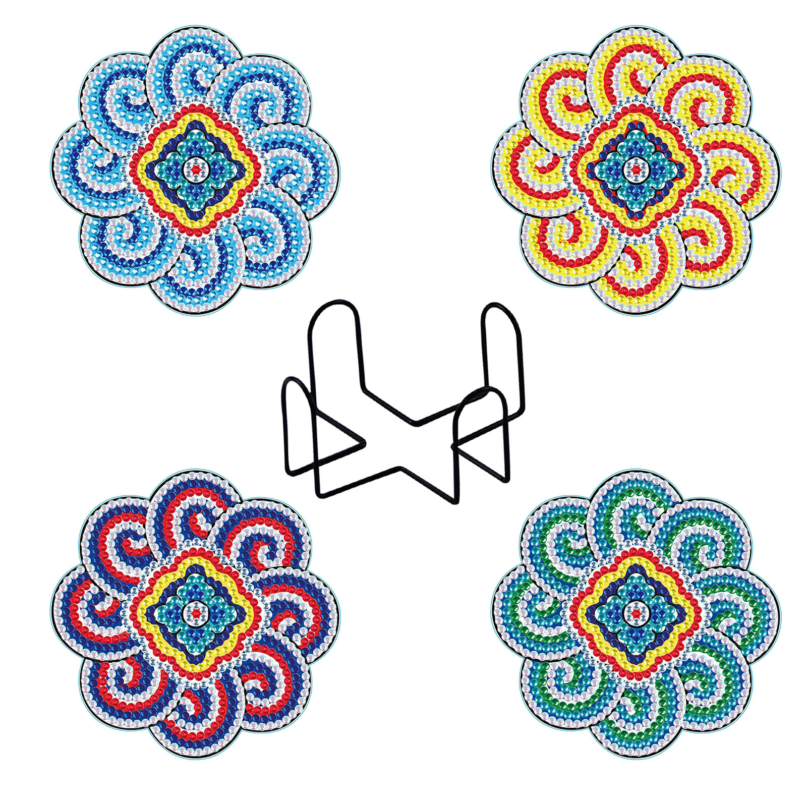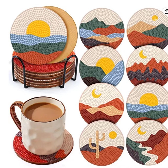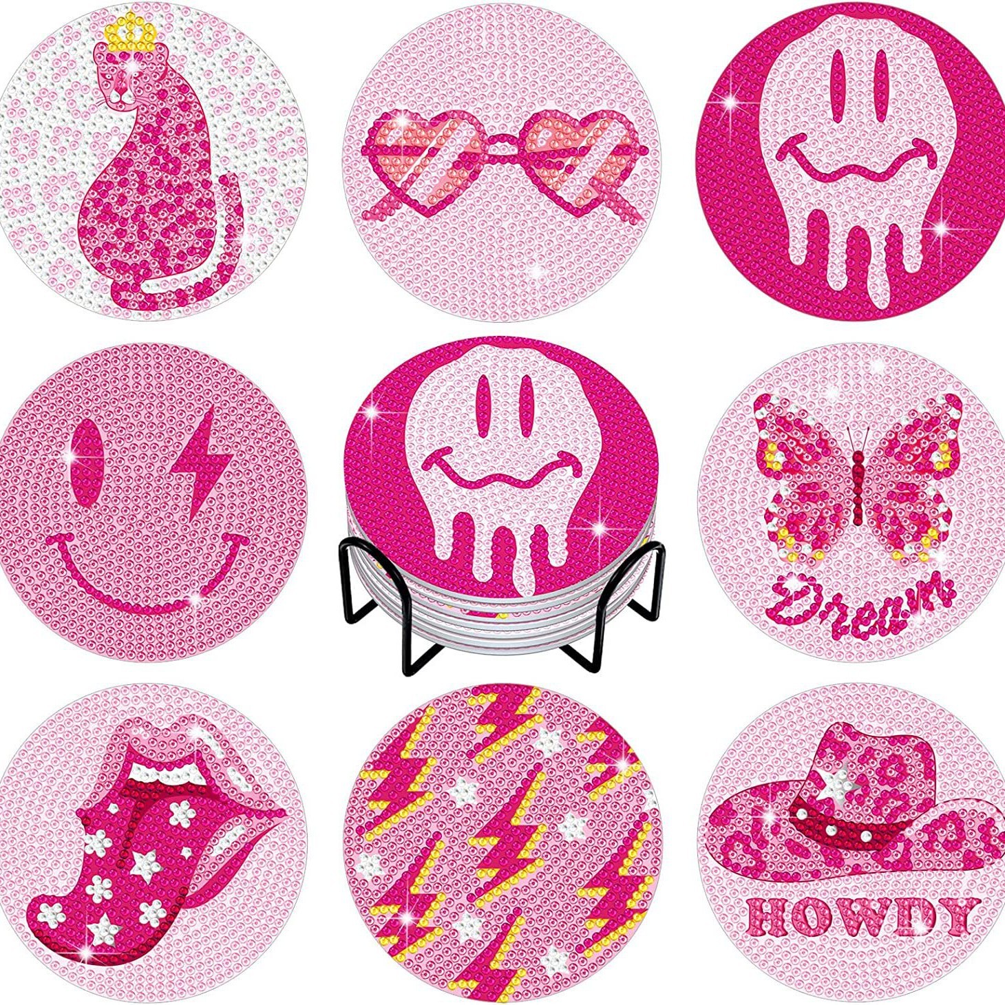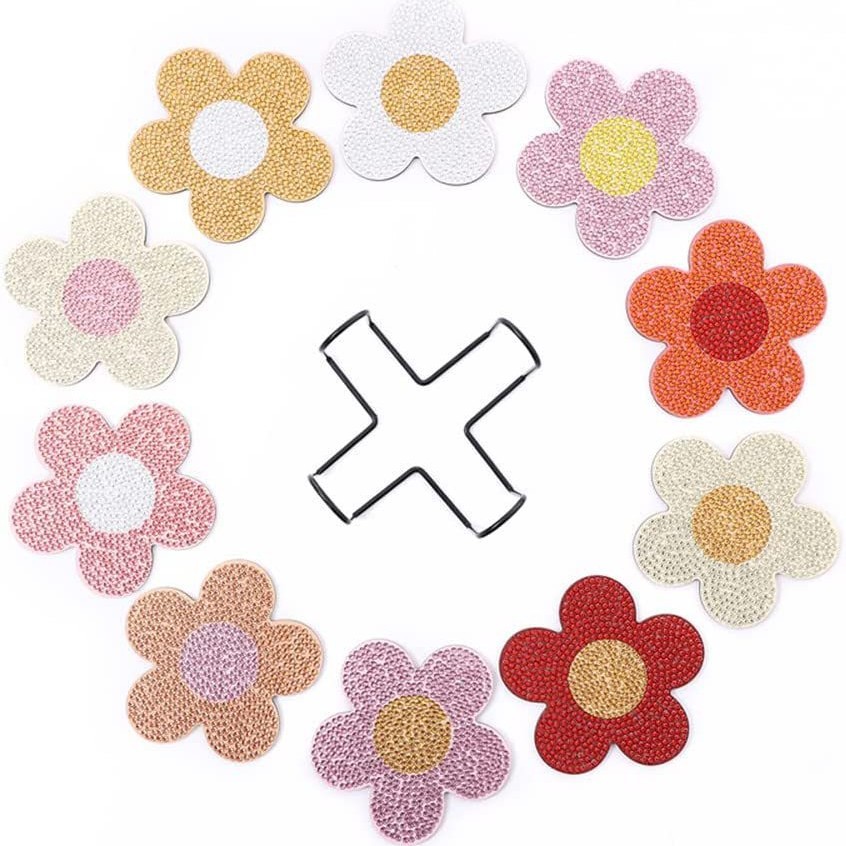 다이아몬드 페인팅 코스터 풀 다이아몬드 라운드 단열 식탁 코스터 아이언 컵 홀더 8 종 세트스토어 가기