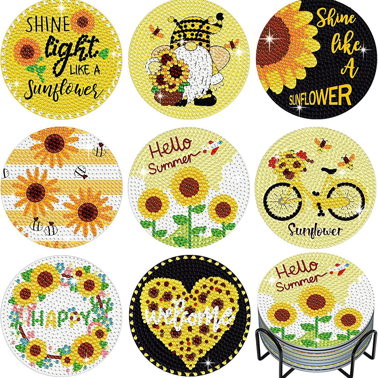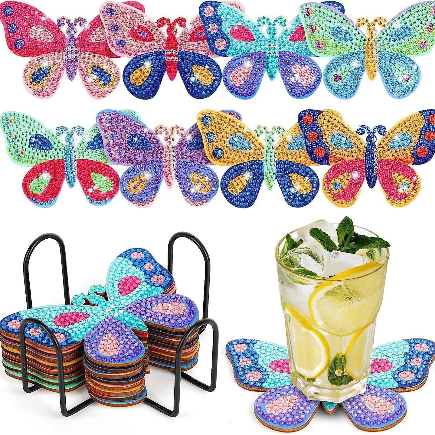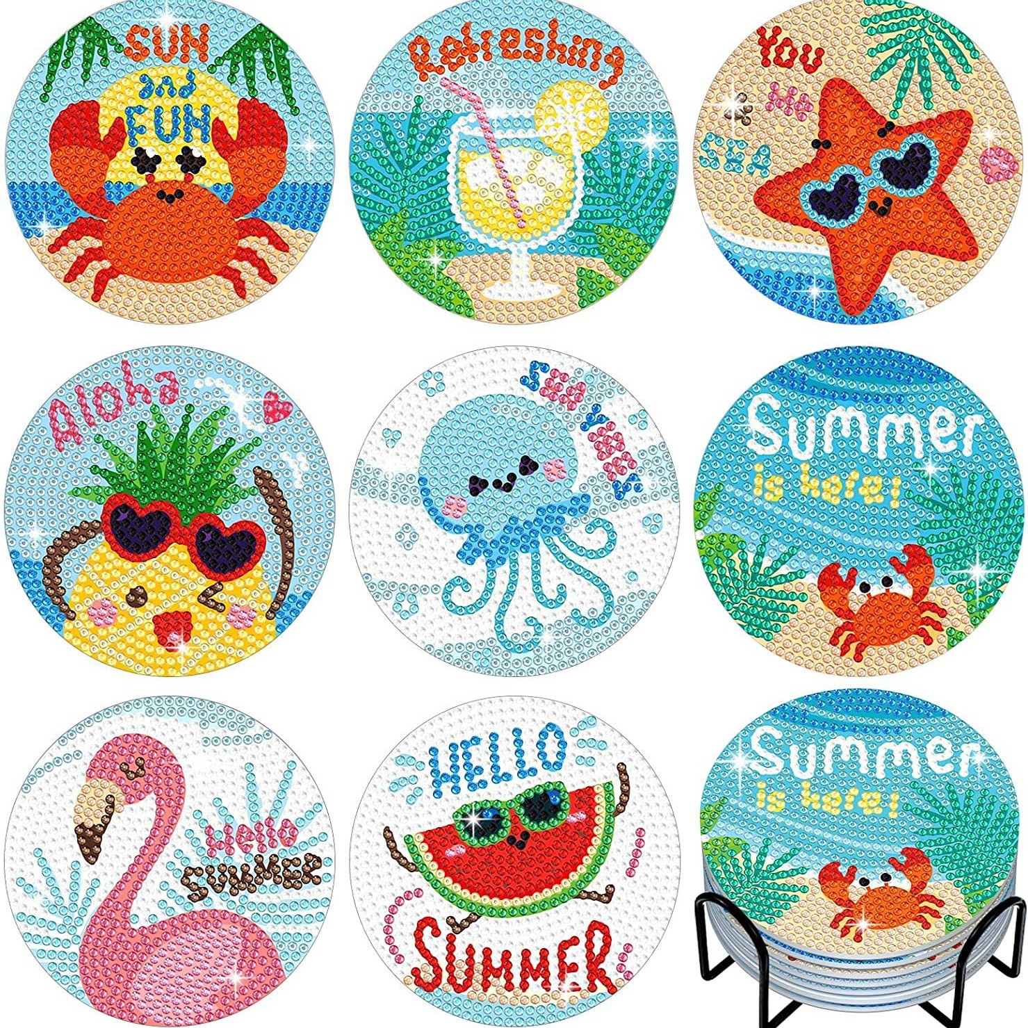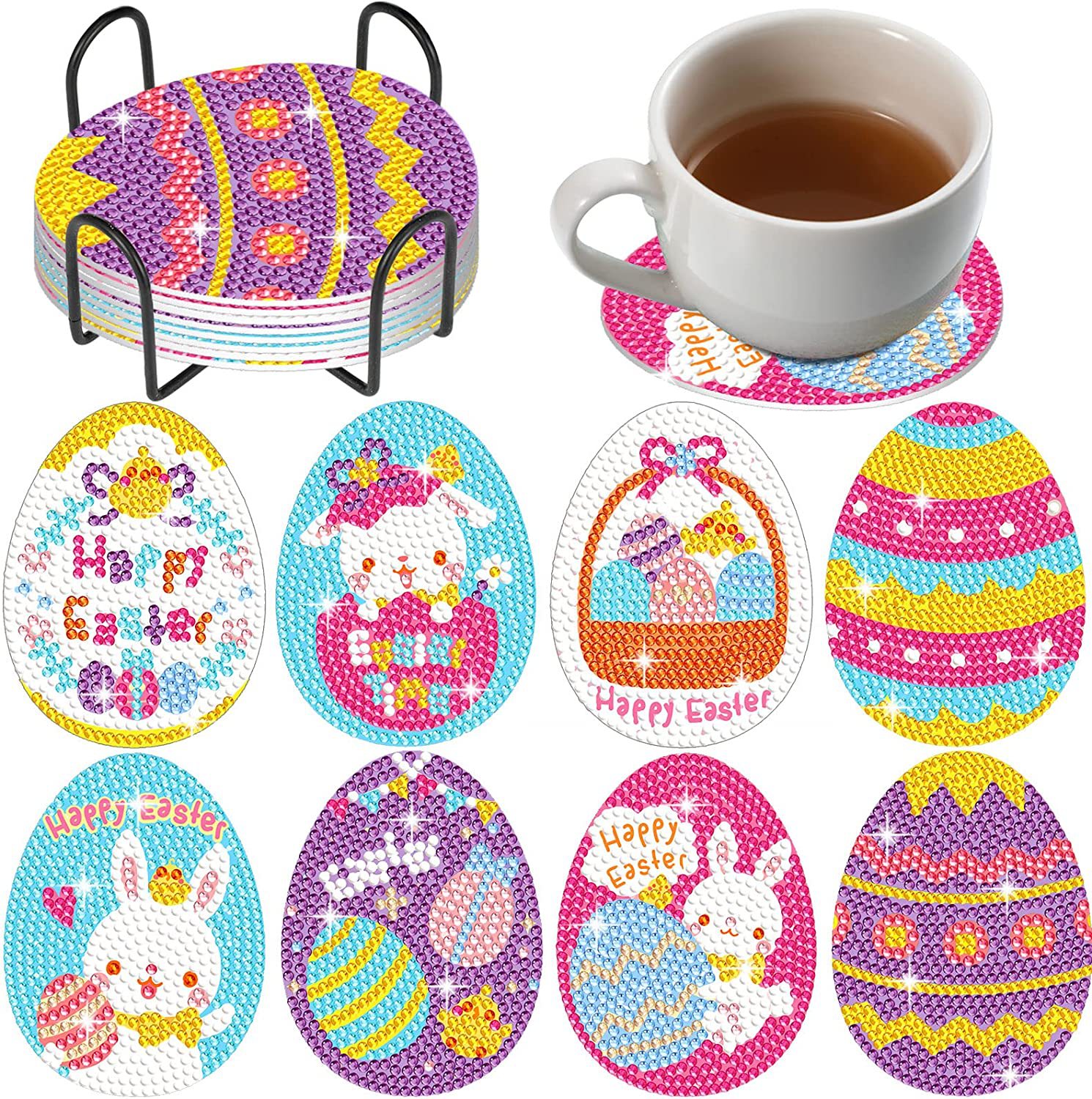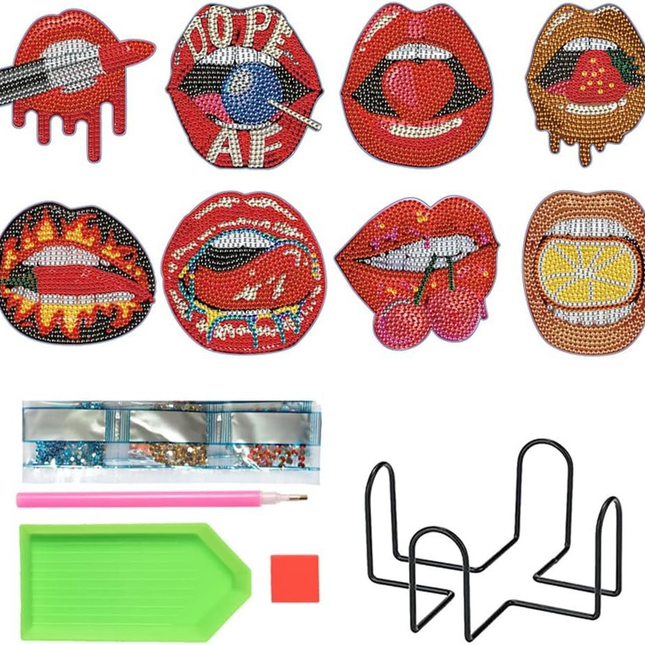 다이아몬드 페인팅 코스터 풀 다이아몬드 라운드 단열 식탁 코스터 아이언 컵 홀더 8 종 세트스토어 가기