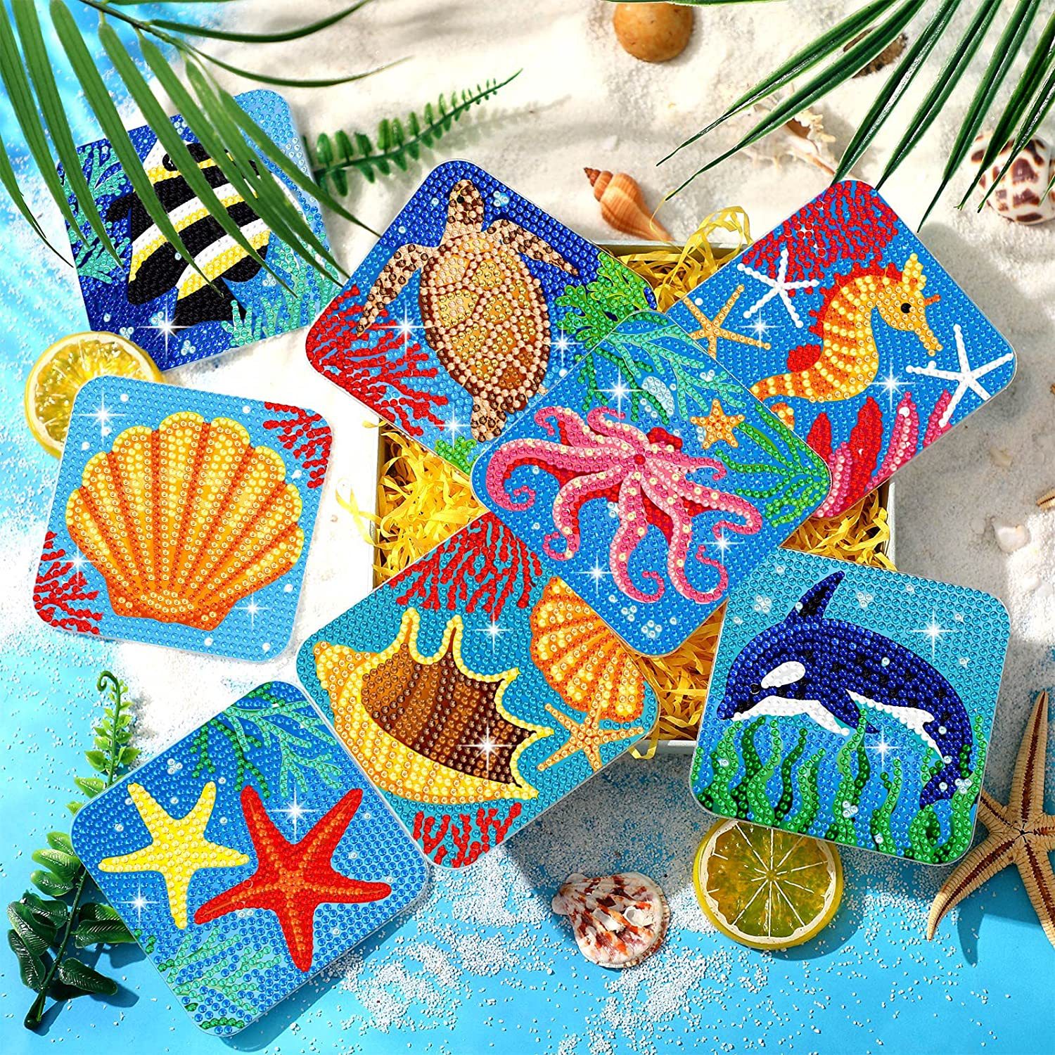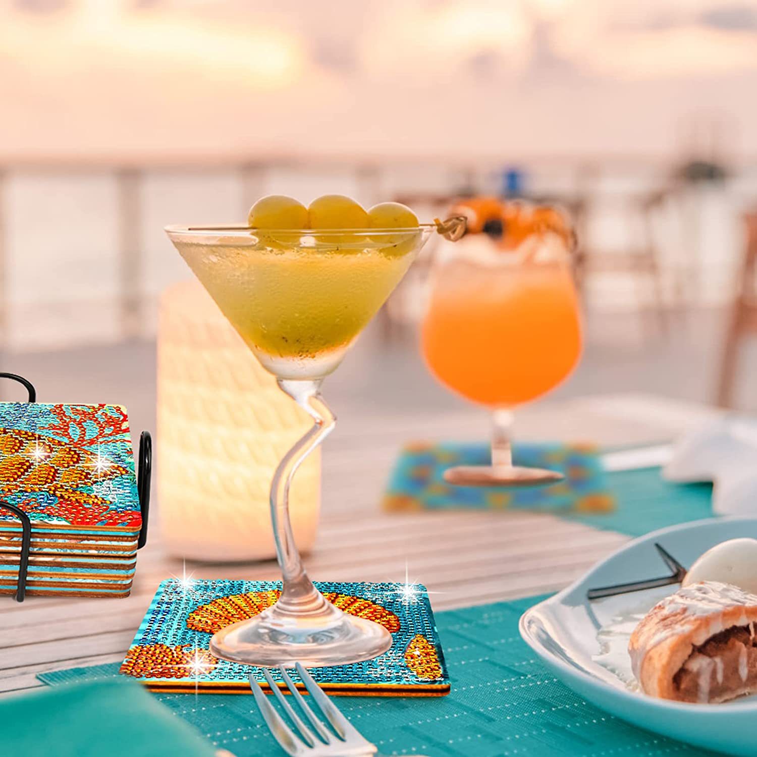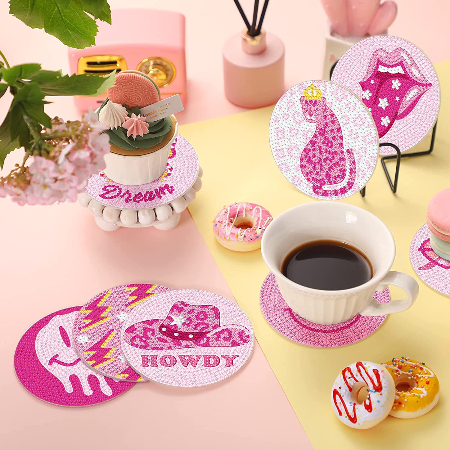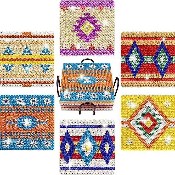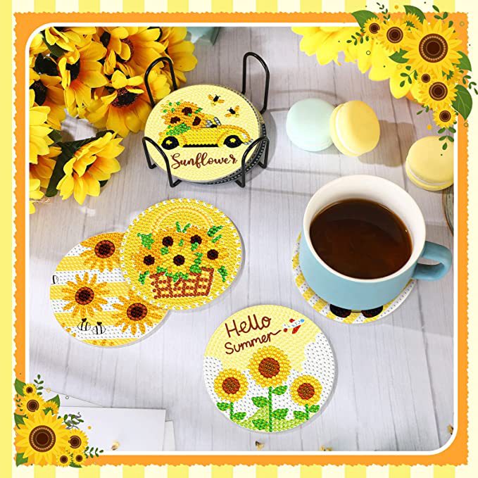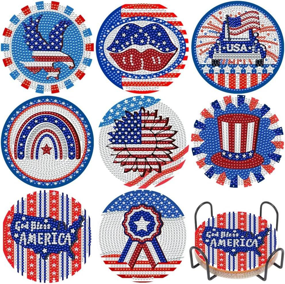 다이아몬드 페인팅 코스터 풀 다이아몬드 라운드 단열 식탁 코스터 아이언 컵 홀더 8 종 세트스토어 가기