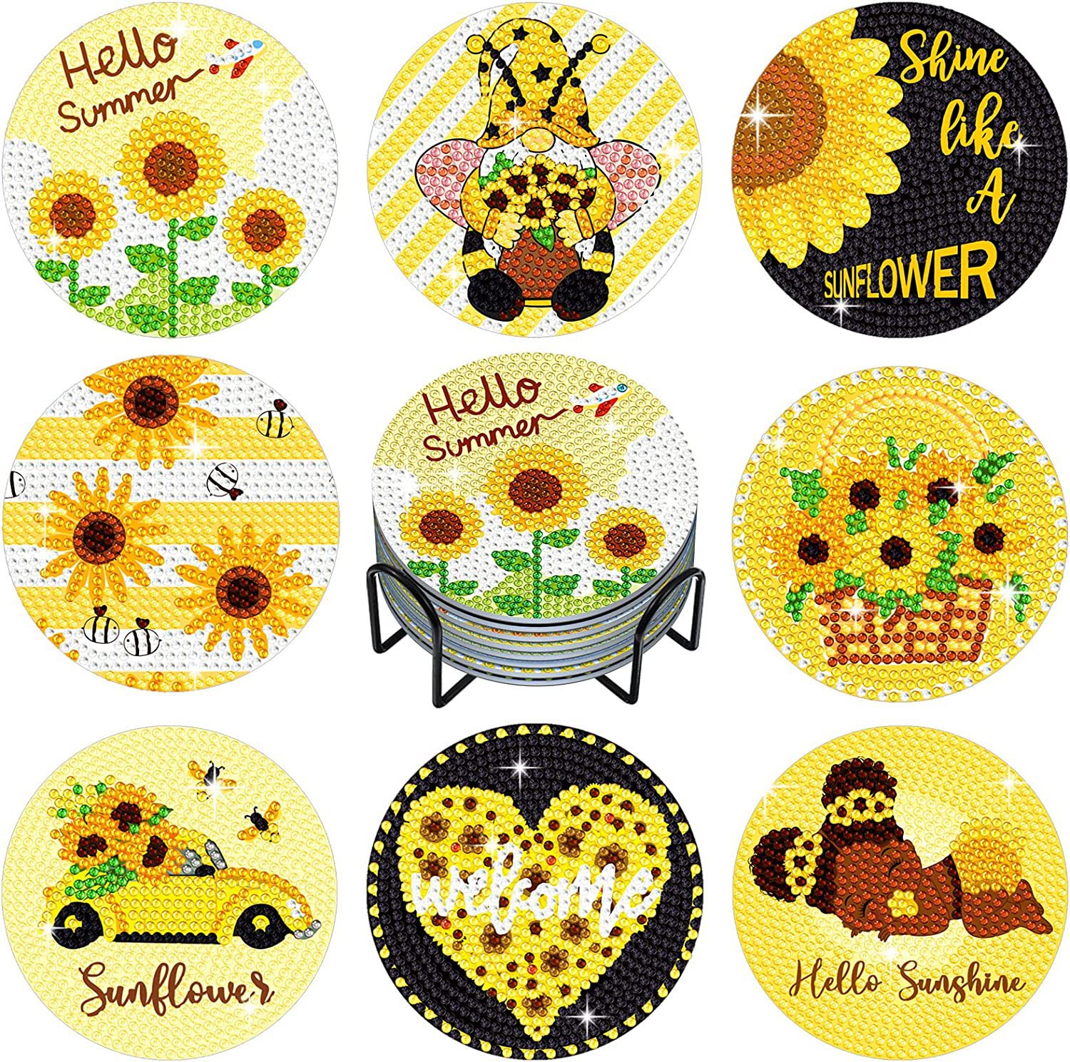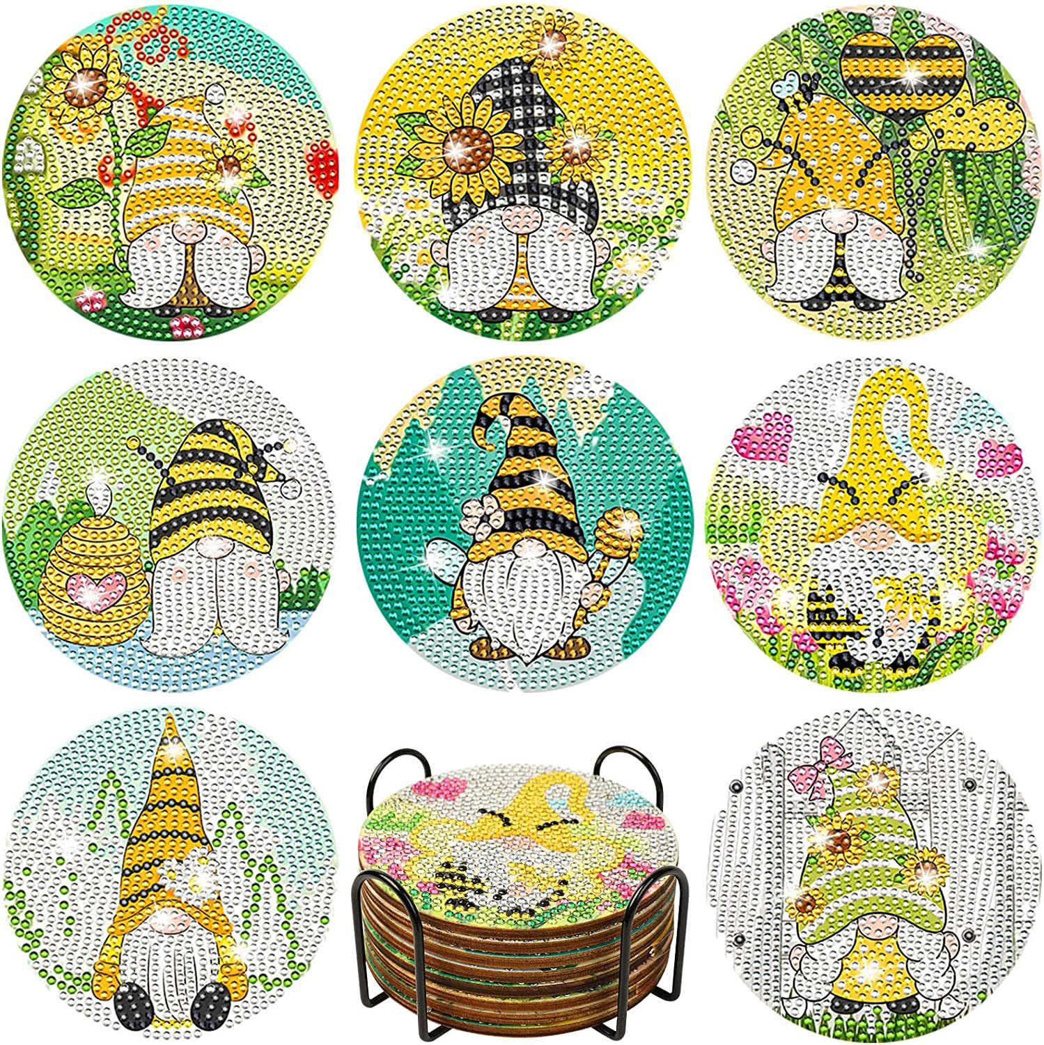 다이아몬드 페인팅 코스터 풀 다이아몬드 라운드 단열 식탁 코스터 아이언 컵 홀더 8 종 세트