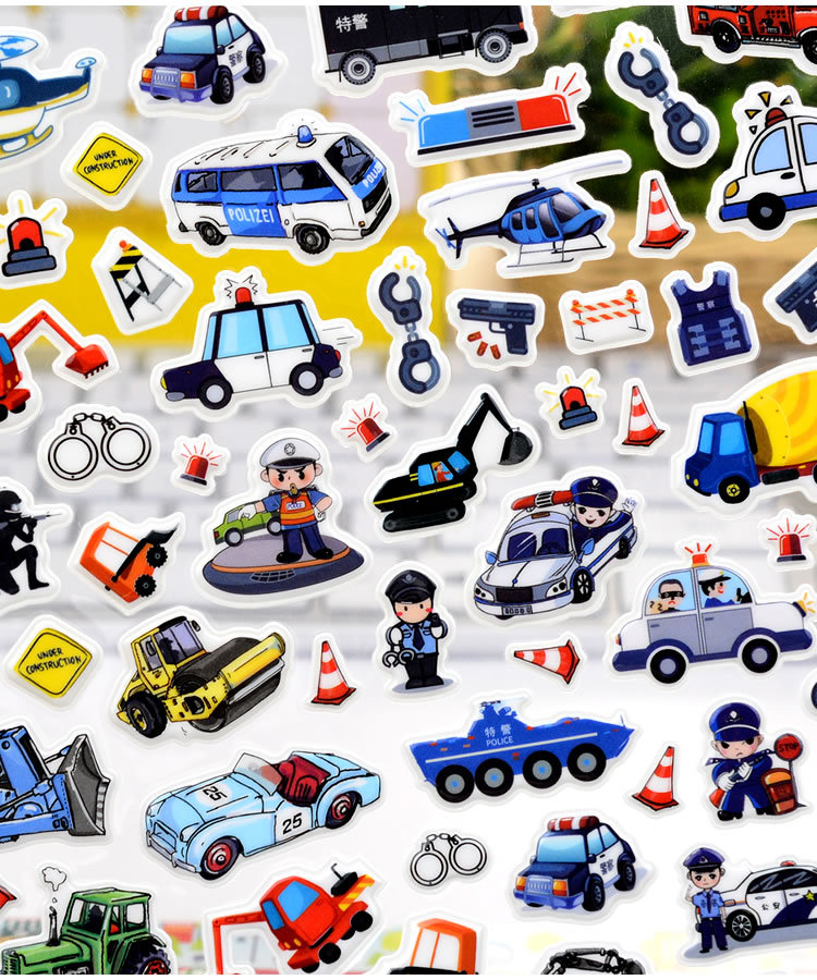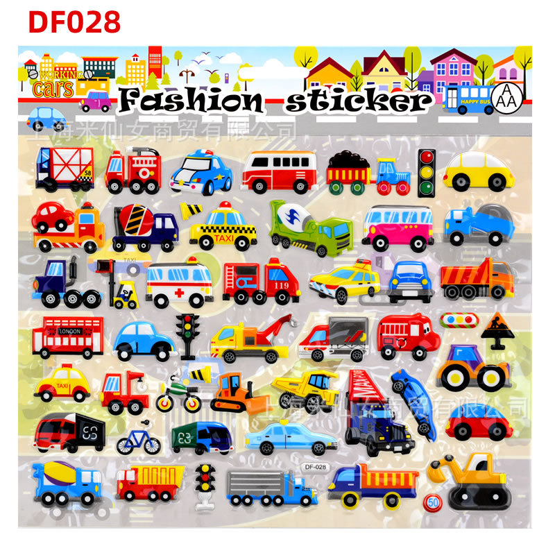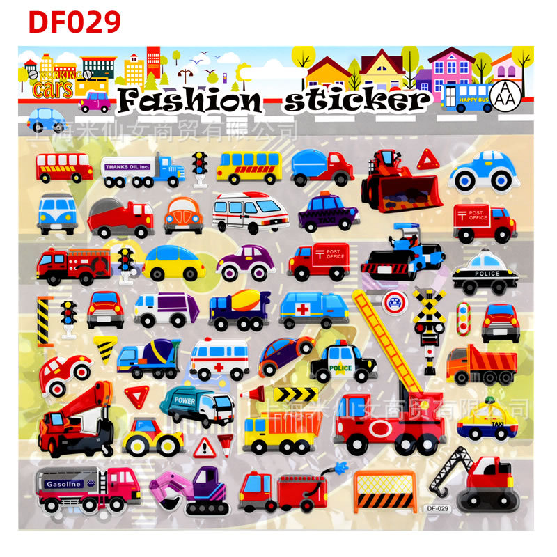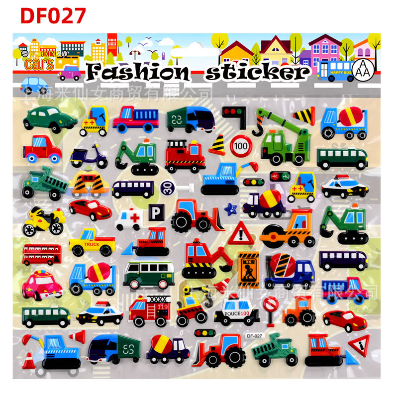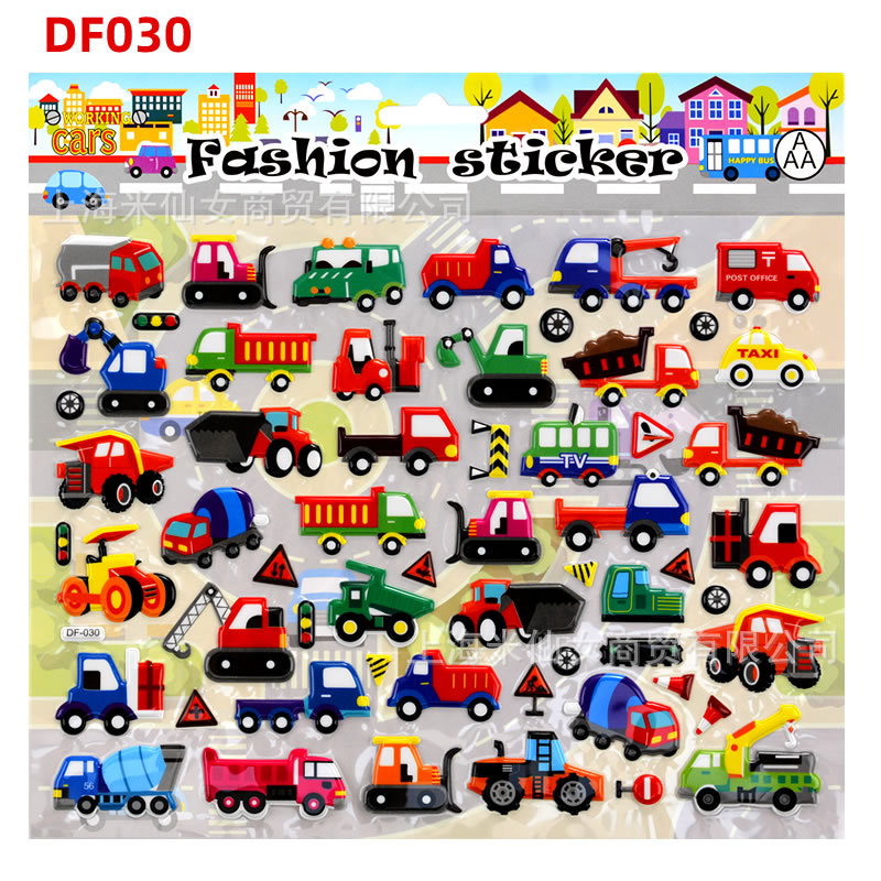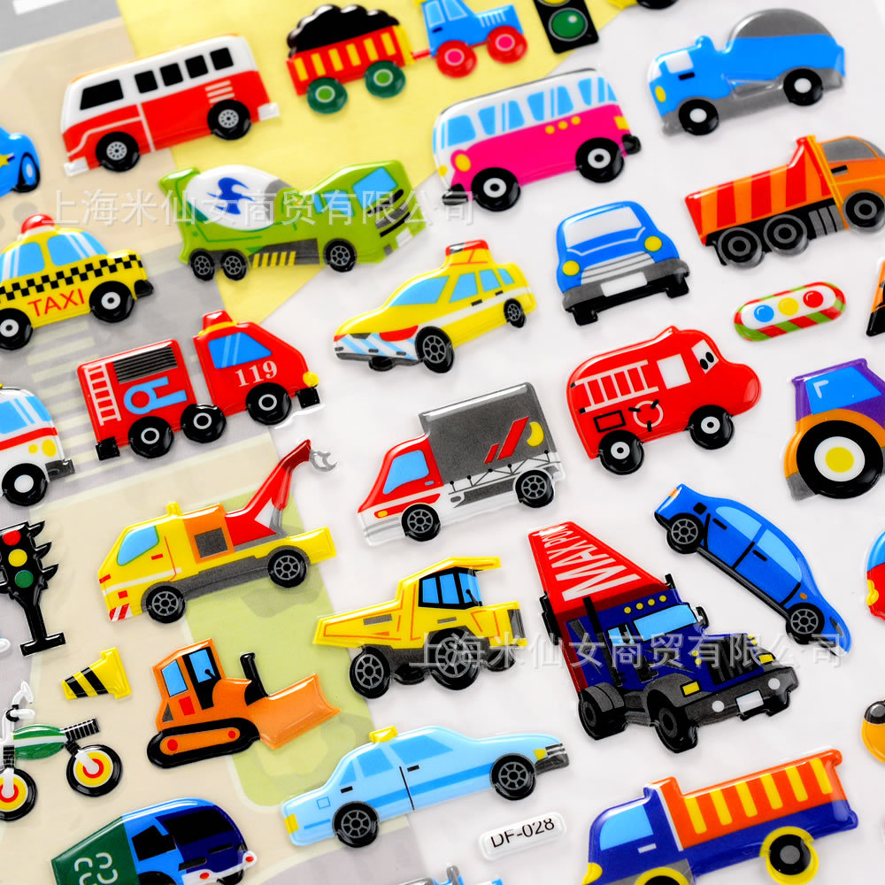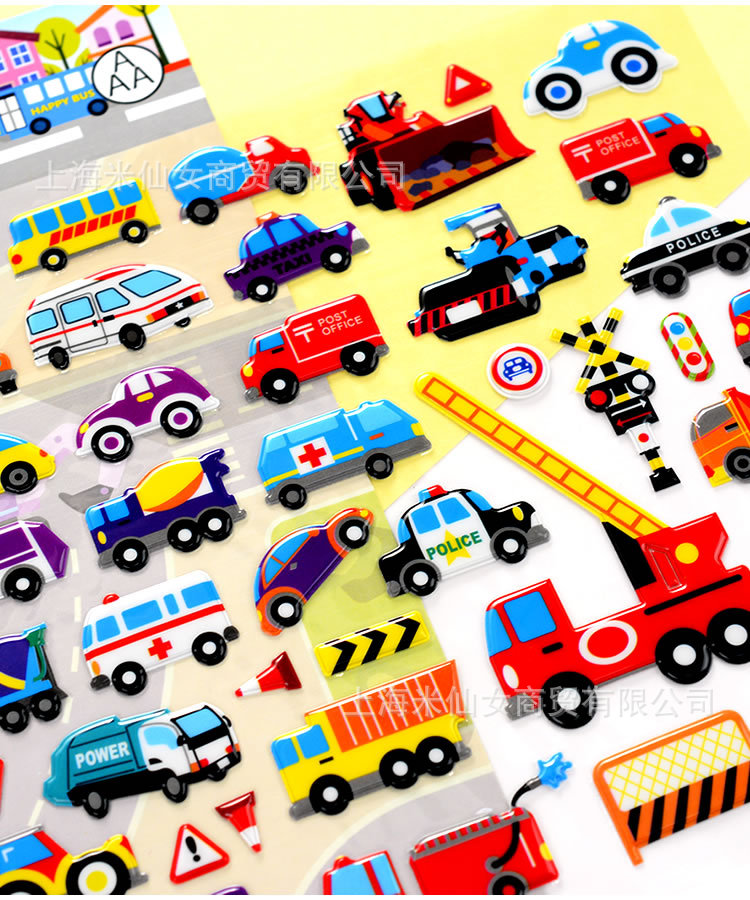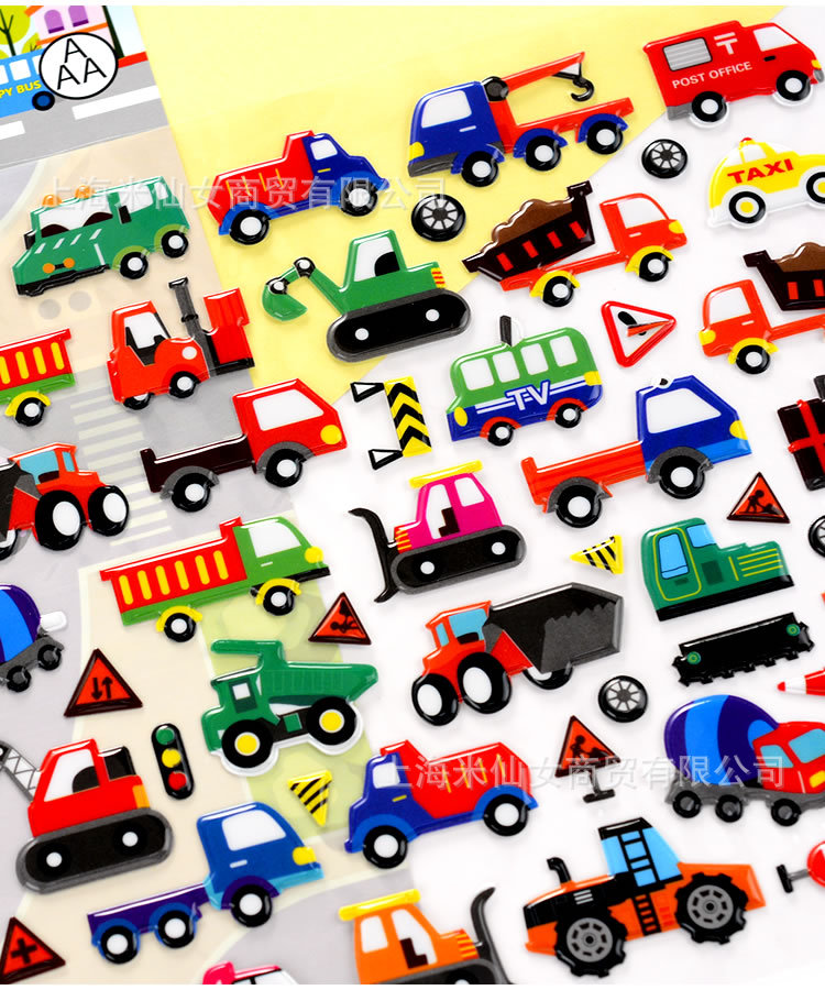 대형 자동차 입체 버블 스티커 어린이 남아 유아 기념품 유치원 보상 공사차량 스티커