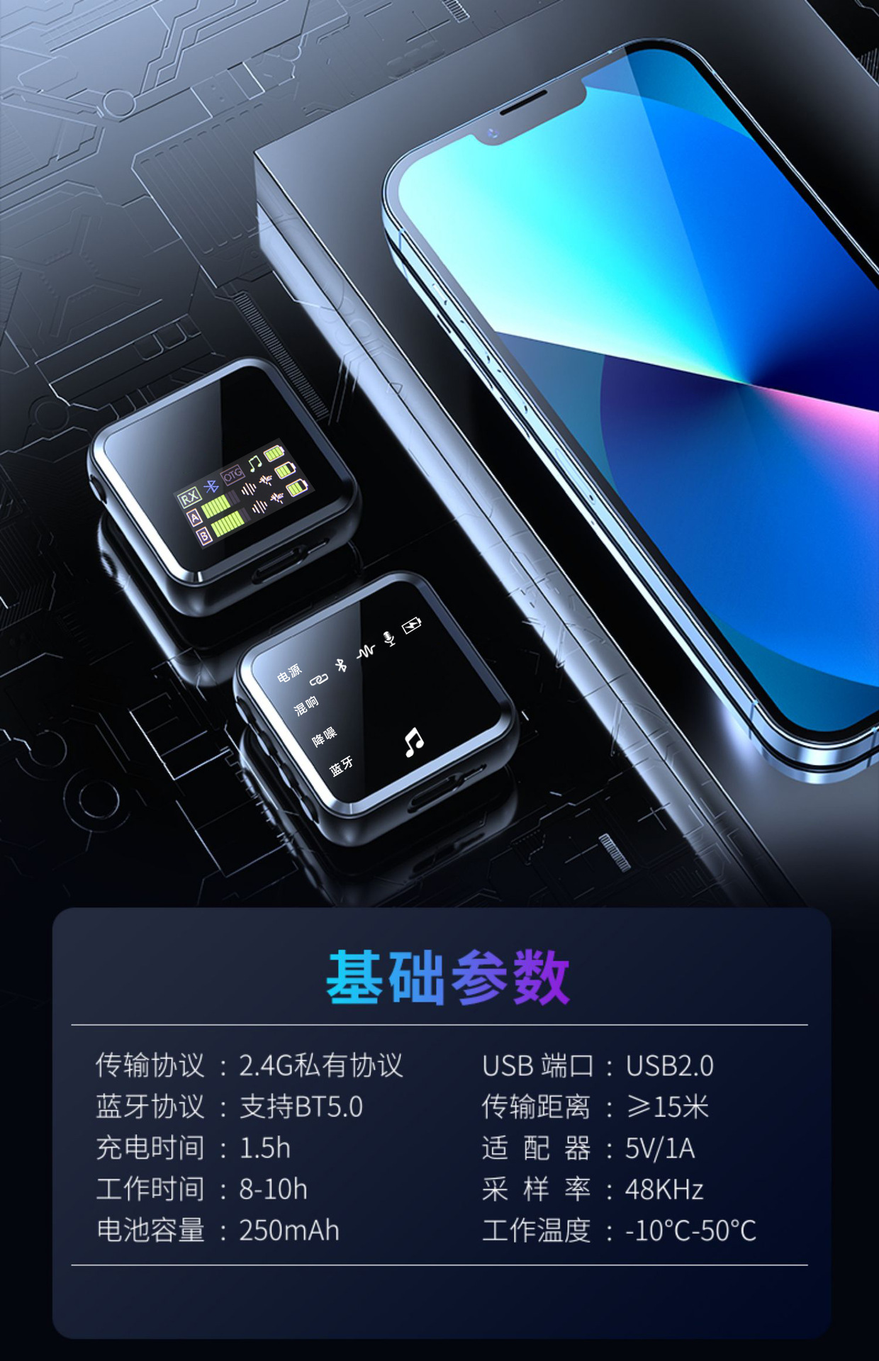 M32S 1 대 2 무선 lavalier 마이크 소음 감소 잔향 블루투스 반주 소음 감소 양방향 라디오 마이크 라이브 방송