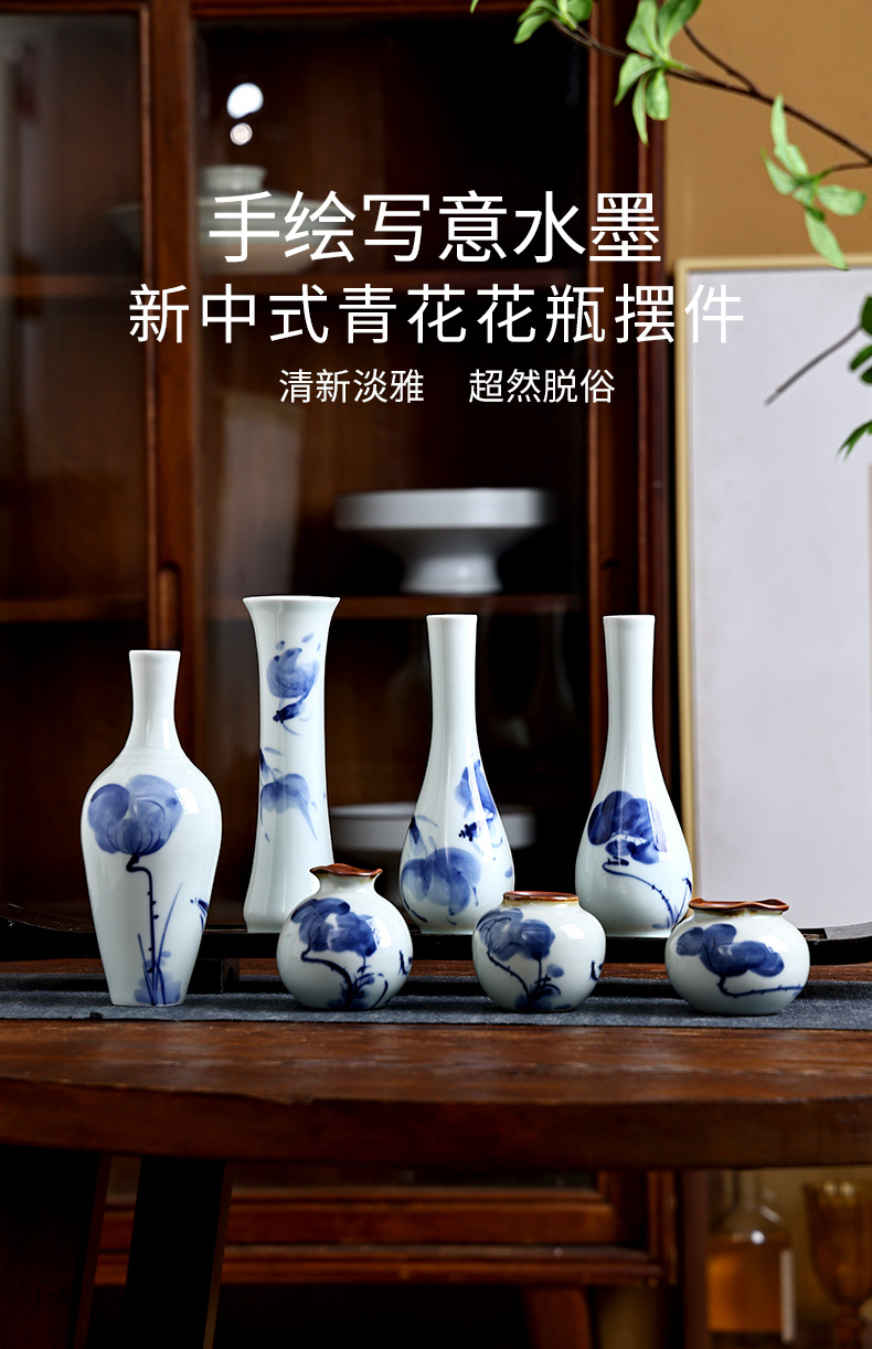 Jingdezhen 손으로 그린 연잎 조리대 도자기 꽃 수경 순수 손으로 그린 복고풍 중국 도자기 조리대 꽃 도매스토어 가기