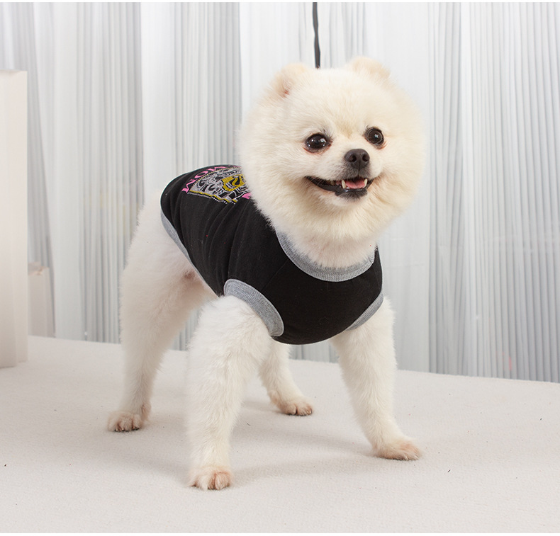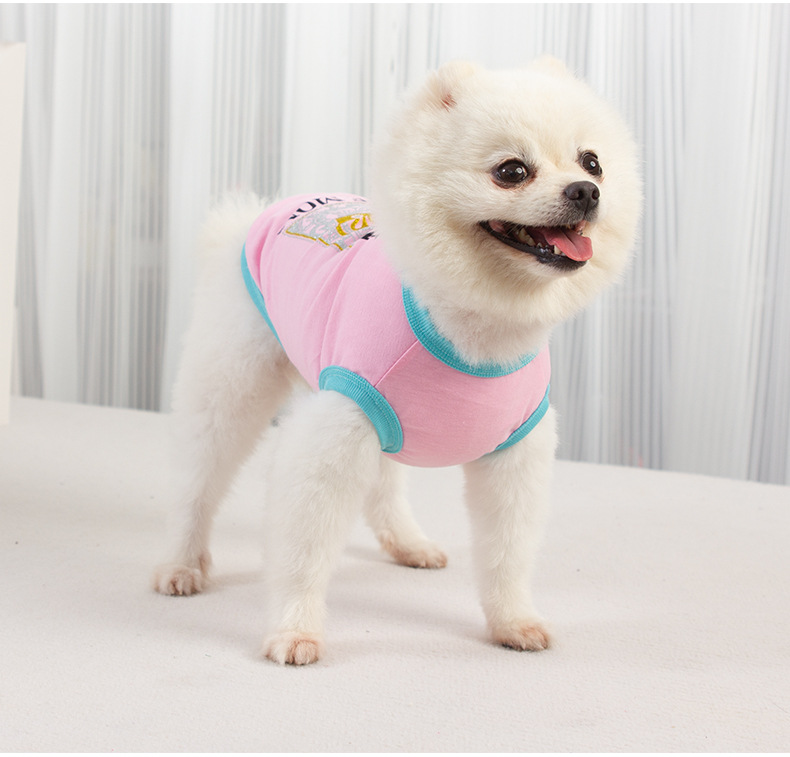 새로운 개 옷 여름 얇은 하이 퀄리티 유럽과 미국 인쇄 스레드 조끼 작은 개와 고양이 옷