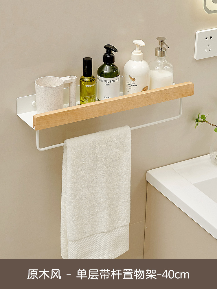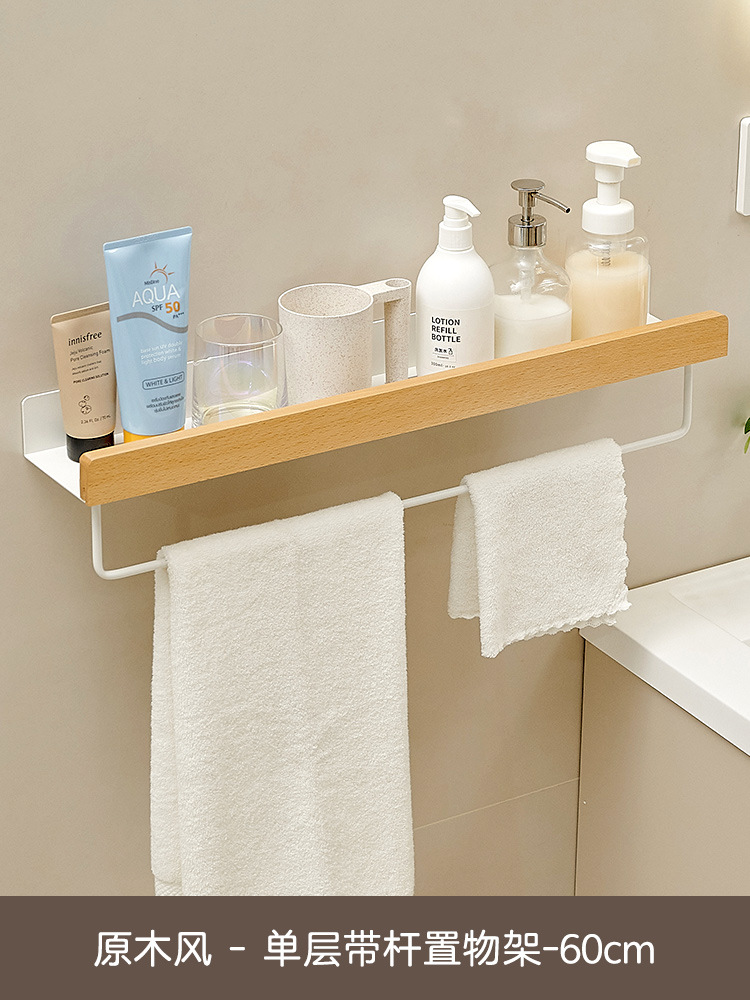 욕실 벽 수납 랙 펀치 프리 화장실 세면대 보관 선반 로그 단단한 나무 욕실 수납 랙스토어 가기