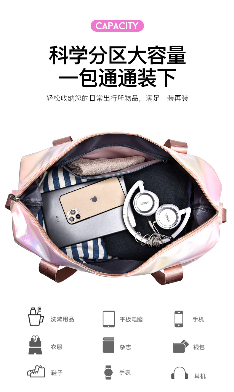 진주 빛 여행 가방 임산부 보관 가방 건조 및 습식 분리 신발 창고 경량 단거리 휴대용 요가 훈련 가방