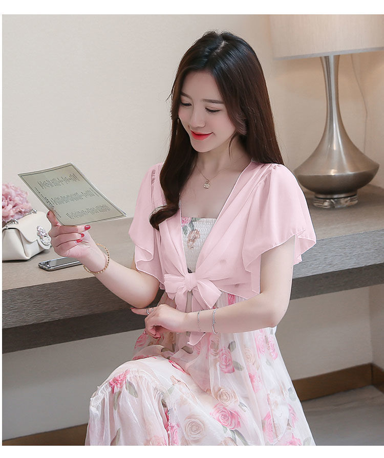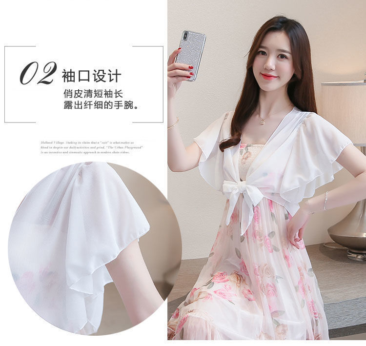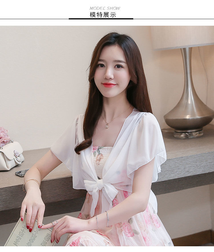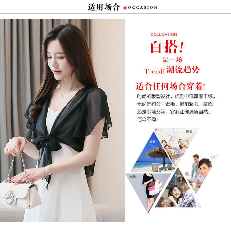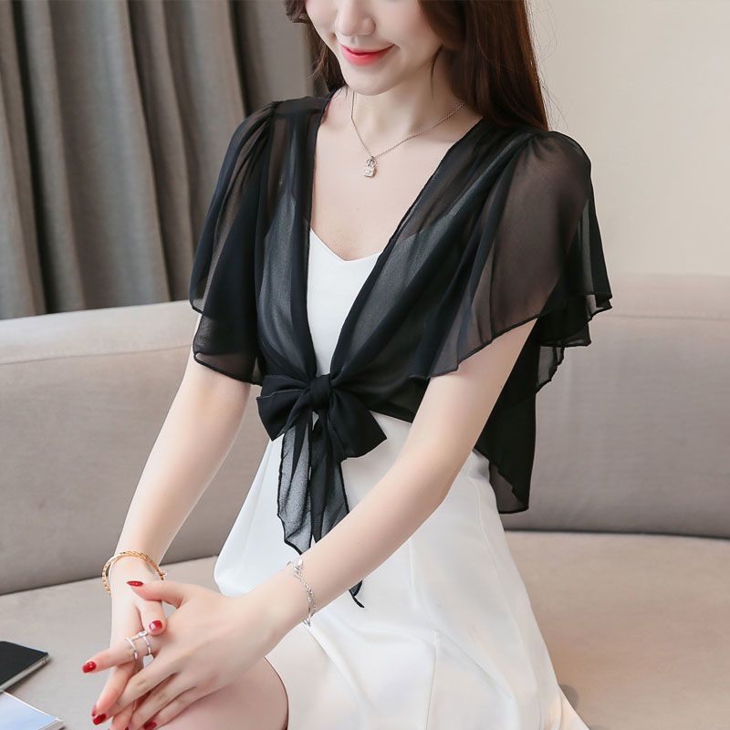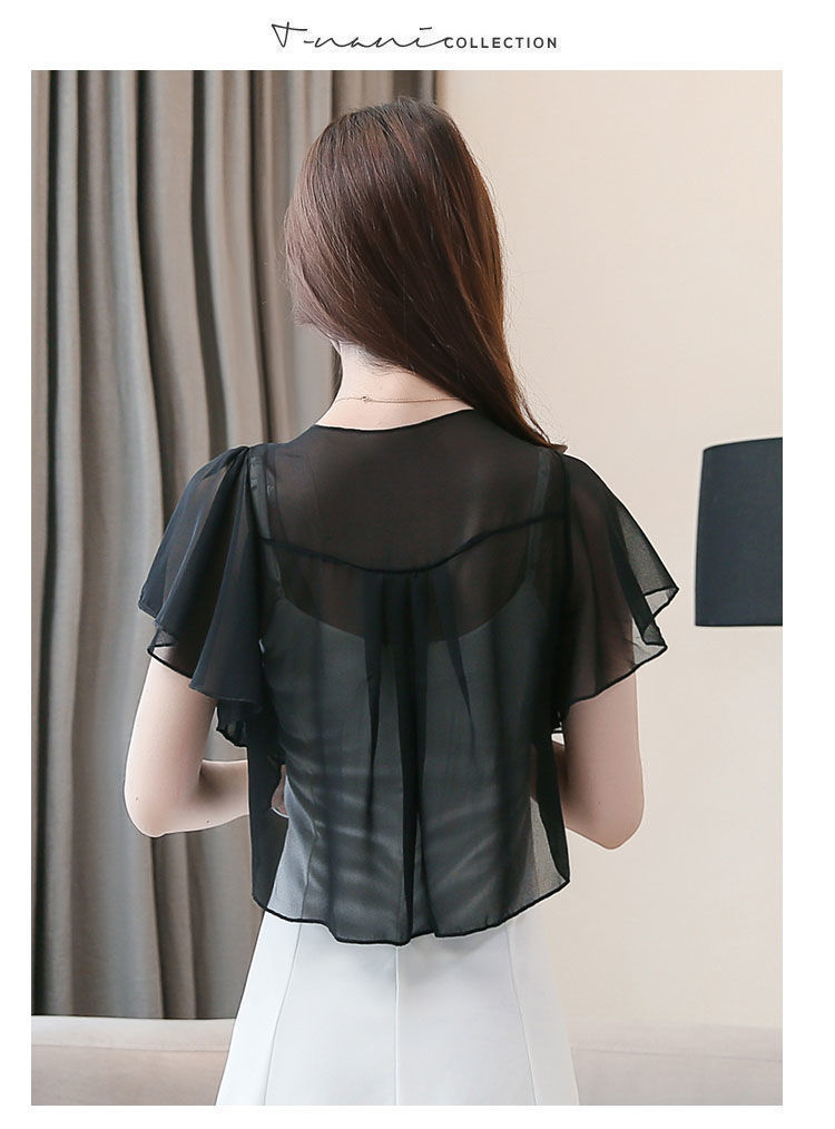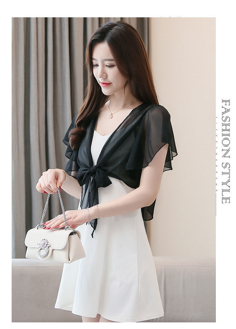 쉬폰 스몰 숄 여름 코트 스커트 반팔 얇은 올 매치 한국식 쇼트 아우터 가디건 여성용 태양 보호 의류