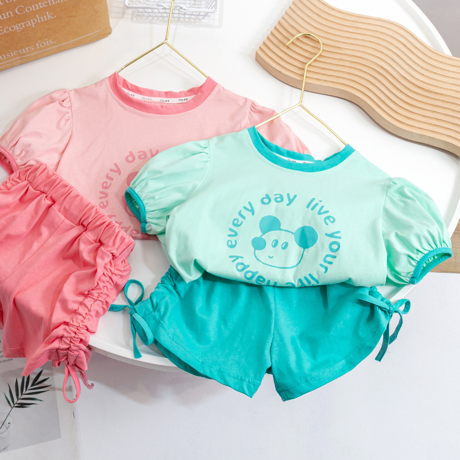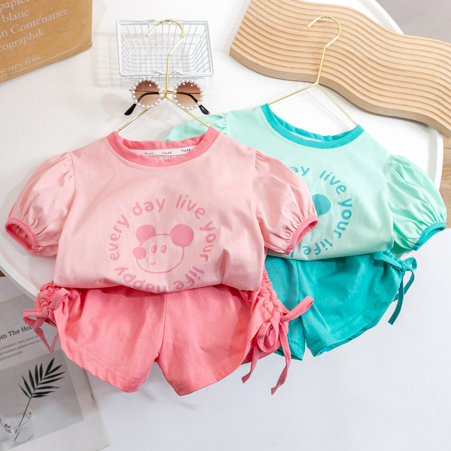 (재고정리) 여아 여름 세트 2025 캐주얼 패션 아동 한국 스타일 반팔 조임끈 반바지 투피스스토어 가기