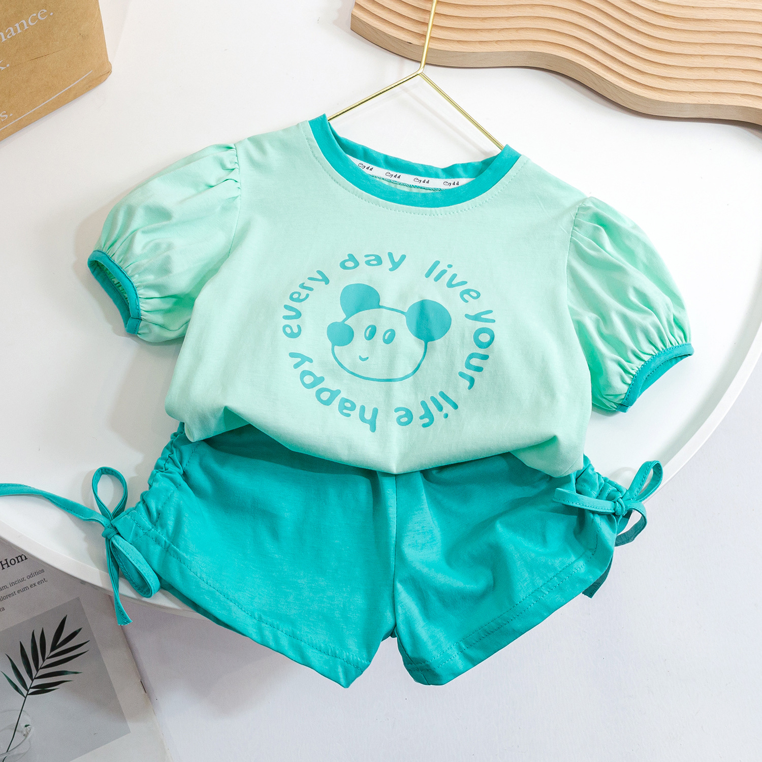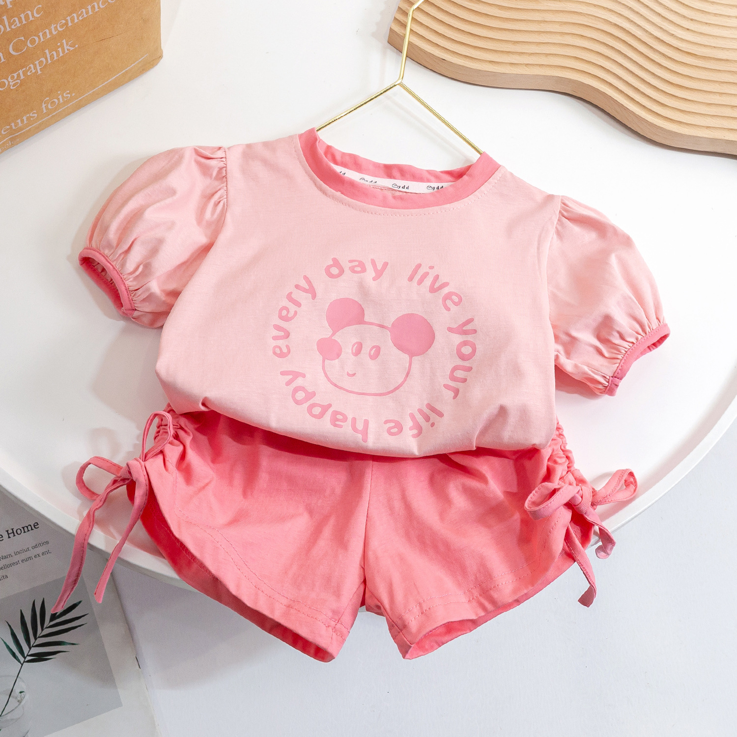 (재고정리) 여아 여름 세트 2025 캐주얼 패션 아동 한국 스타일 반팔 조임끈 반바지 투피스