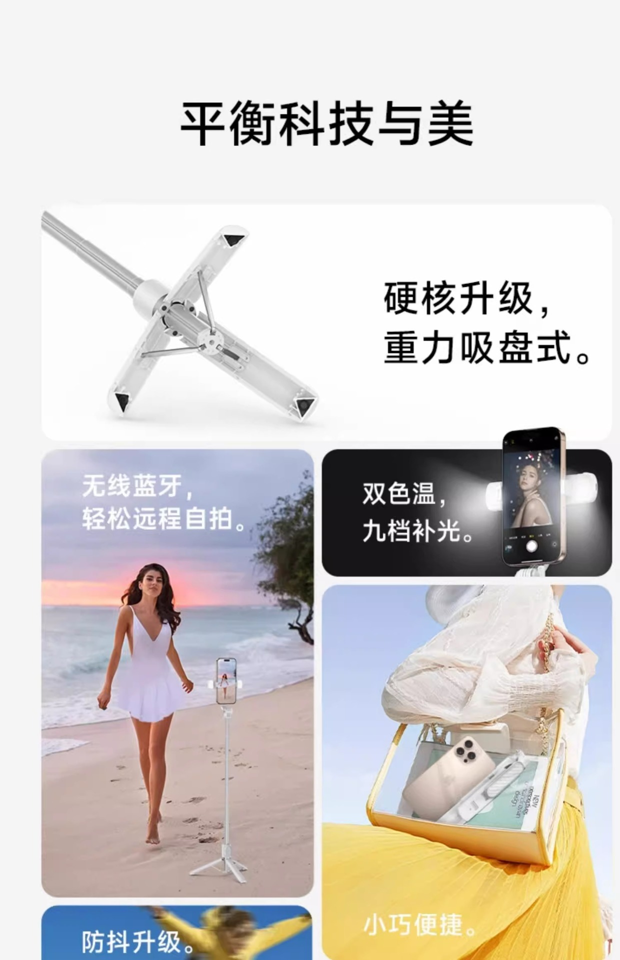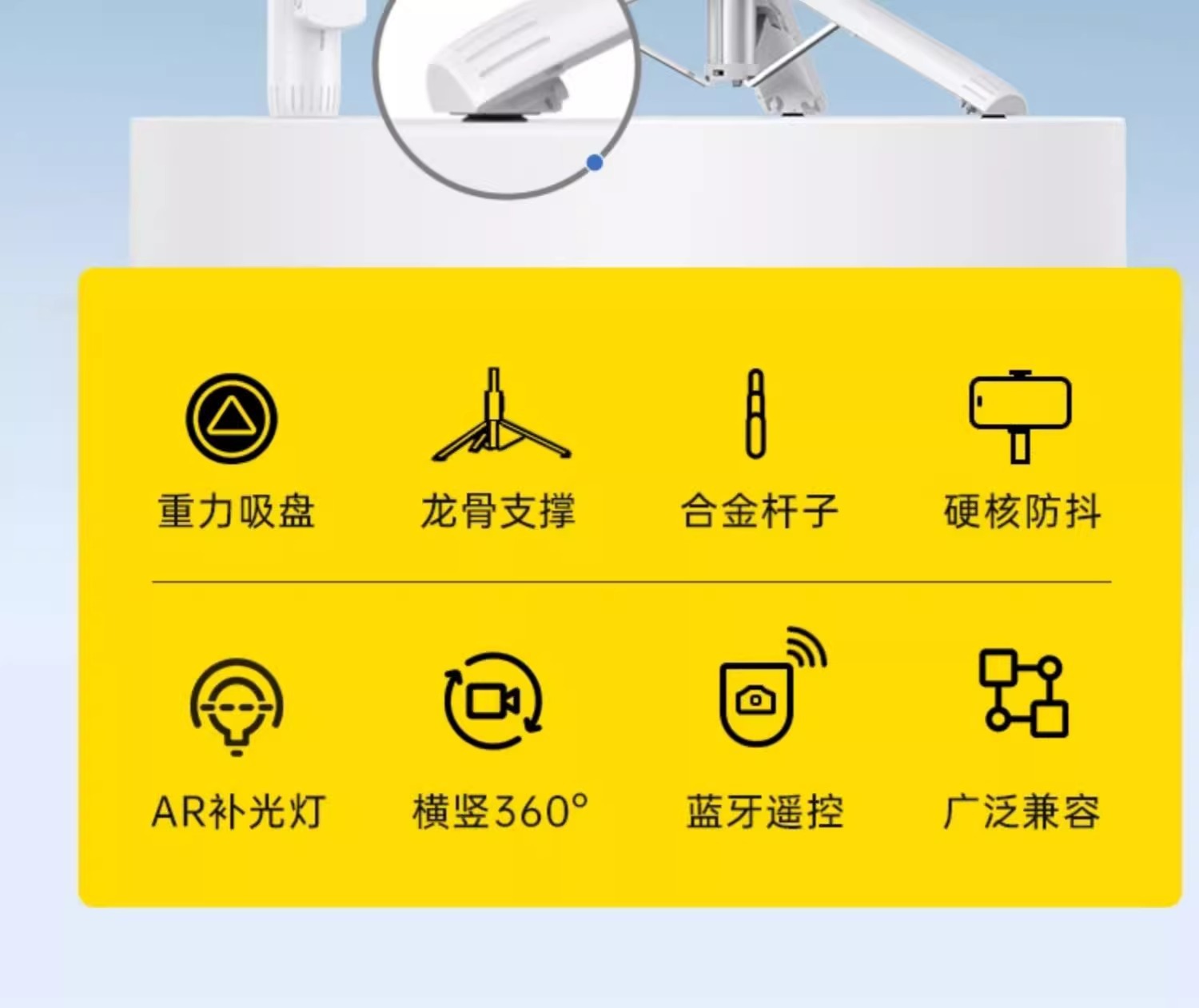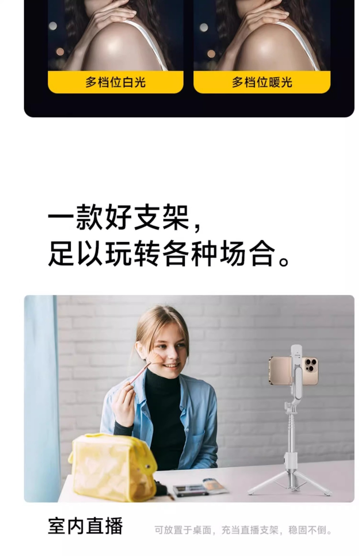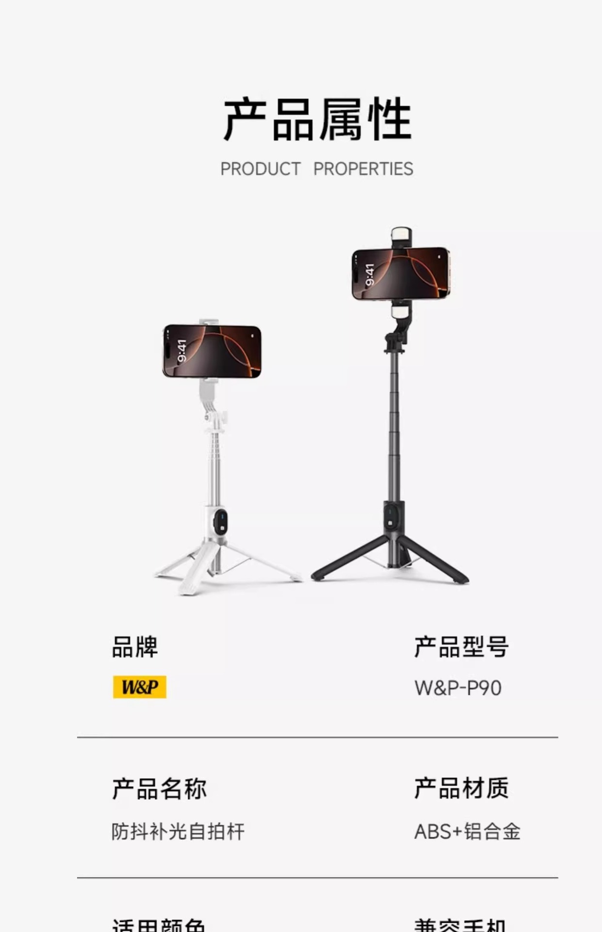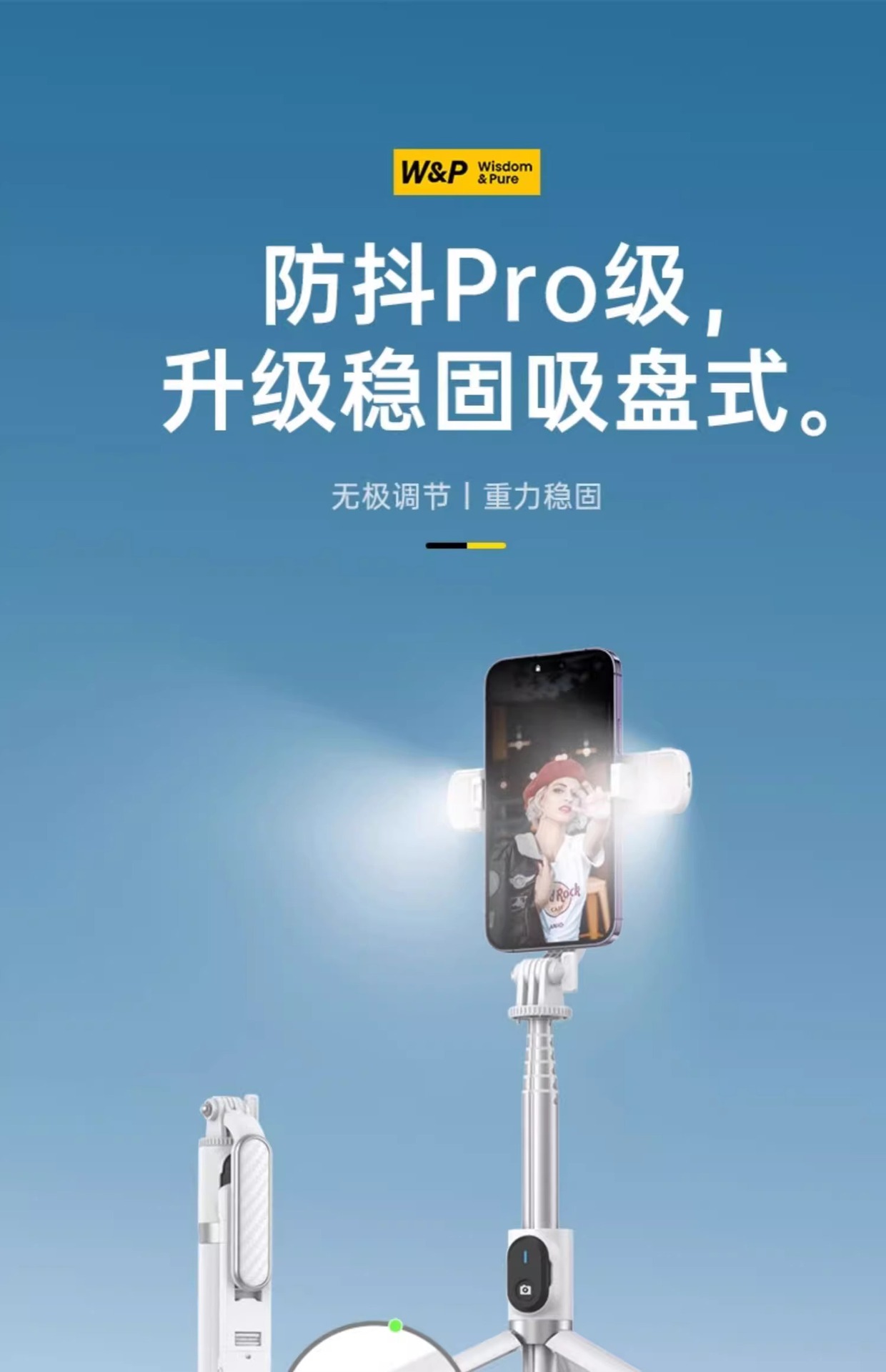 W&P 휴대 전화 셀카 스틱 삼각대 휴대용 손떨림 방지 미니 촬영 스탠드 범용 다기능 360 필 라이트