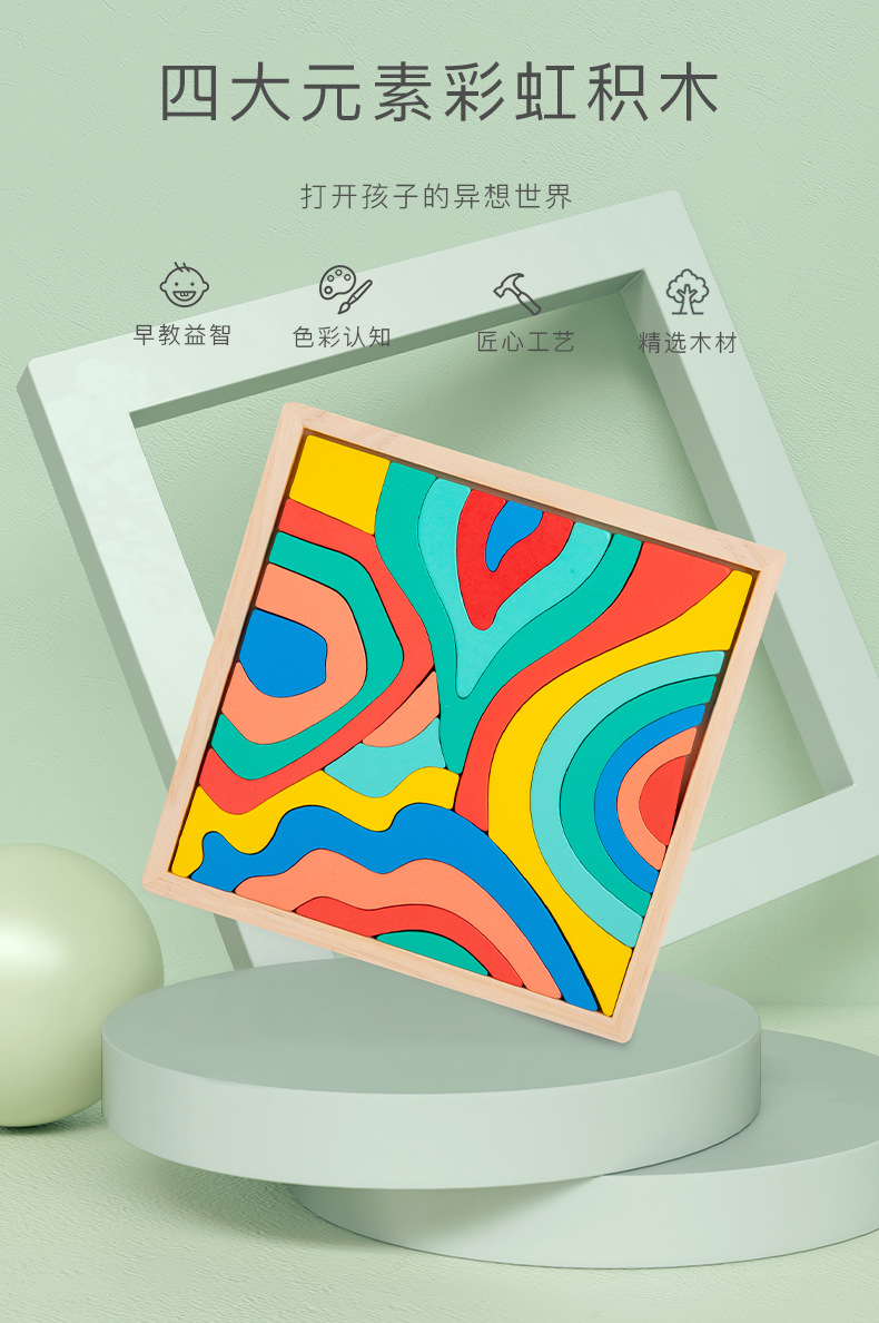 어린이 조기 교육 계몽주의 나무 조립 다채로운 빌딩 블록 무지개 4 요소 어린이 교육 빌딩 블록 장난감스토어 가기