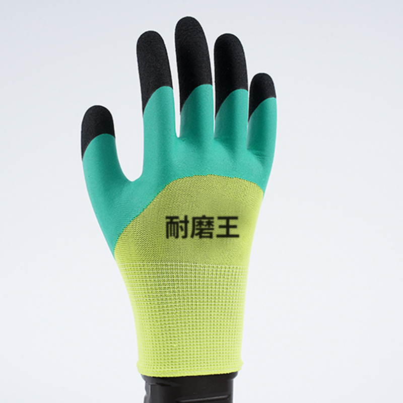 통기성 작업용 장갑 13겹, 형광 녹색, 강화된 손가락 보호, 내마모성, 미끄럼 방지 라텍스 코팅스토어 가기