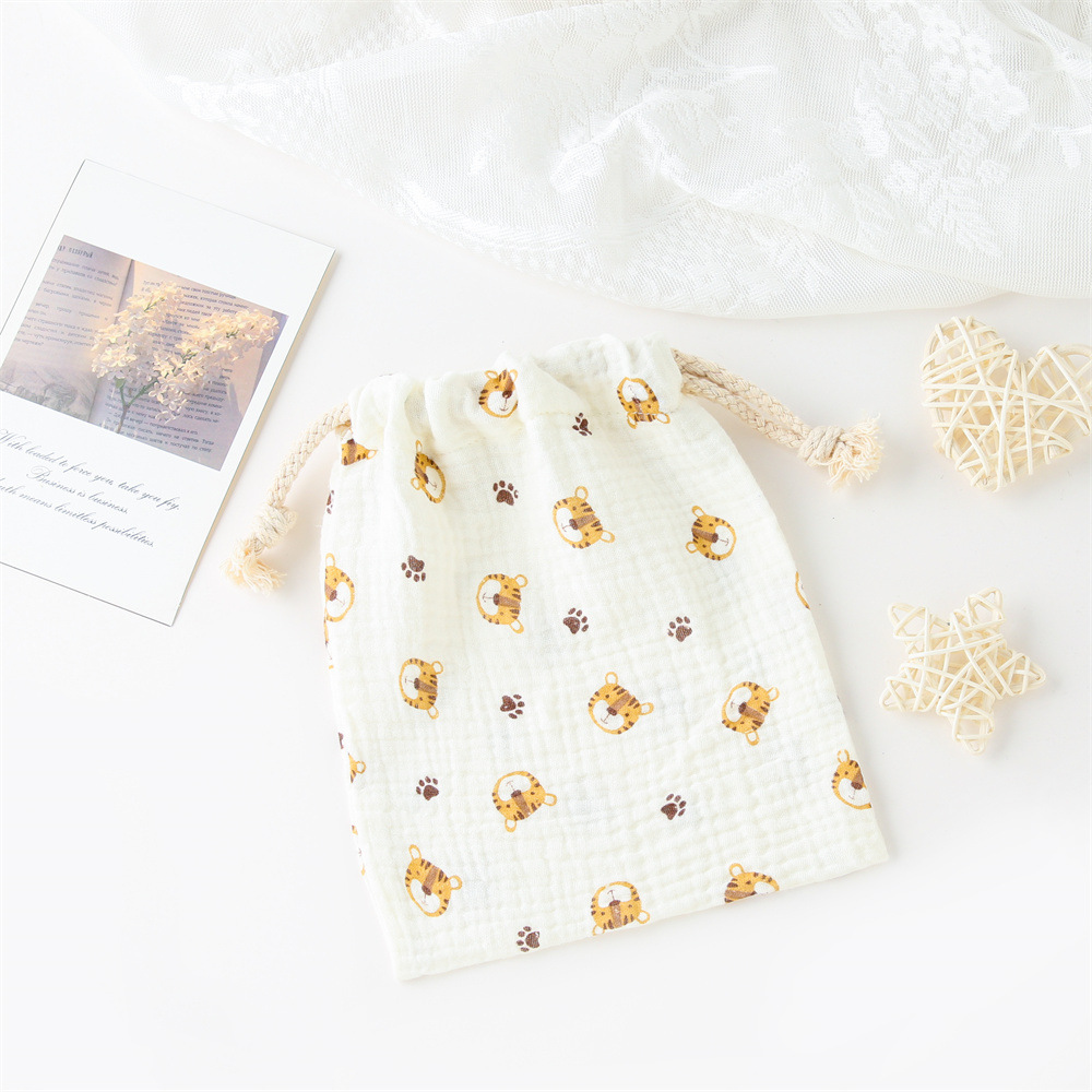 더블 레이어 로프 포켓, 순면 프린트 크레이프 아기 침타월, 진정 타월 보관 가방, 걸이형 가방, 걸이 가능