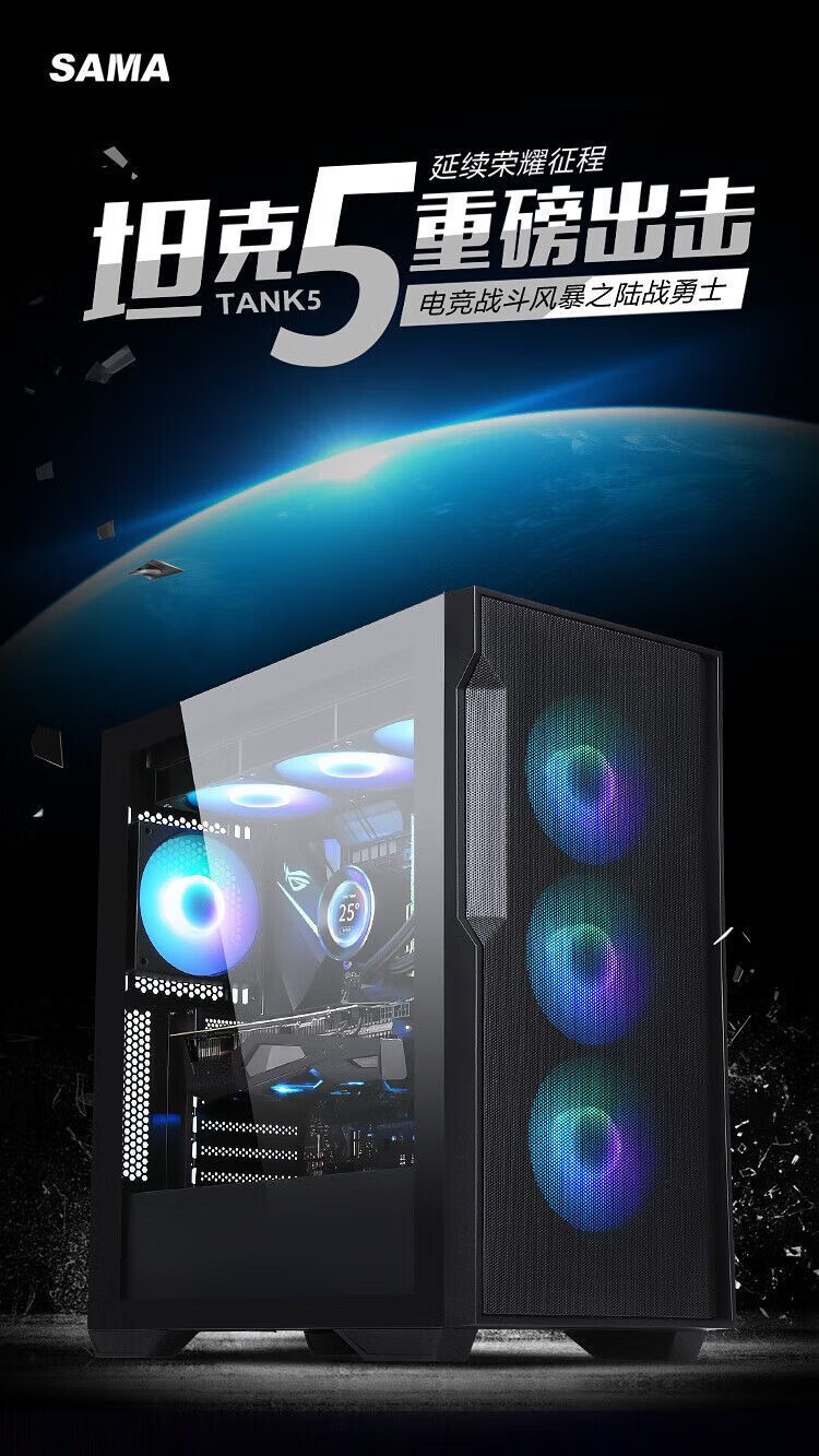 Xianma 케이스, 탱크형 데스크탑 게이밍 케이스에 적합하며, ATX 마더보드/360 수냉/3개의 그래픽 카드를 지원합니다.스토어 가기