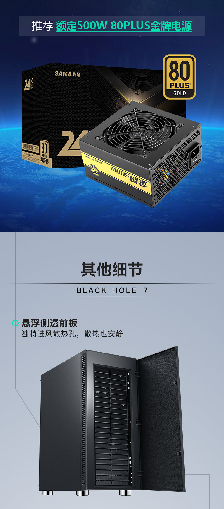 ATX Xianma SAMA Black Hole 7 미드 타워 액티브 사일런트 데스크탑 컴퓨터 메인 섀시 냉각에 적합스토어 가기