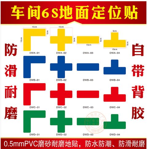 공장 창고 5S6S 바닥 미끄럼 방지 내마모성 위치 표시 스티커 십자형 T형 L형 두꺼운 위치 표시판 제조업체