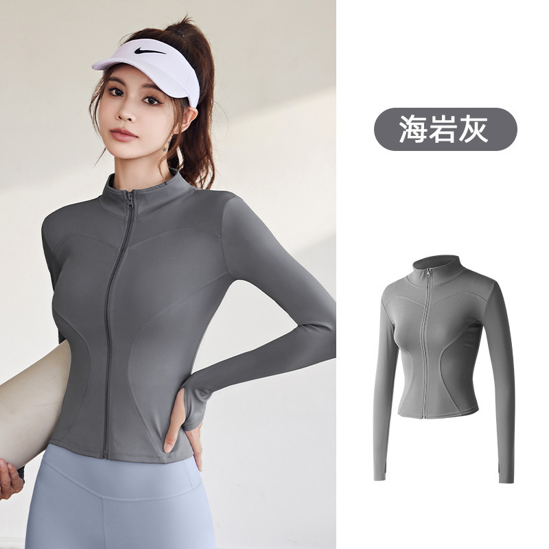 요가 슬림 룩 스키니 세로 칼라 지퍼 카디건 긴 소매 피트니스 의류 전문 러닝 피트니스 스포츠 재킷 최고 여성