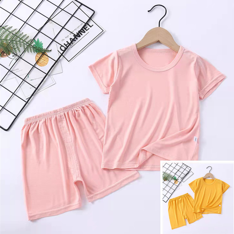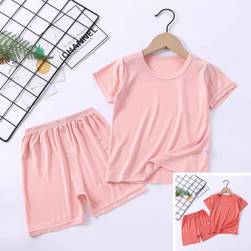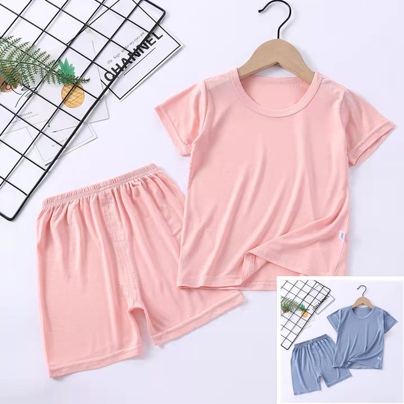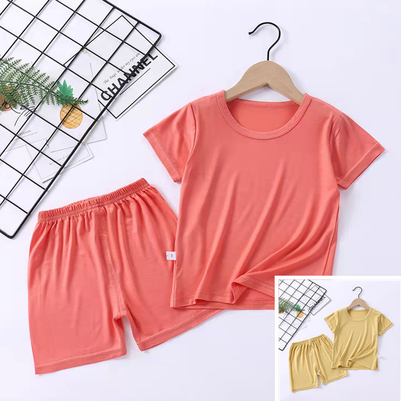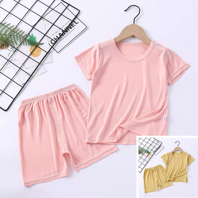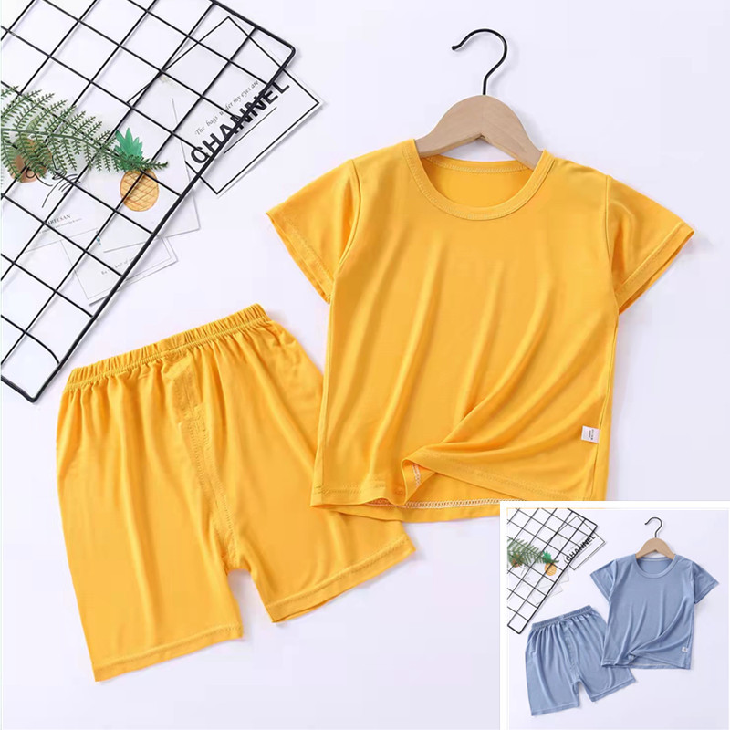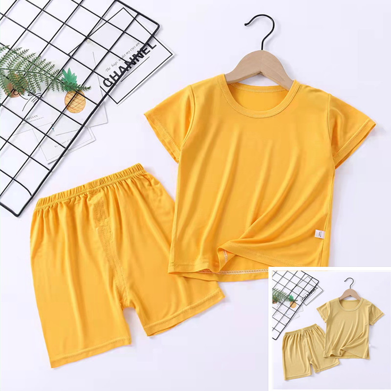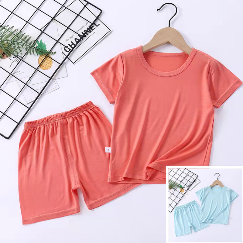아동용 모달 2피스 반팔 세트, 남아 및 여아 잠옷, 하이웨이스트 배 보호 홈웨어 반바지스토어 가기