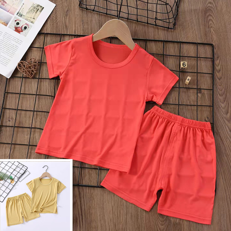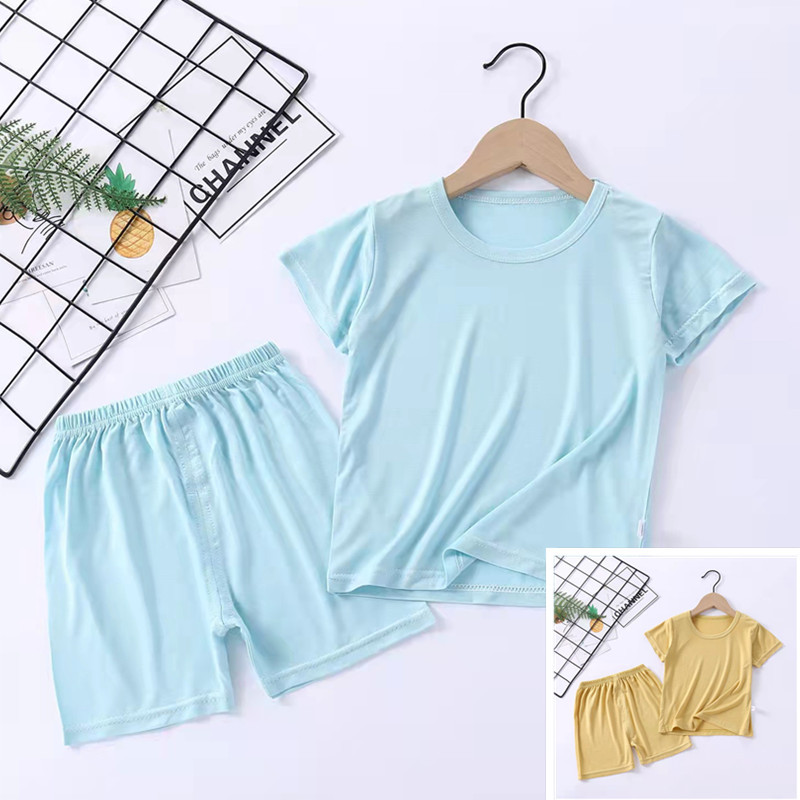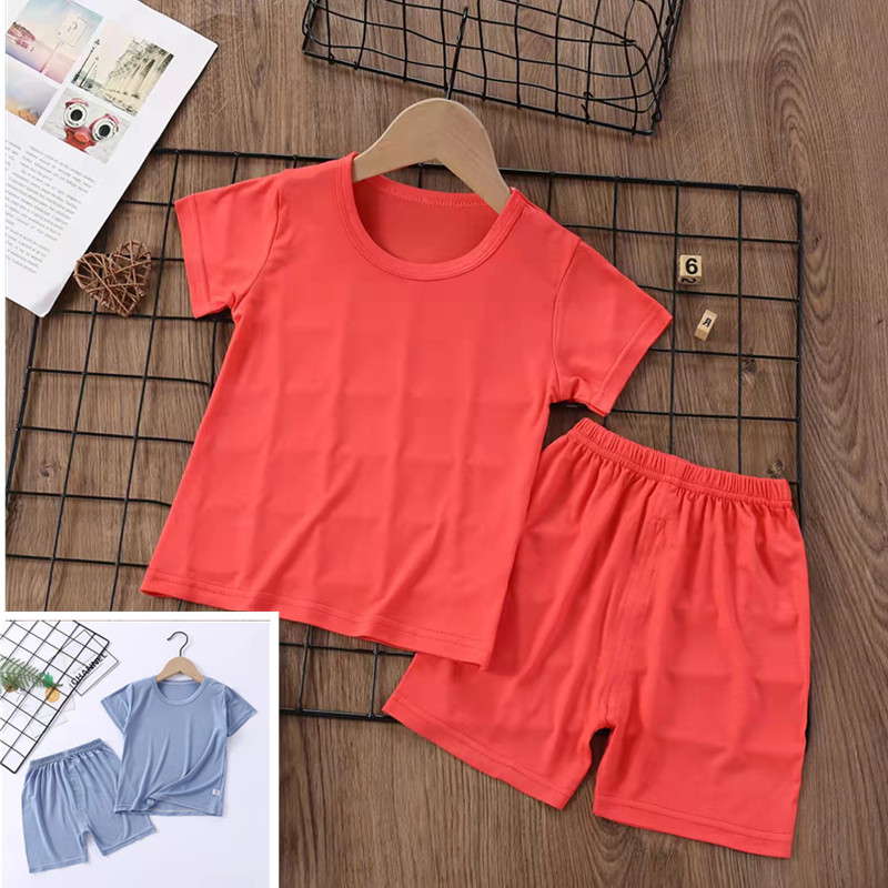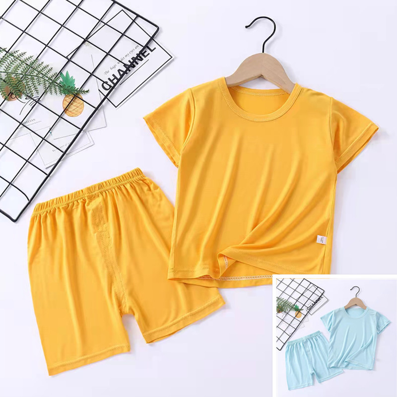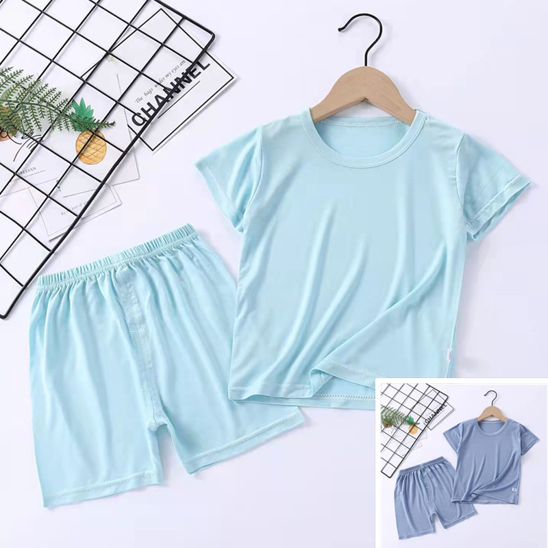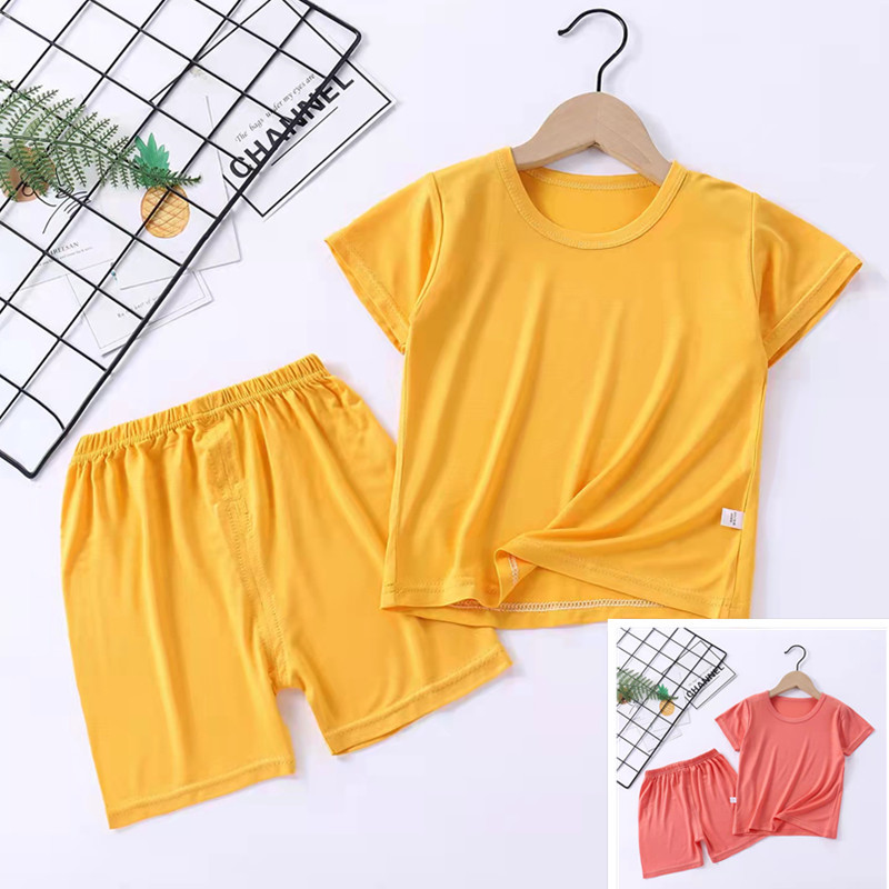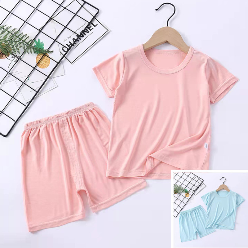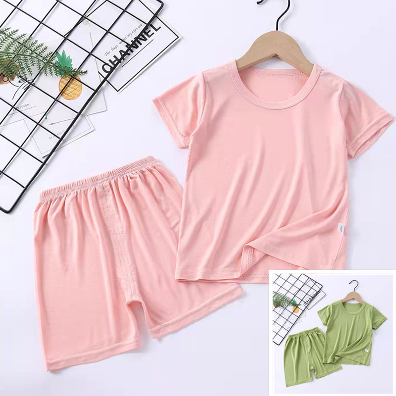 아동용 모달 2피스 반팔 세트, 남아 및 여아 잠옷, 하이웨이스트 배 보호 홈웨어 반바지스토어 가기
