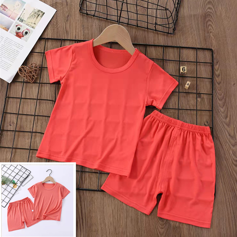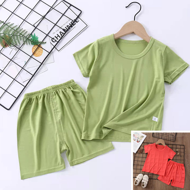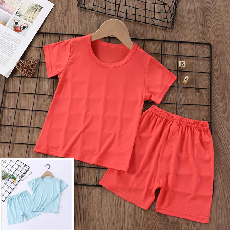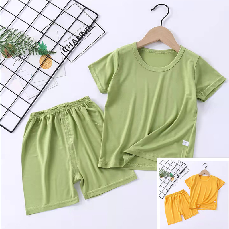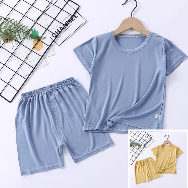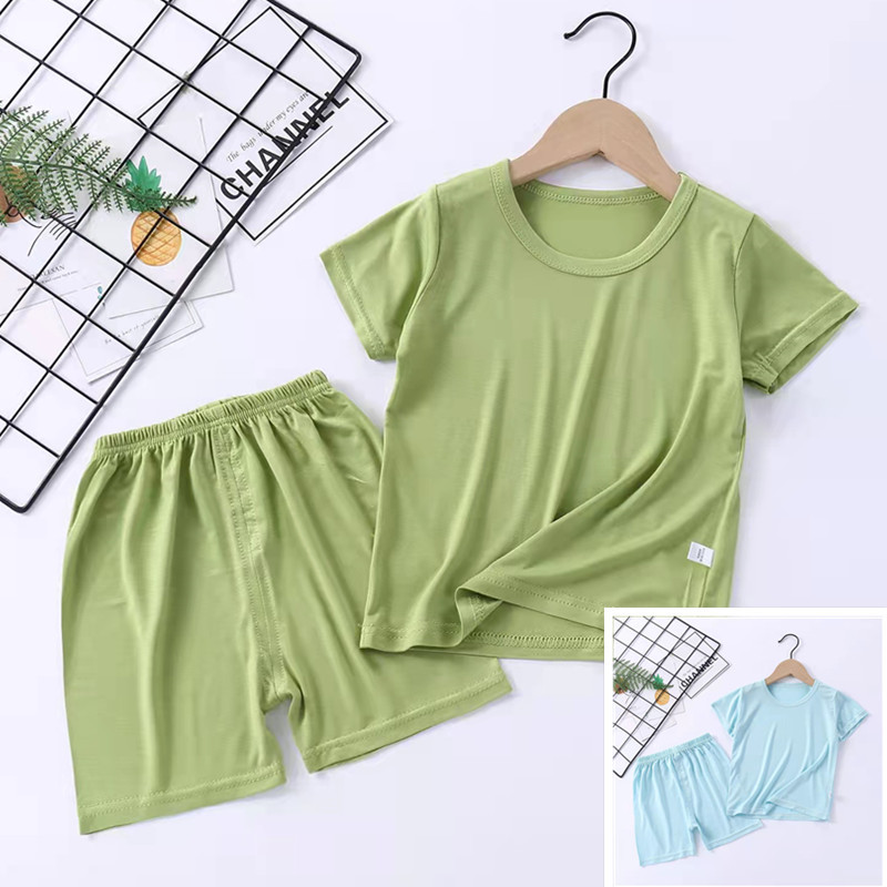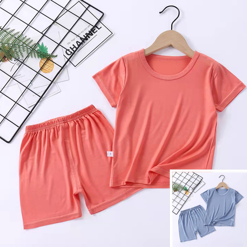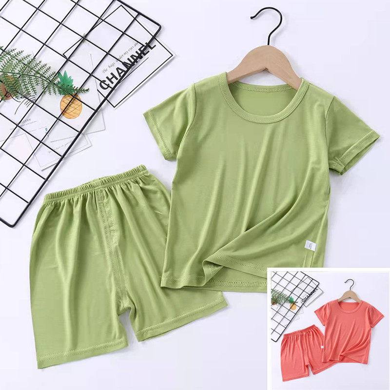 아동용 모달 2피스 반팔 세트, 남아 및 여아 잠옷, 하이웨이스트 배 보호 홈웨어 반바지