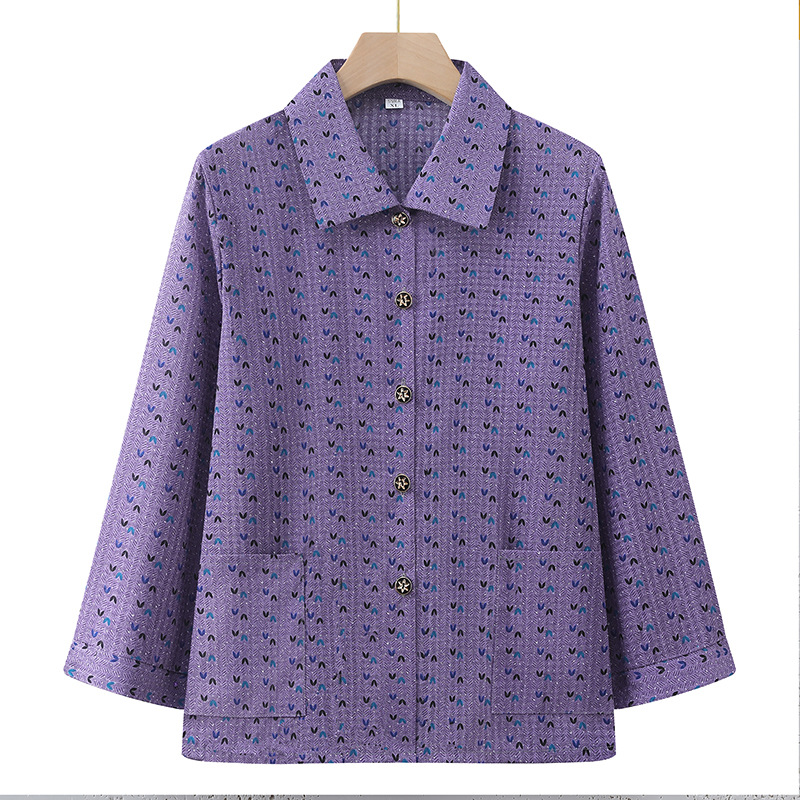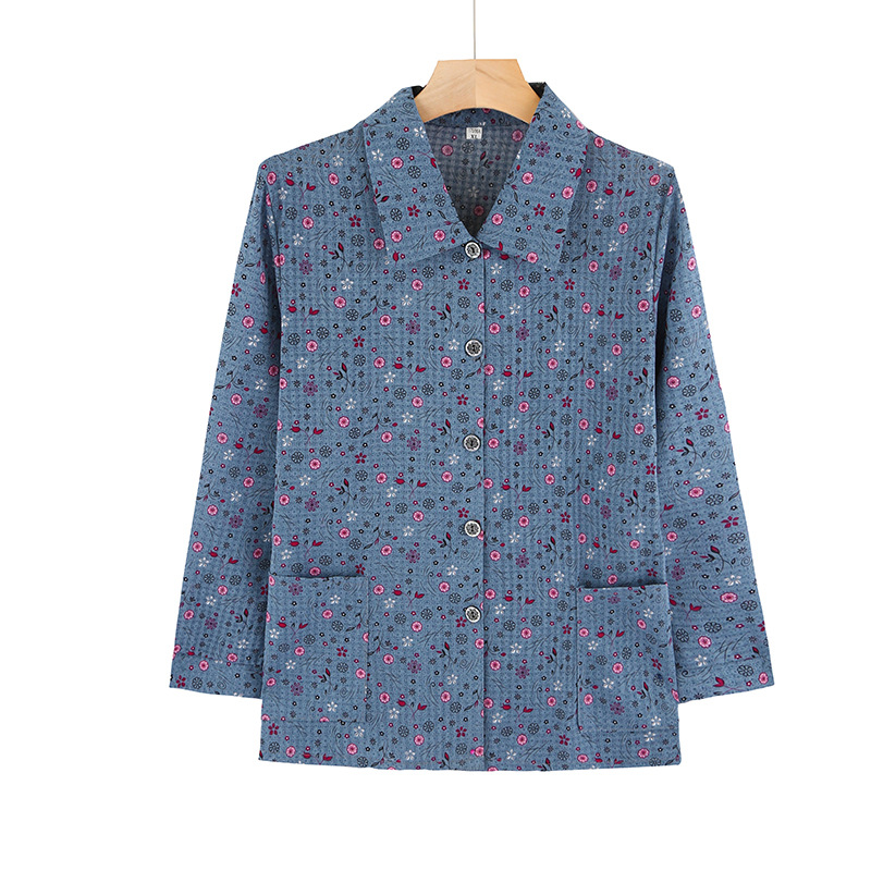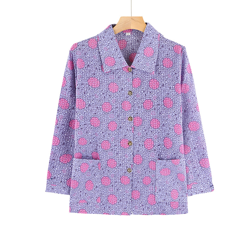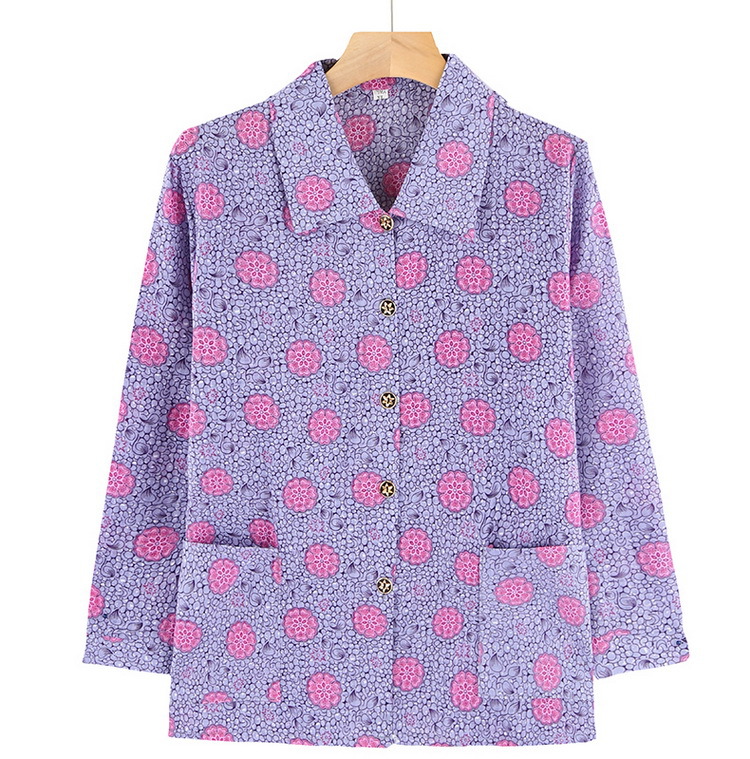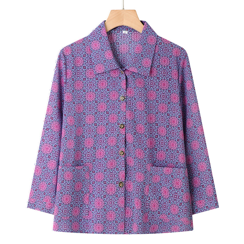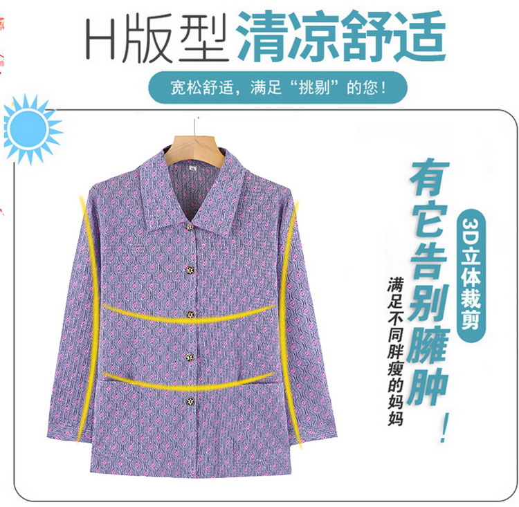 할머니 원피스 여름 긴팔 쉬폰 셔츠 70 세 어머니 옷깃 셔츠 노인 여성을위한 올드 레이디 가디건 의류
