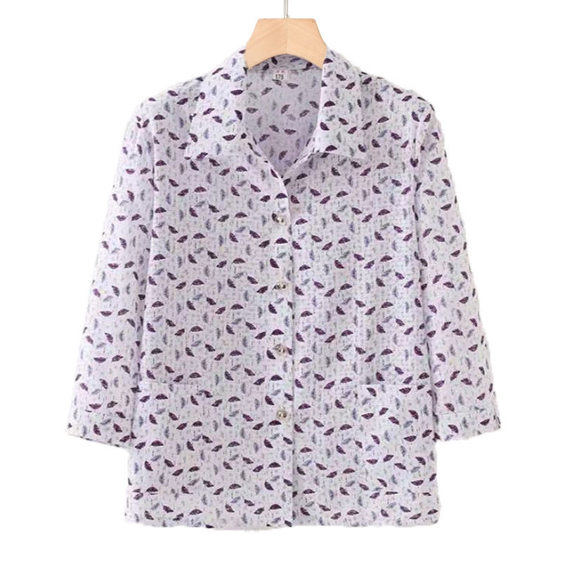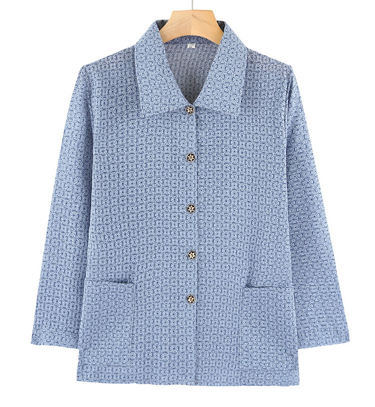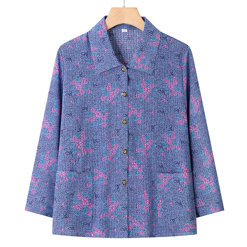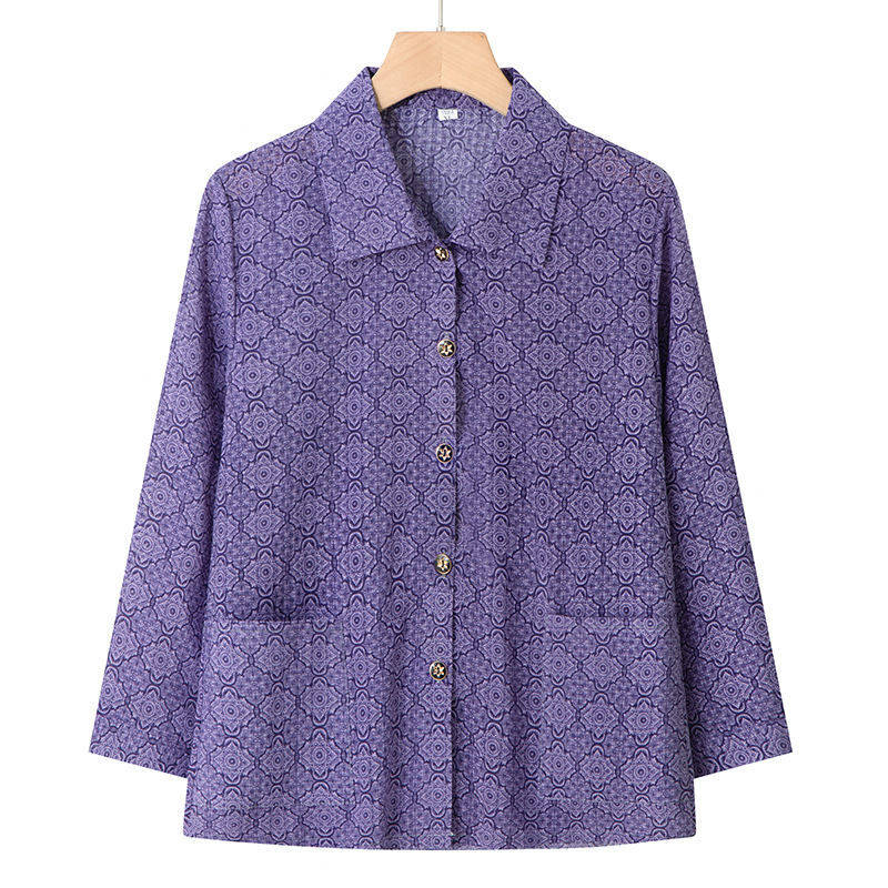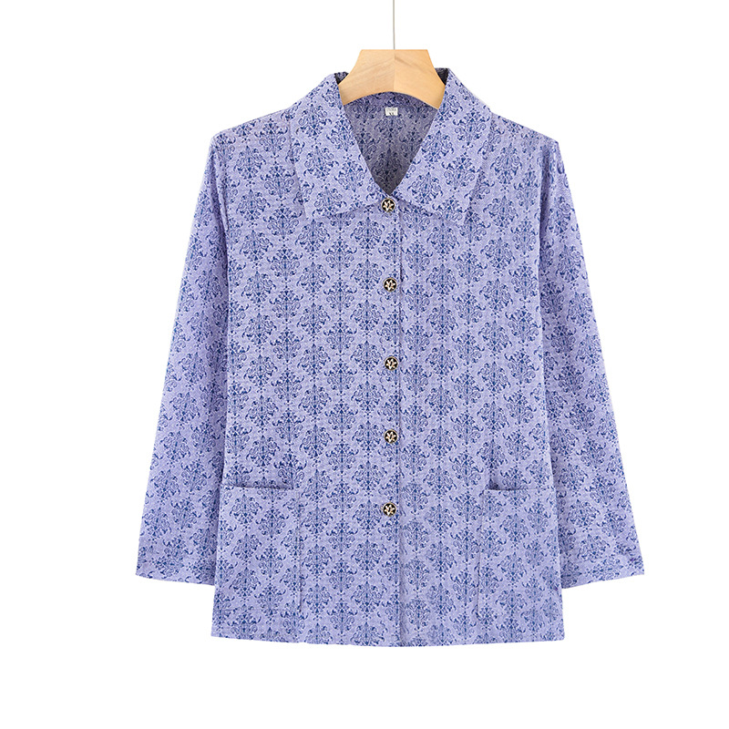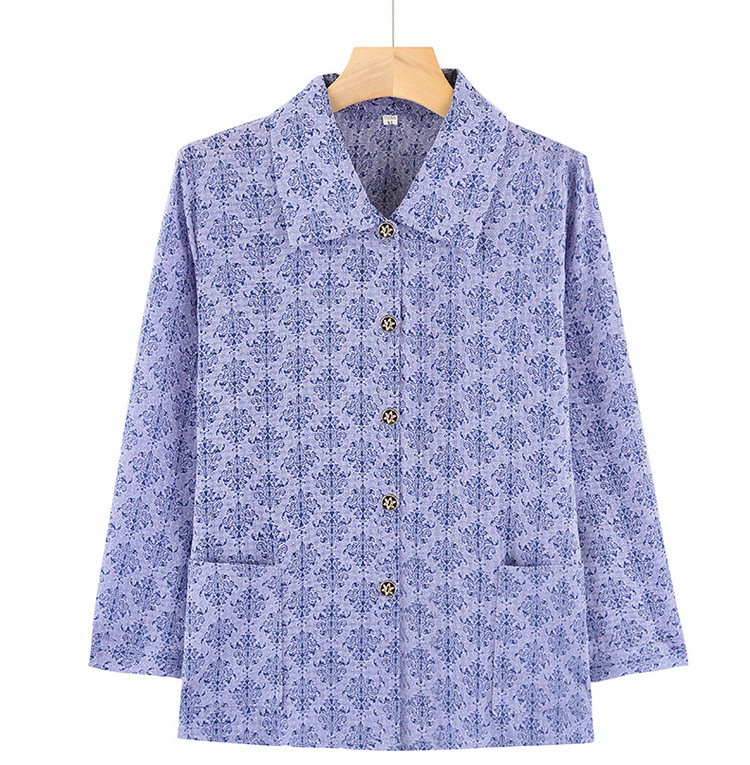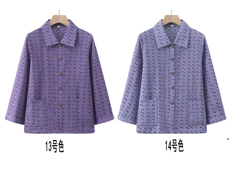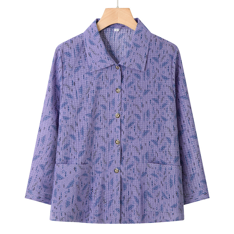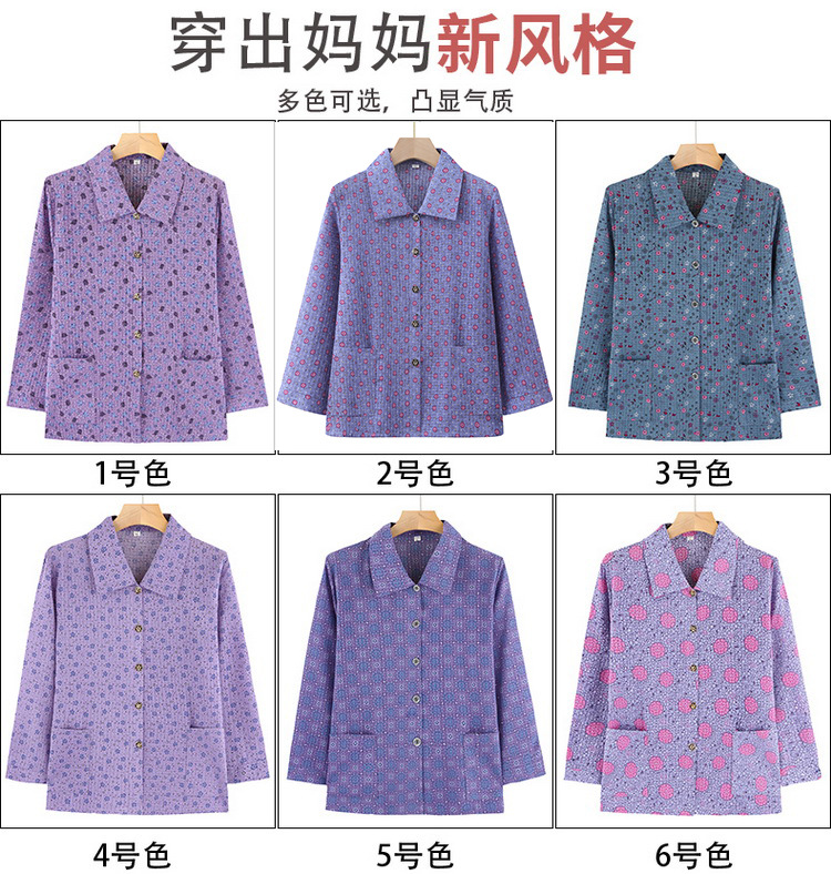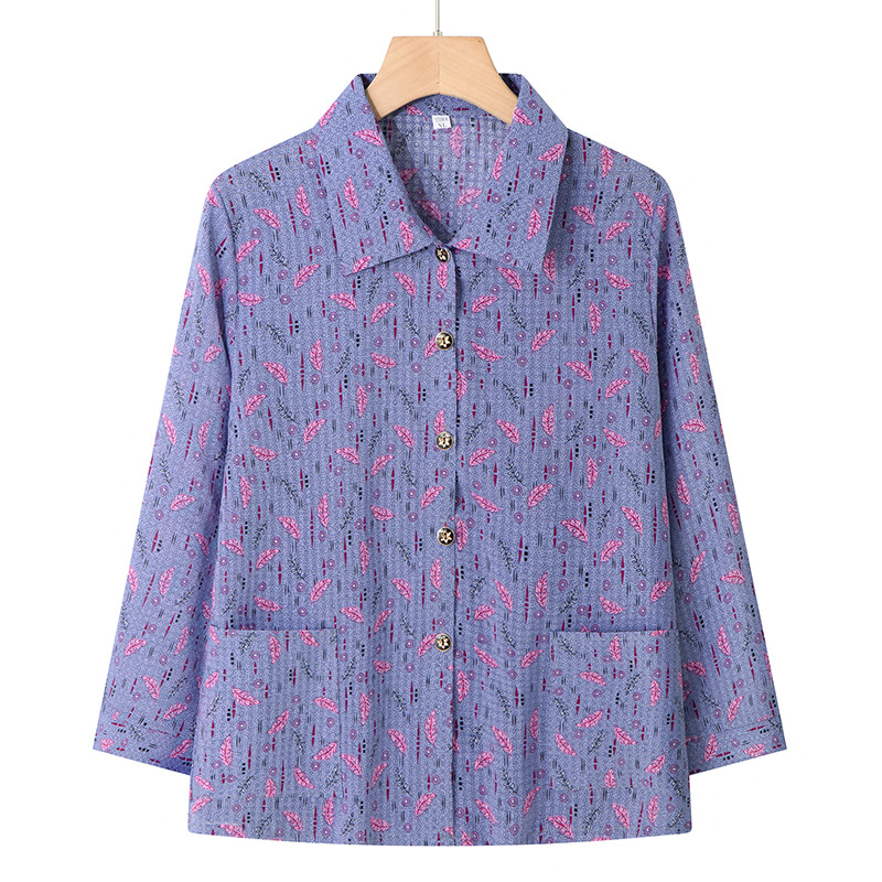 할머니 원피스 여름 긴팔 쉬폰 셔츠 70 세 어머니 옷깃 셔츠 노인 여성을위한 올드 레이디 가디건 의류스토어 가기