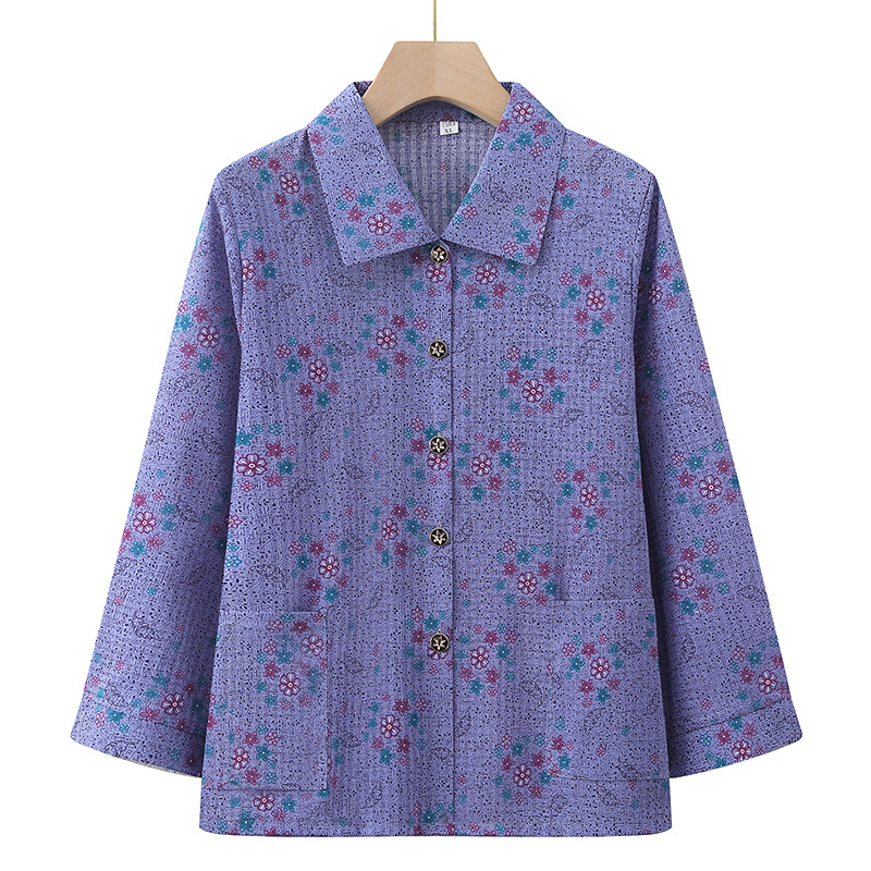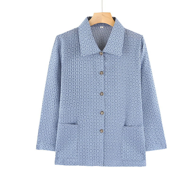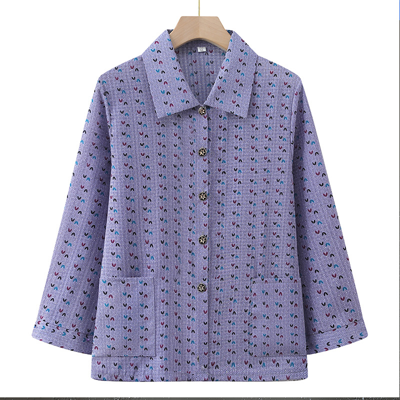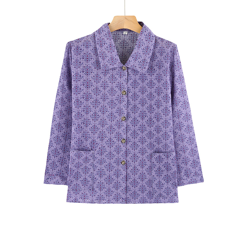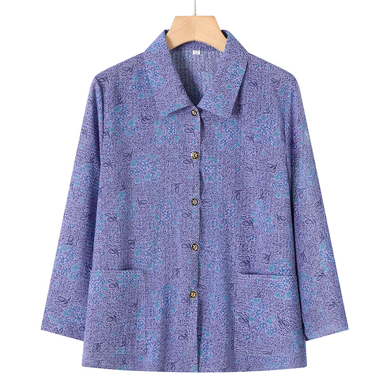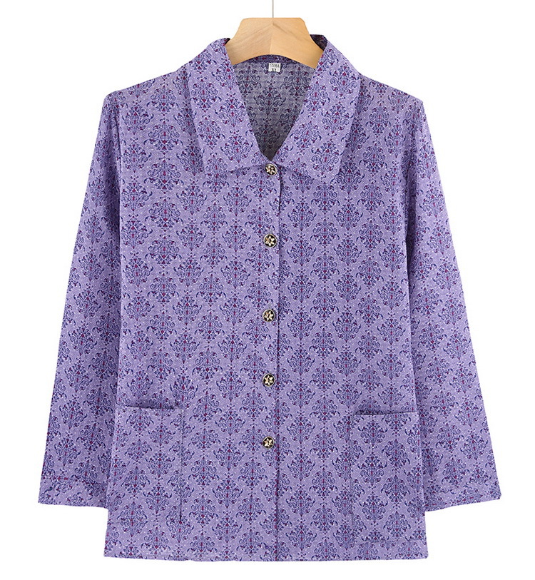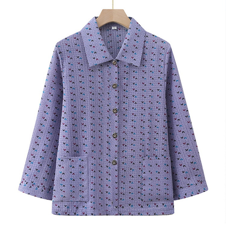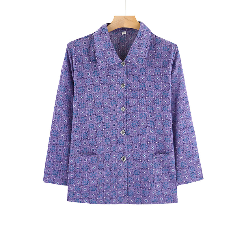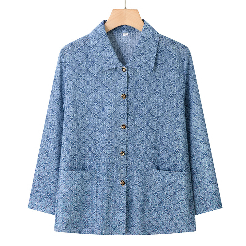 할머니 원피스 여름 긴팔 쉬폰 셔츠 70 세 어머니 옷깃 셔츠 노인 여성을위한 올드 레이디 가디건 의류스토어 가기
