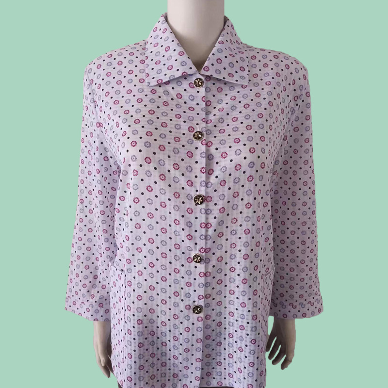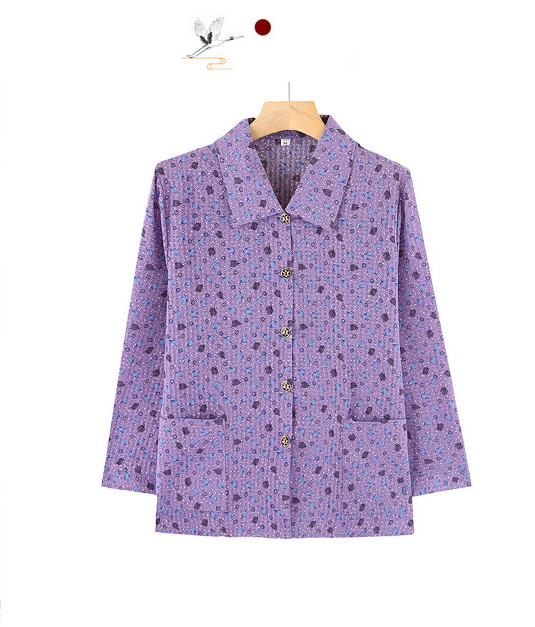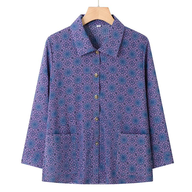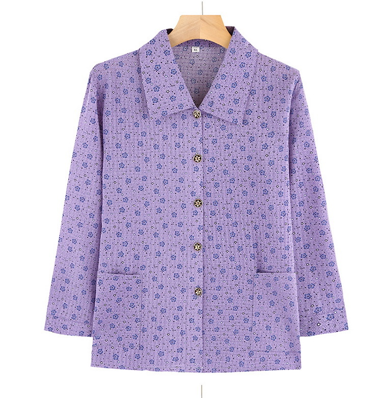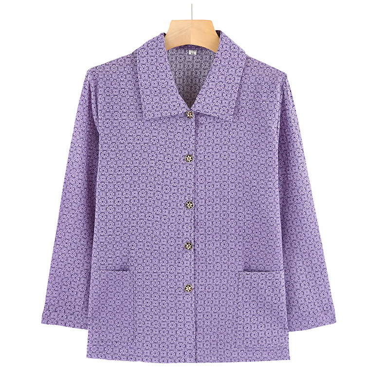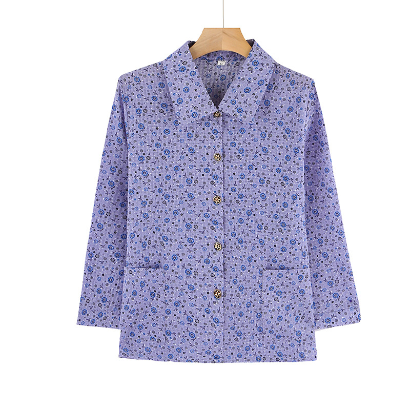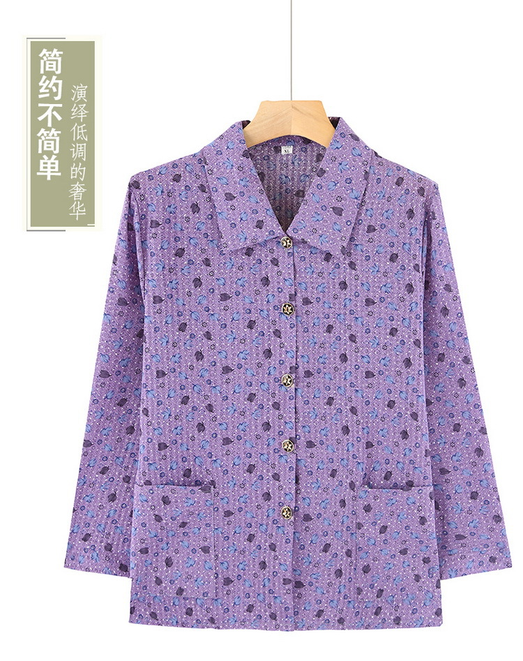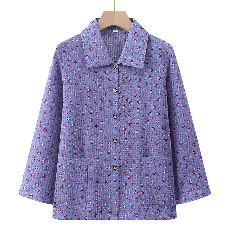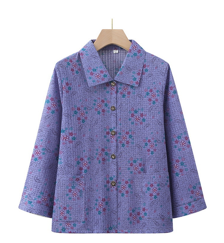할머니 원피스 여름 긴팔 쉬폰 셔츠 70 세 어머니 옷깃 셔츠 노인 여성을위한 올드 레이디 가디건 의류스토어 가기