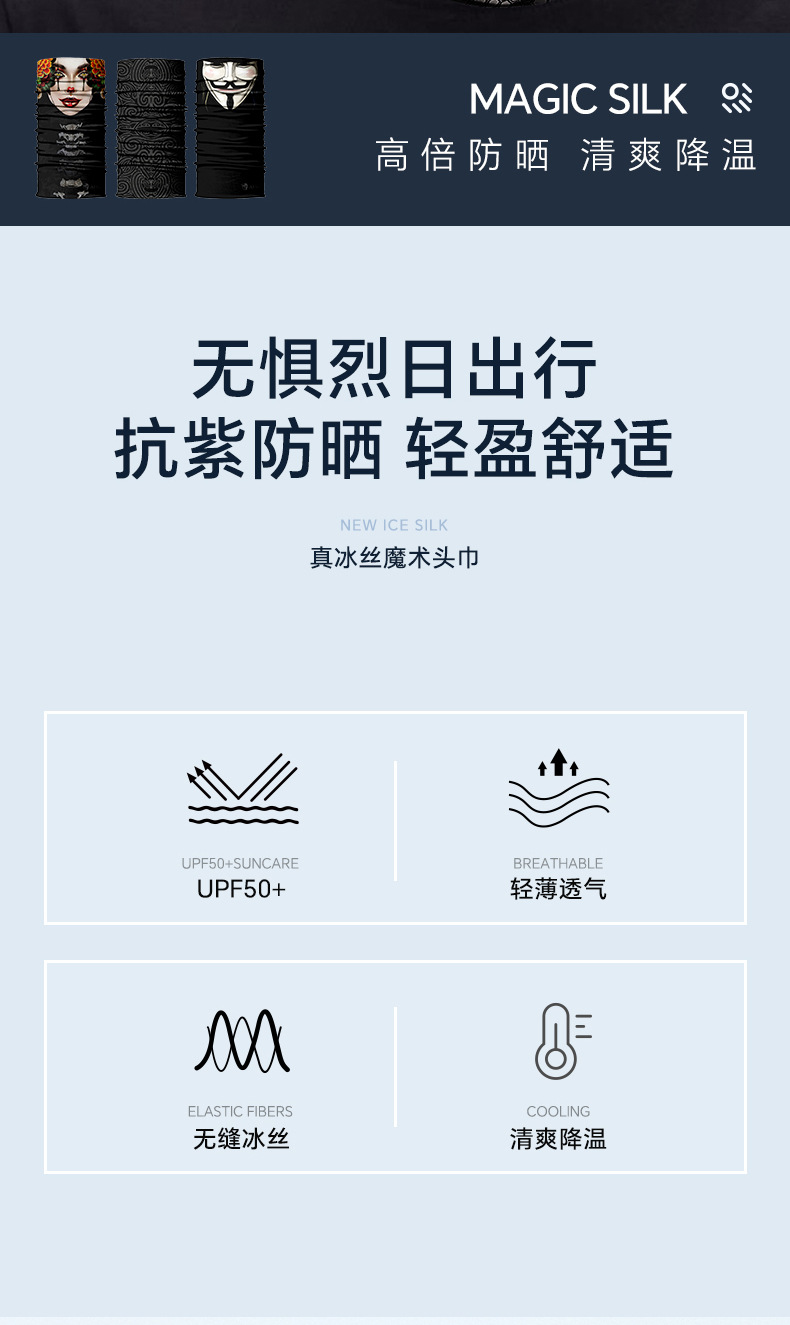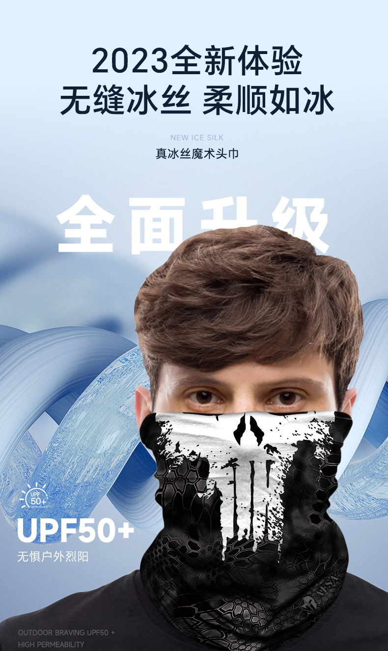 여름 오토바이 라이딩 마스크 야외 선 스크린 아이스 실크 원활한 매직 헤드 스카프 광대 스타 독 남녀 스카프 세트