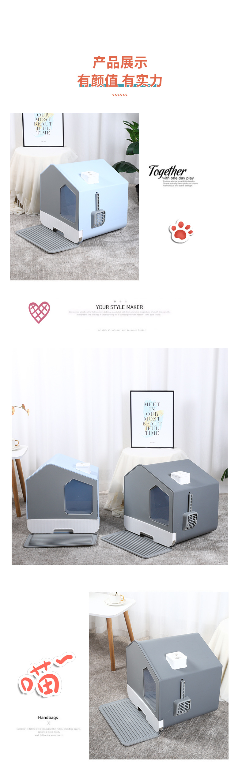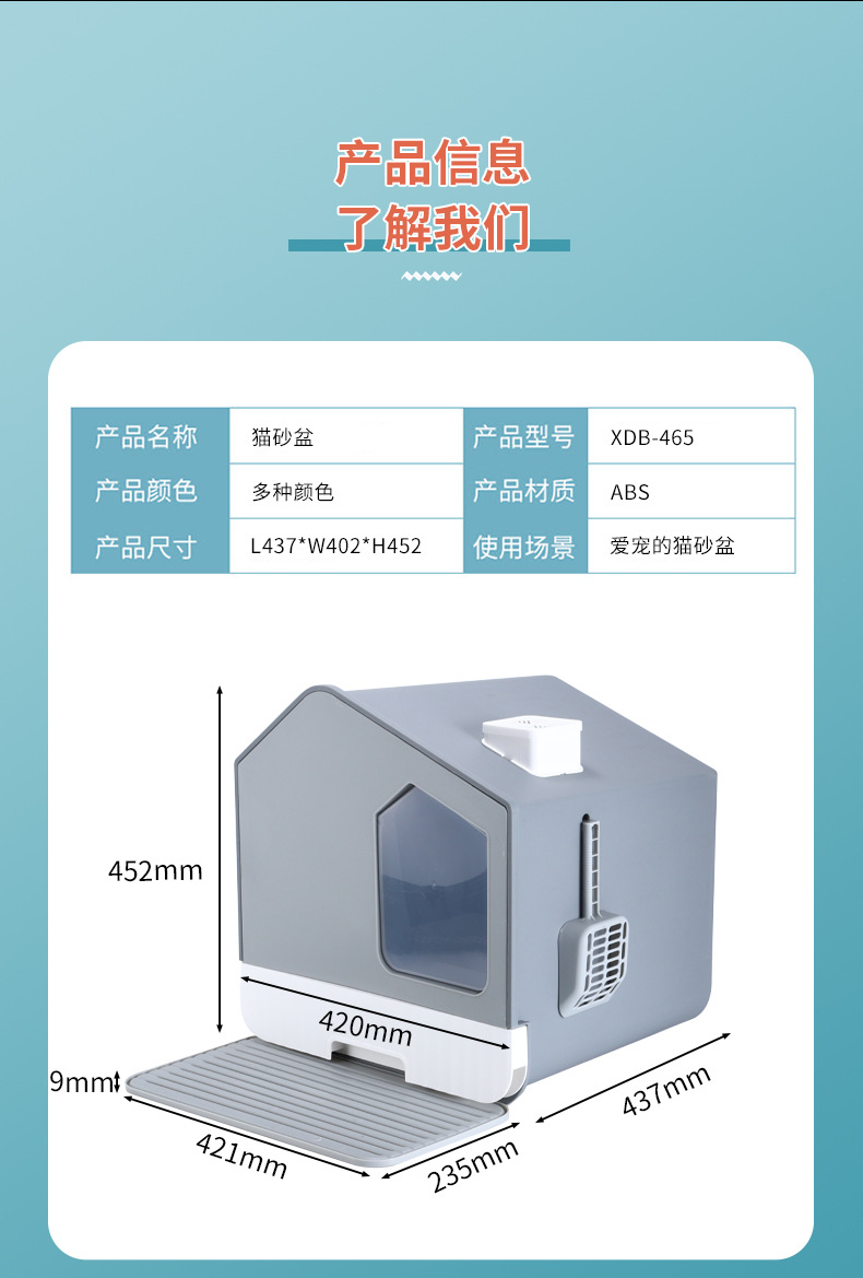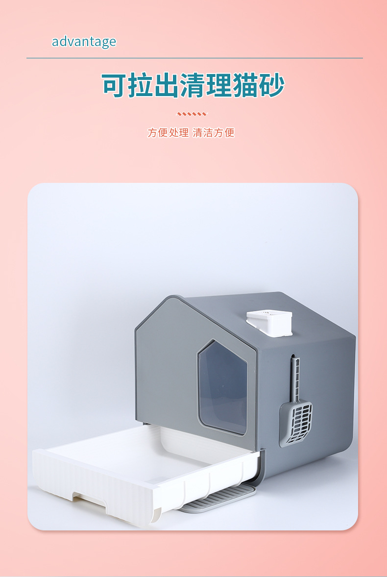 플라스틱 넓은 공간 고양이 쓰레기통 양방향 이동식 도어 냄새를 차단하는 청소 편리한 PP 고양이 쓰레기통 애완 동물 용품스토어 가기