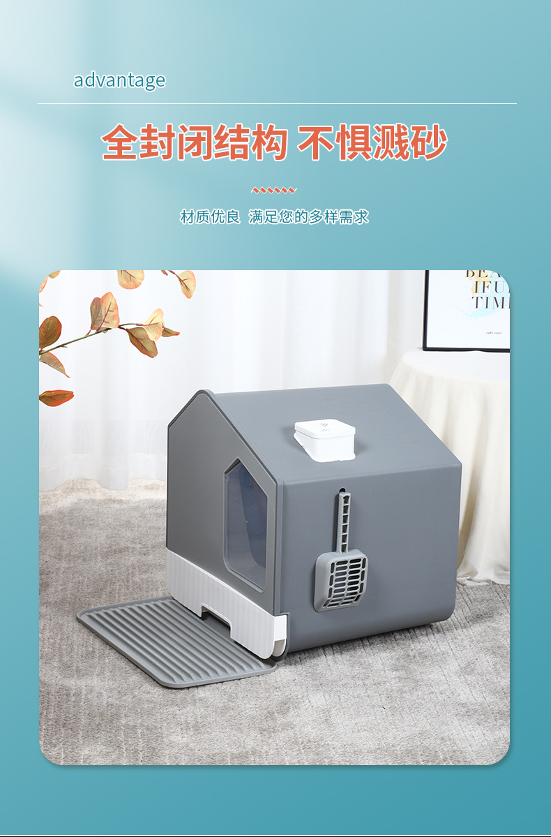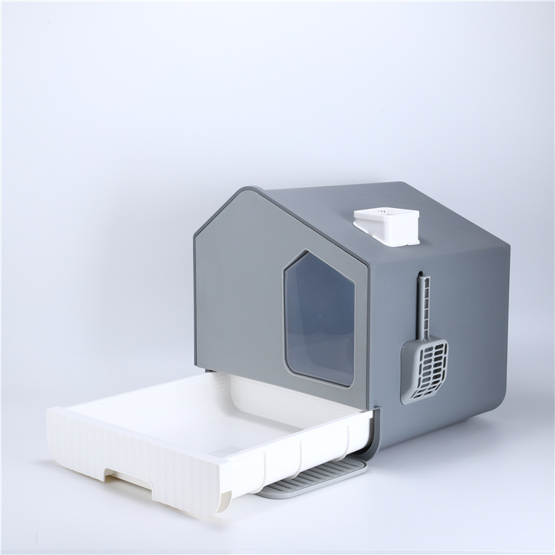 플라스틱 넓은 공간 고양이 쓰레기통 양방향 이동식 도어 냄새를 차단하는 청소 편리한 PP 고양이 쓰레기통 애완 동물 용품