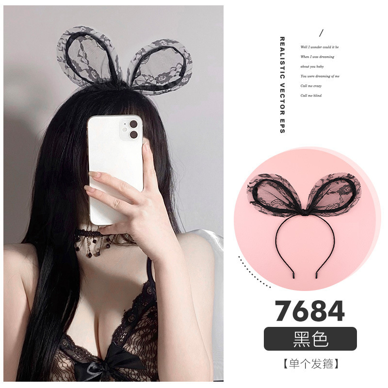 • 7684 블랙 [토끼 귀 레이스 헤어밴드]]