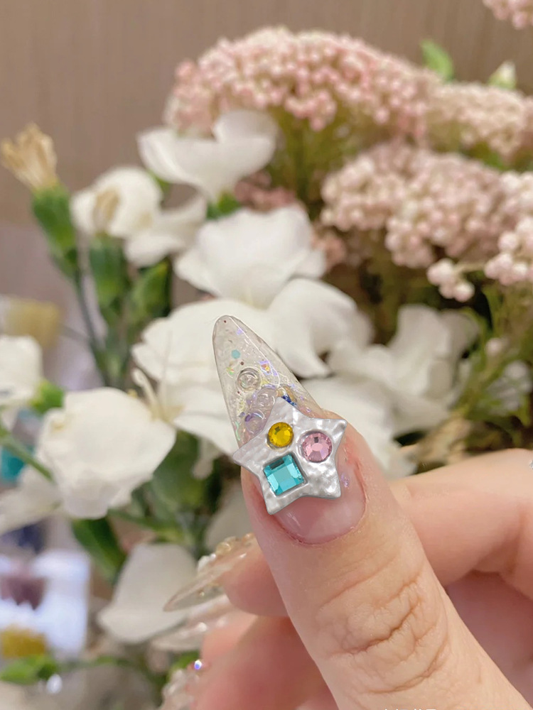인터넷 연예인 폭발 슈퍼 플래시 하이 레벨 바로크 러브 스타 지르콘 네일 아트 다이아몬드 합금 보석 네일 액세서리