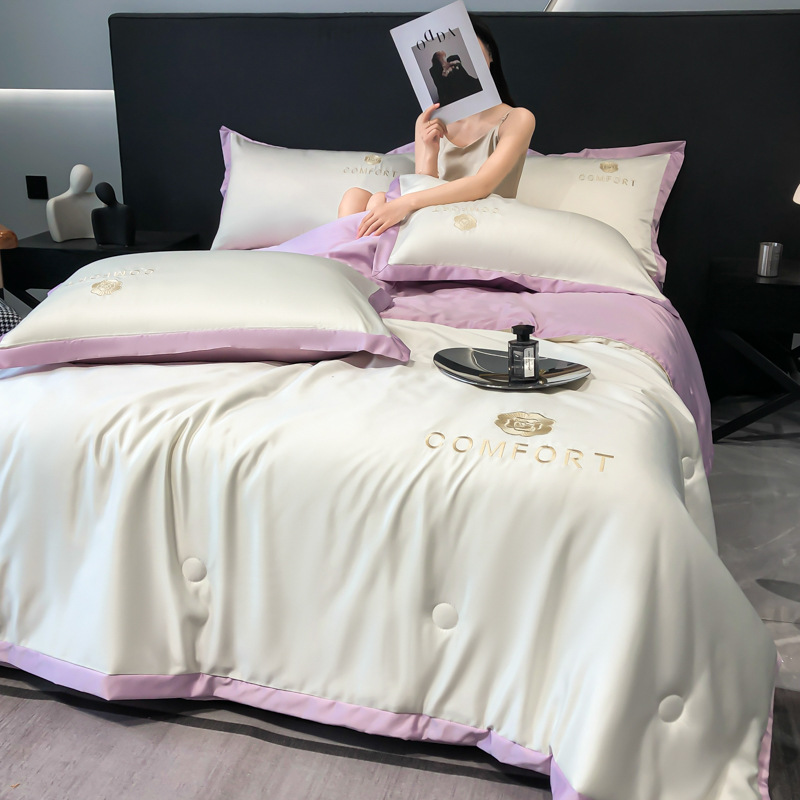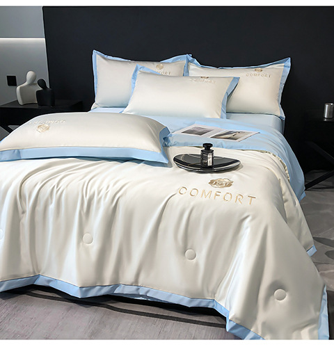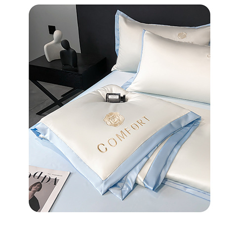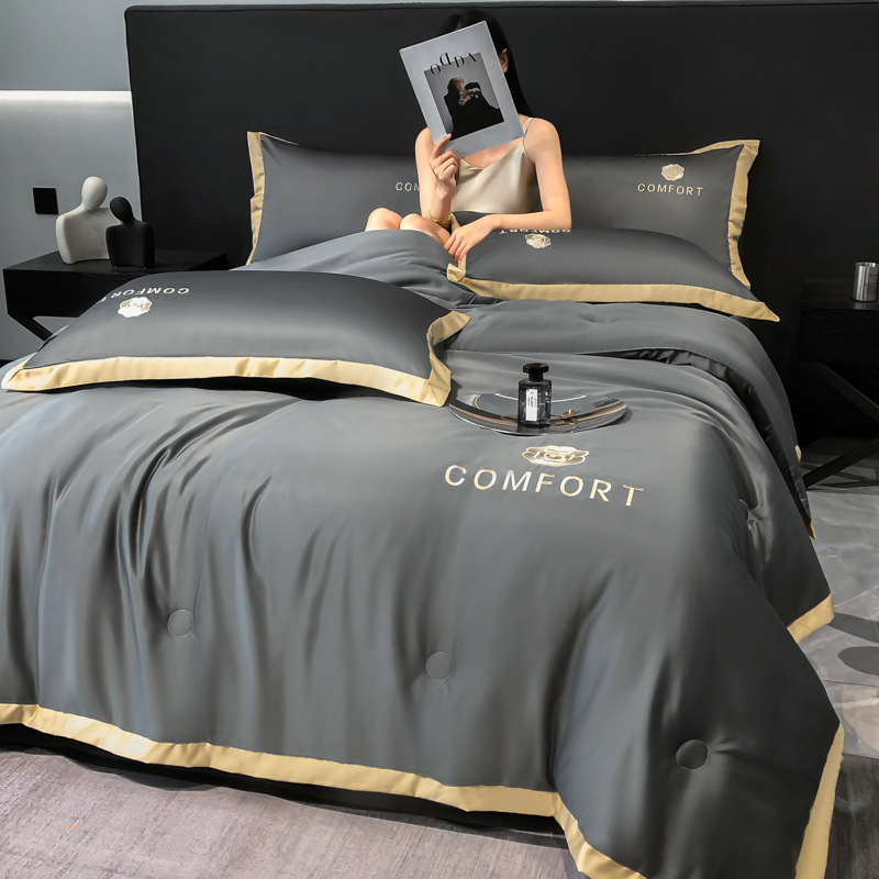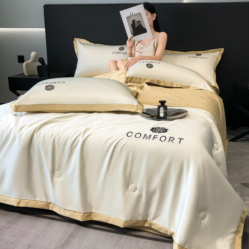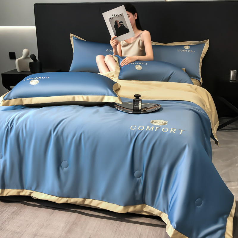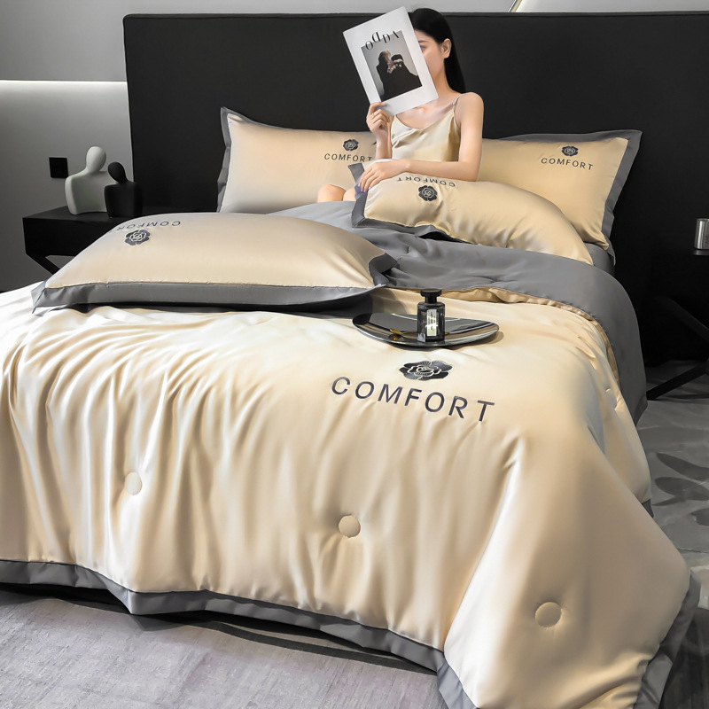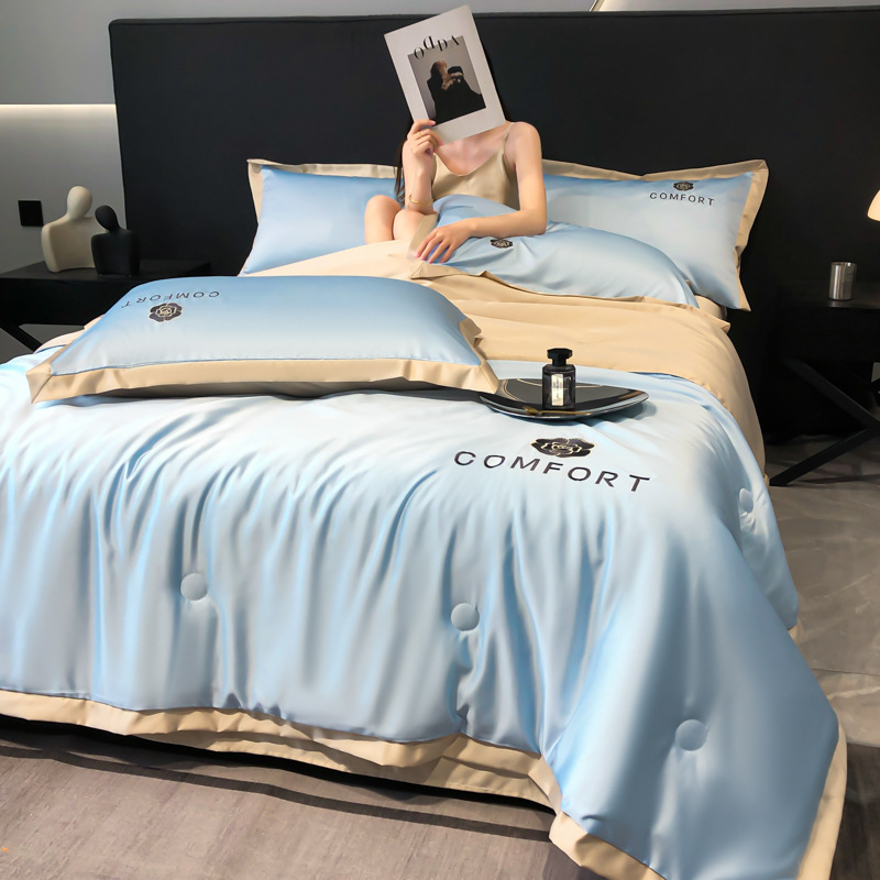 아이스 실크 여름 이불 에어컨 이불 여름 텐셀 여름 쿨 이불 4 종 세트 여름 기계 빨 빛 럭셔리 얇은 이불 도매