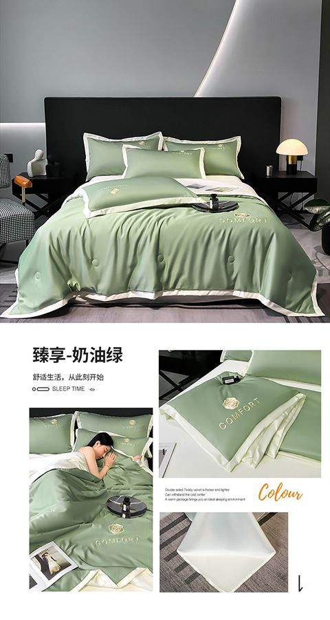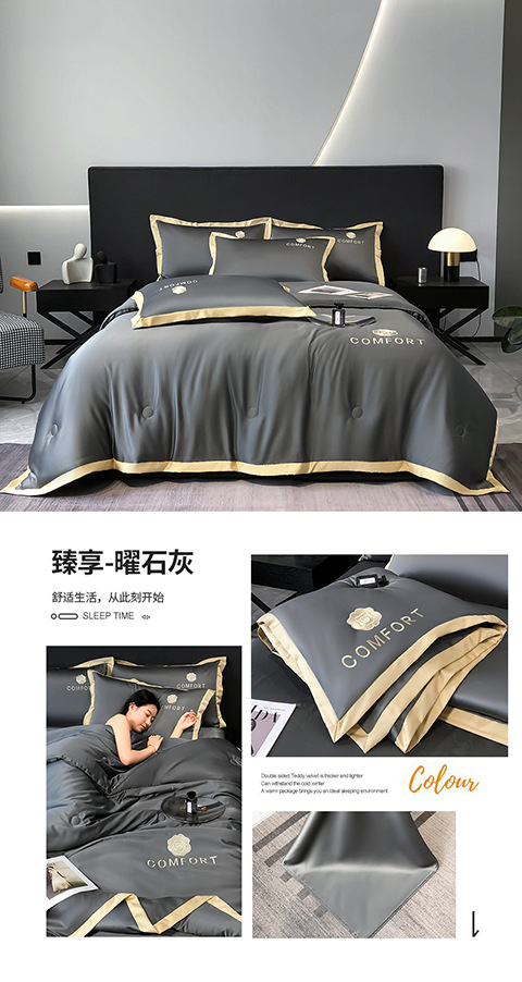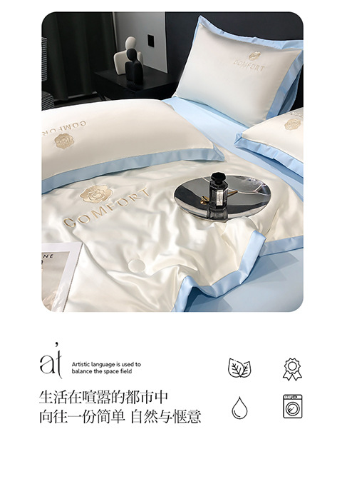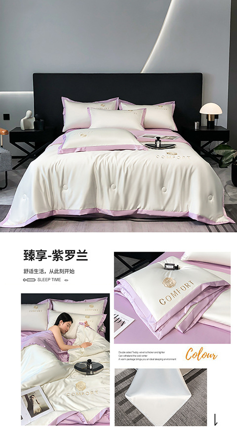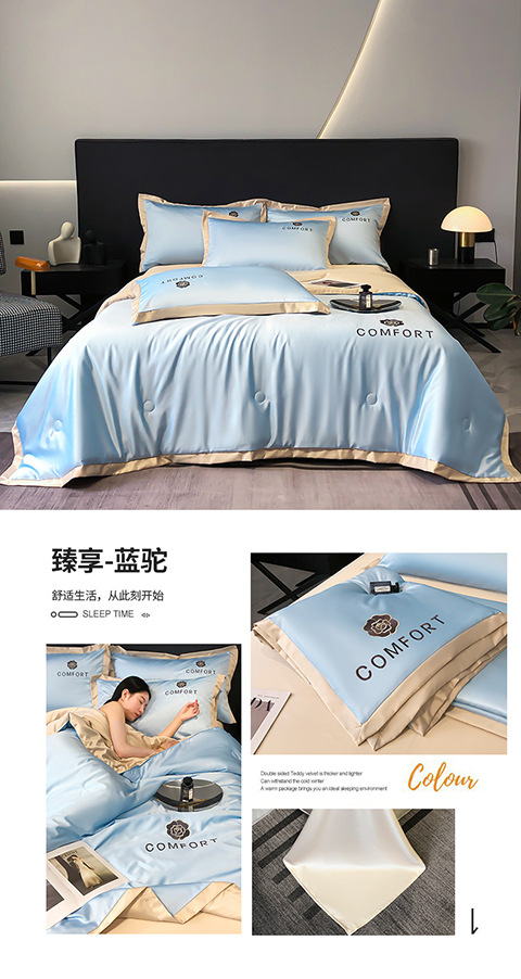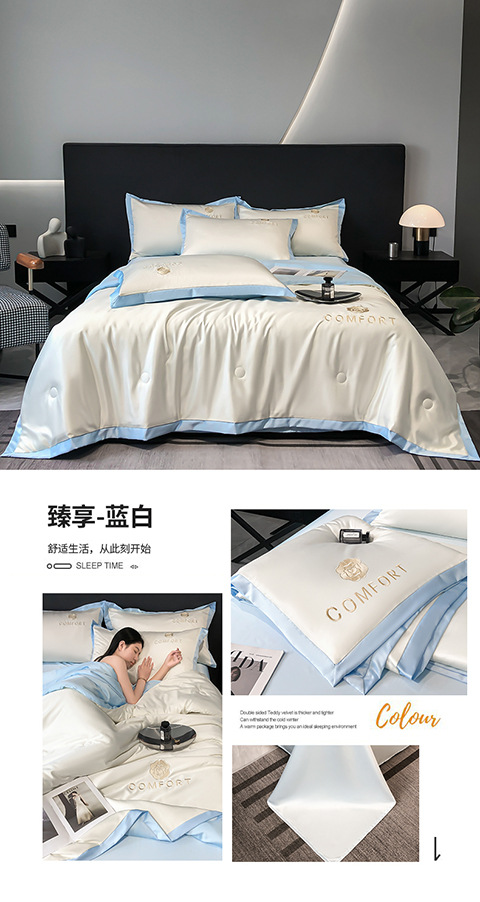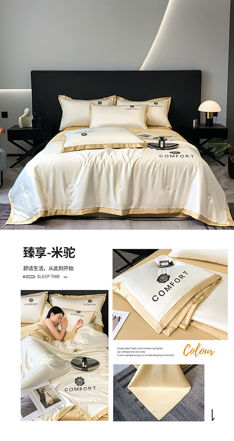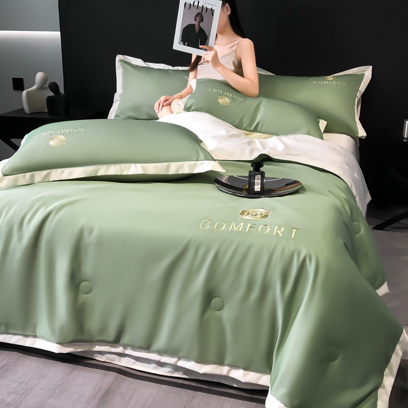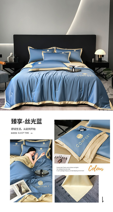 아이스 실크 여름 이불 에어컨 이불 여름 텐셀 여름 쿨 이불 4 종 세트 여름 기계 빨 빛 럭셔리 얇은 이불 도매