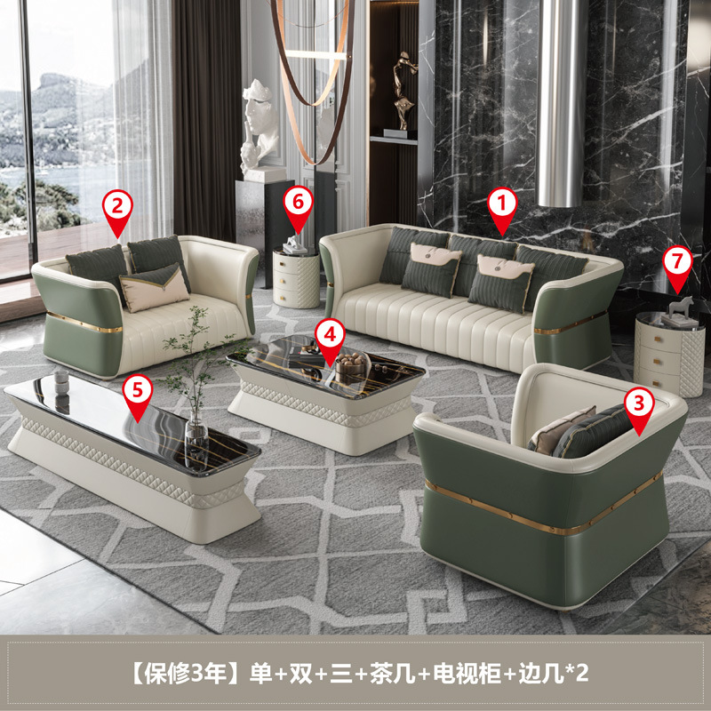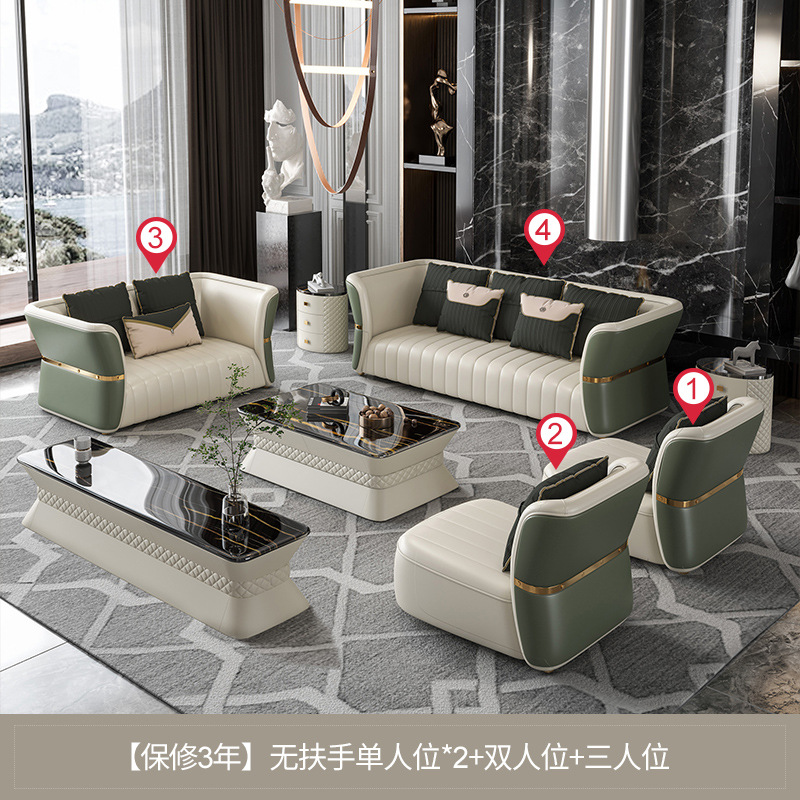 현대적인 가벼운 고급 가죽 소파 피아노 키 이탈리아 미니멀리스트 1층 소가죽 하이엔드 빌라 대형 거실 조합 세트