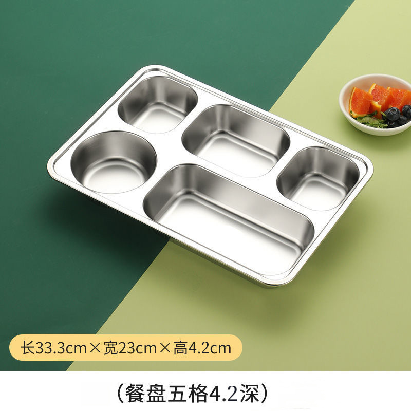 304 스테인레스 스틸 플레이트 맞춤형 학교 매점 패스트 푸드 도시락 깊은 뚜껑 두꺼운 파티션 플레이트 사용자 정의스토어 가기